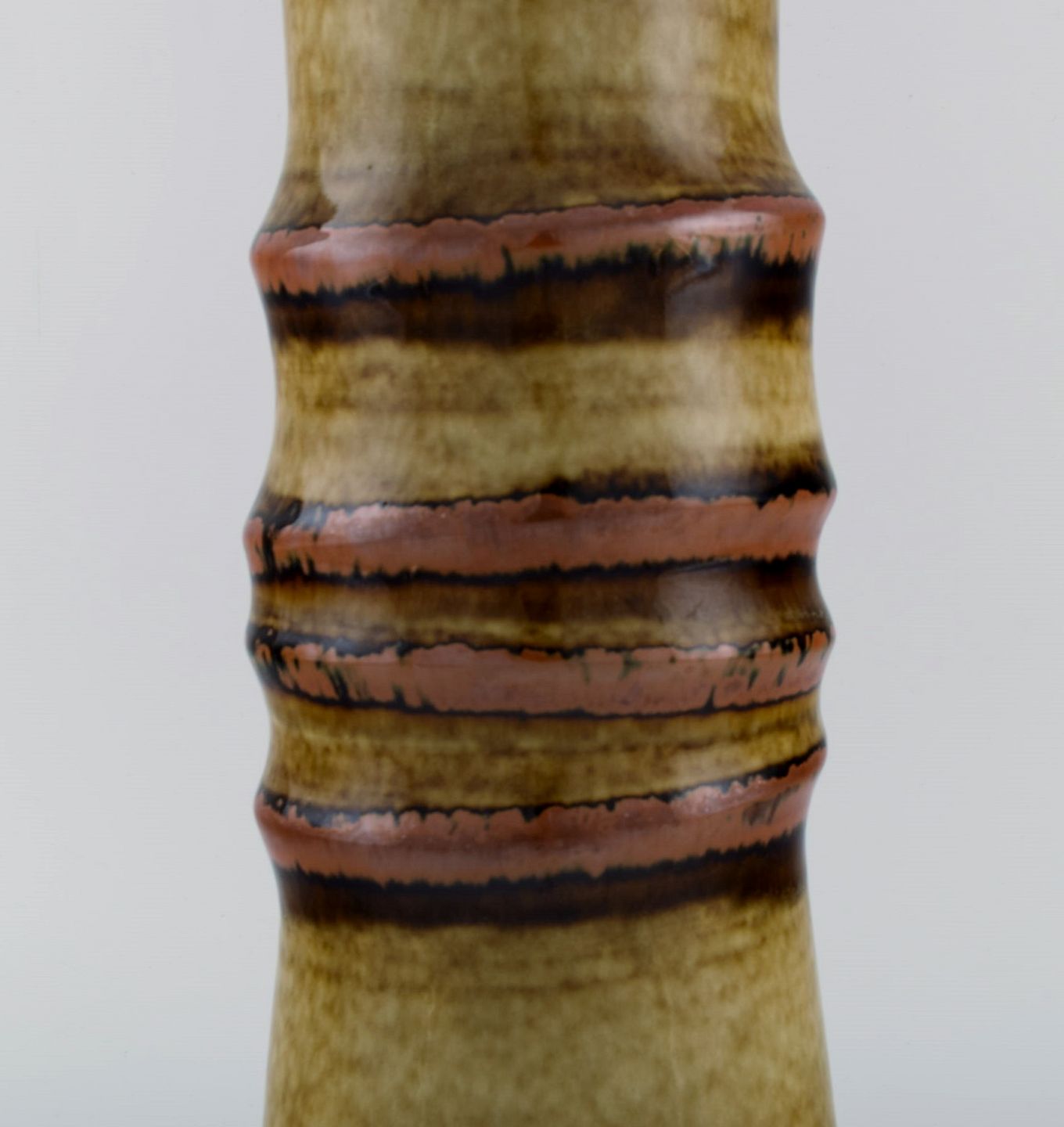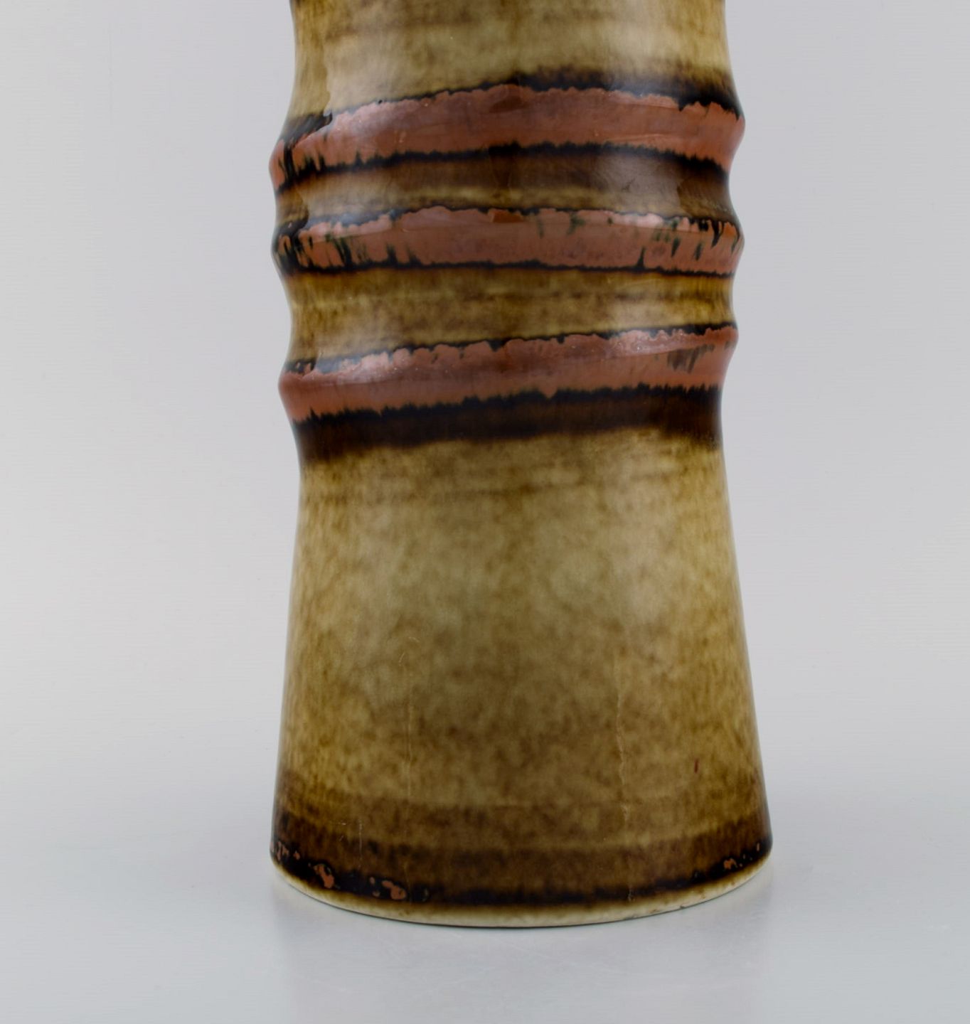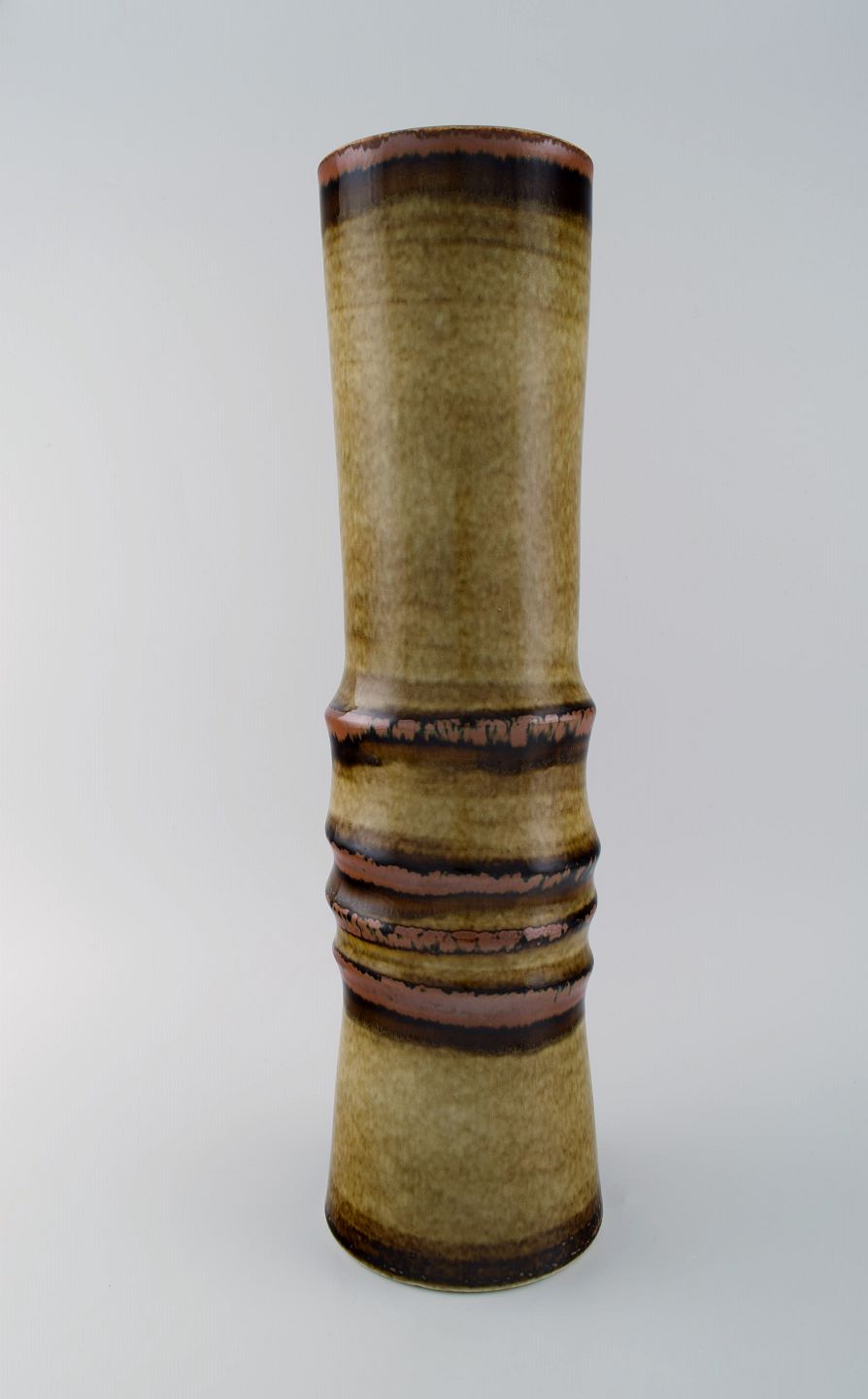 Olle Alberius for Rörstrand. Gulvvase i glaseret keramik. Smuk glasur i brune og lyse jordnuancer. 1960'erne. Måler: 49 x 14 cm. I flot stand. Signeret. 1. sortering.