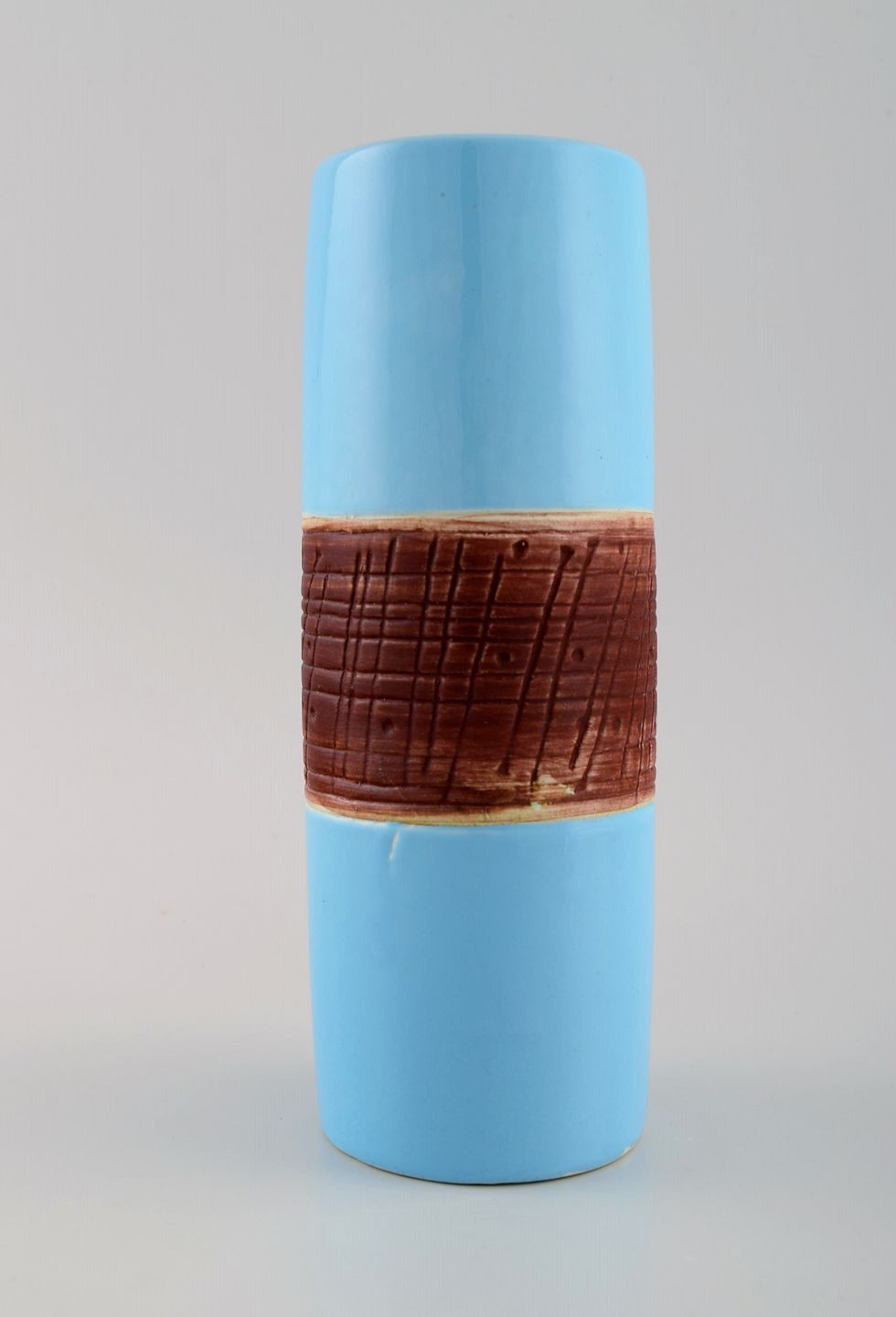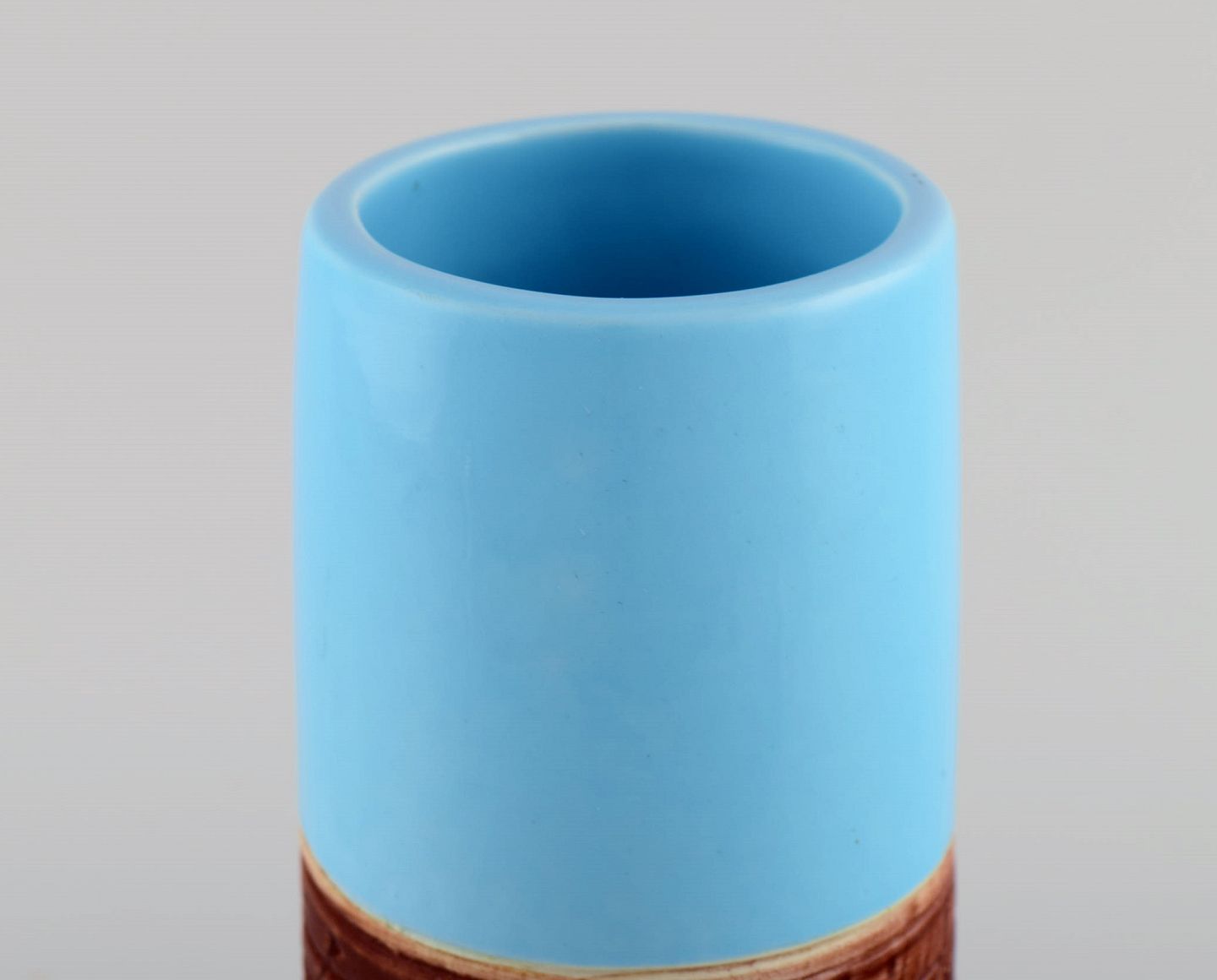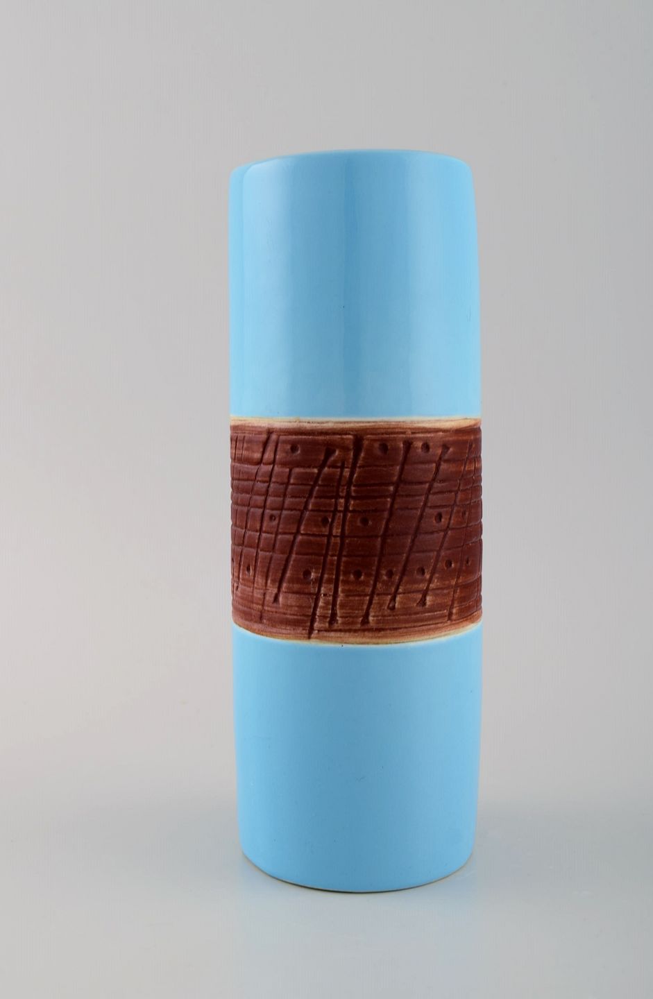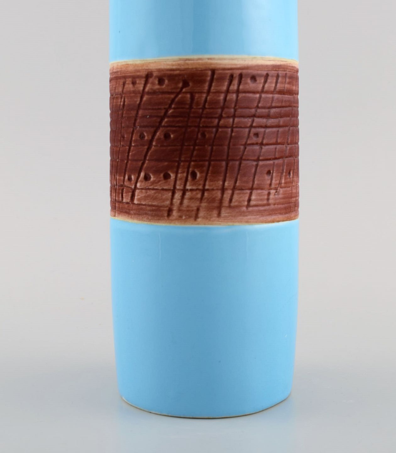 Lisa Larson for Gustavsberg. Tarragona vase in glazed ceramics. Beautiful light blue glaze. 1960s. Measures: 22.5 x 8.5 cm. In excellent condition. Stamped.