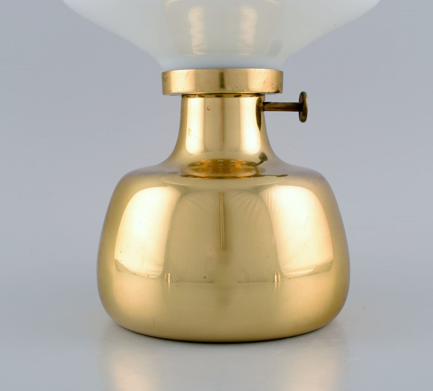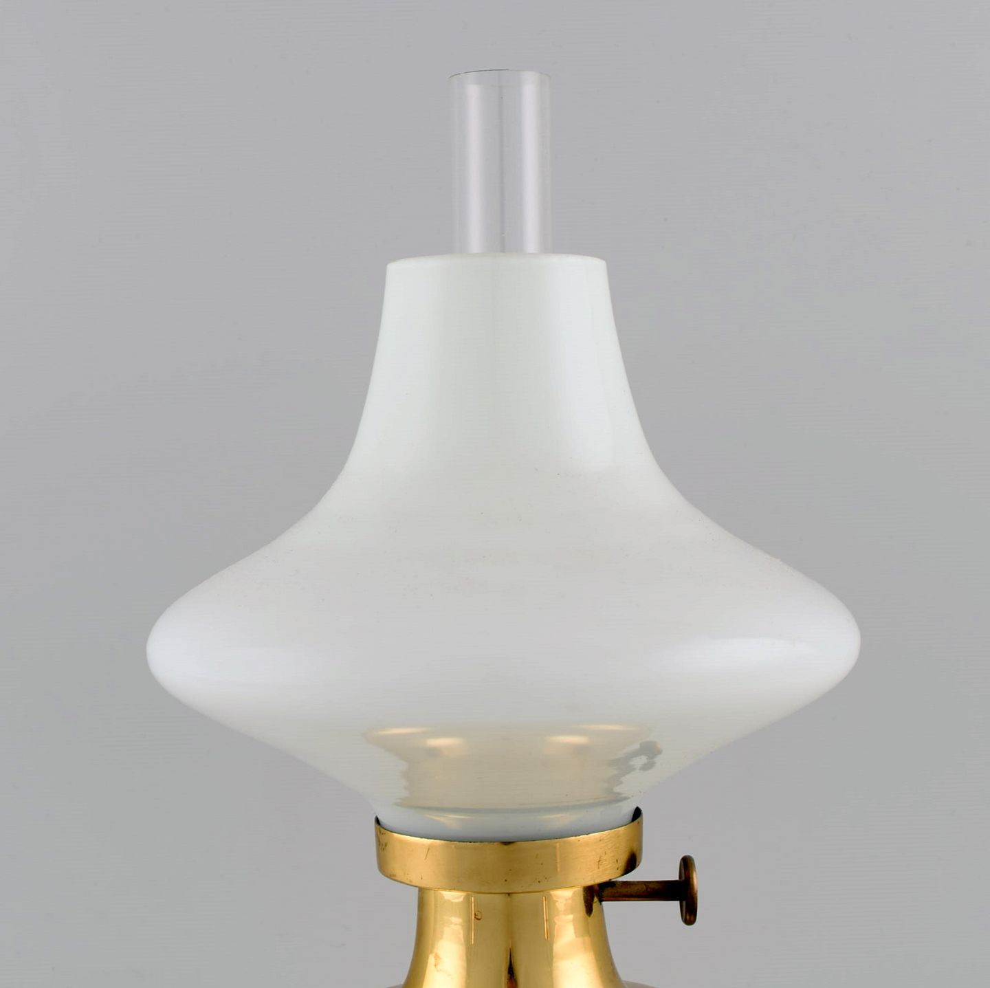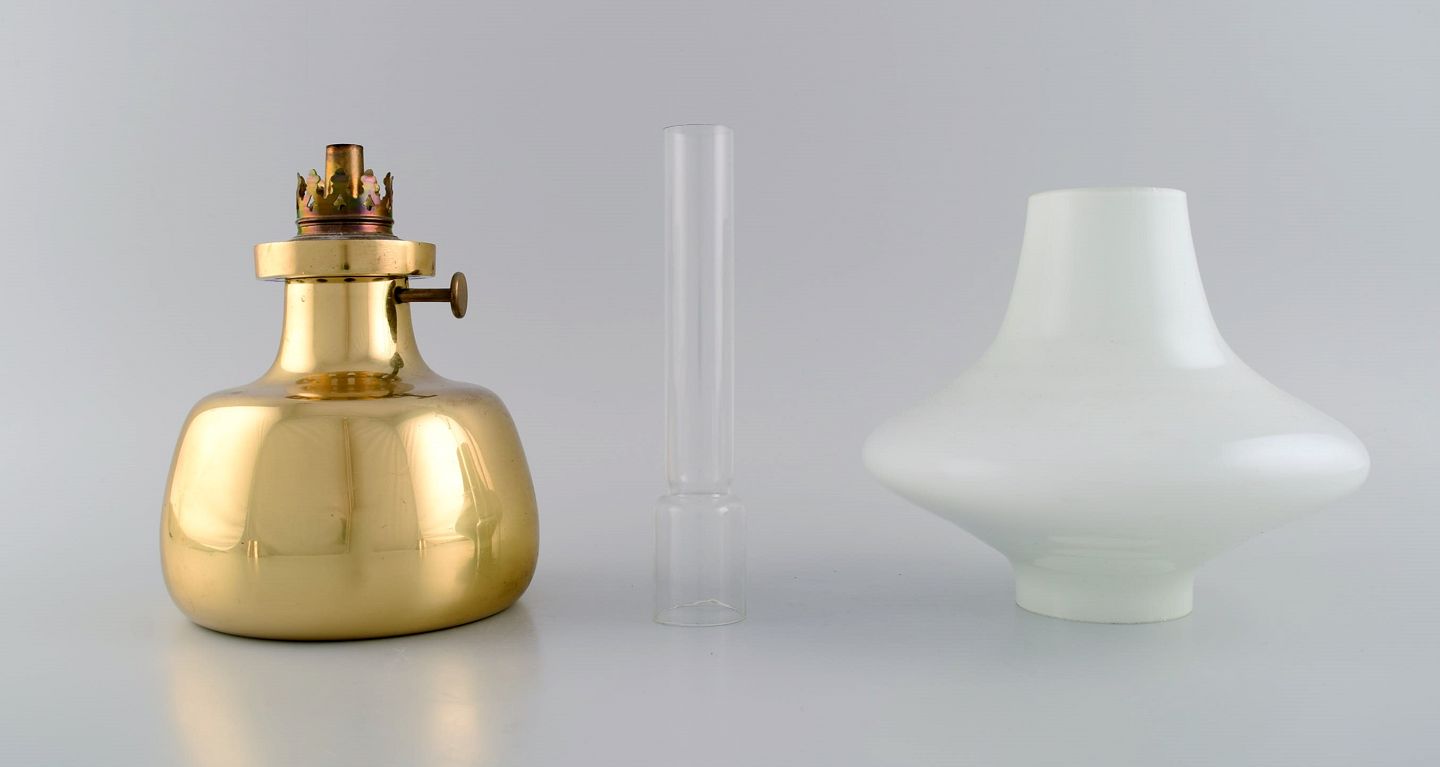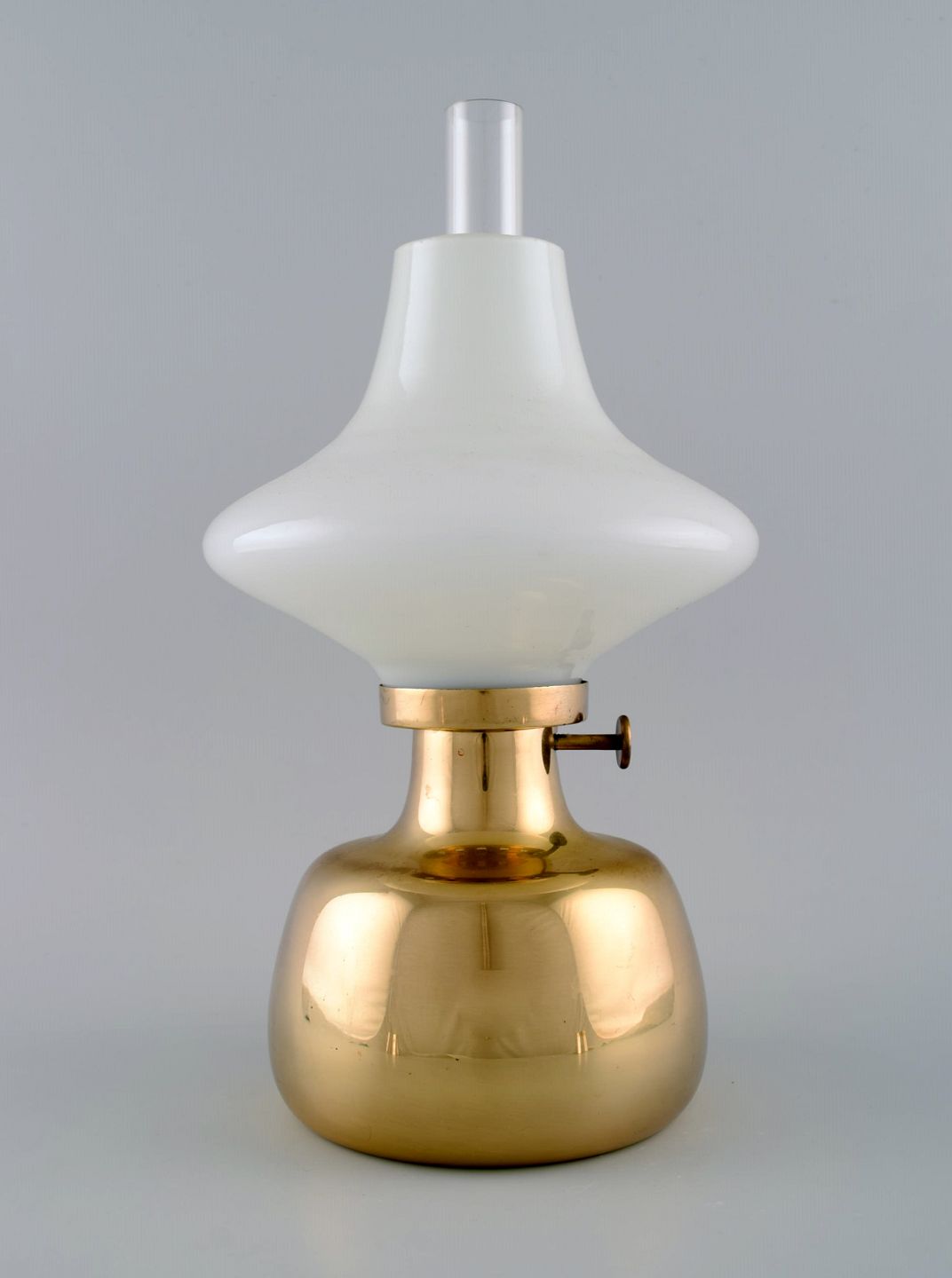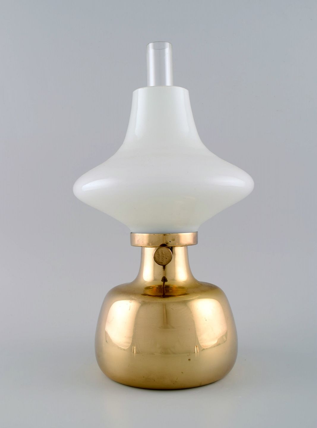 Henning Koppel (1918-81) for Louis Poulsen. "Petronella" olielampe i messing med skærm af opalglas. I flot stand. Måler: 33 x 18,5 cm.