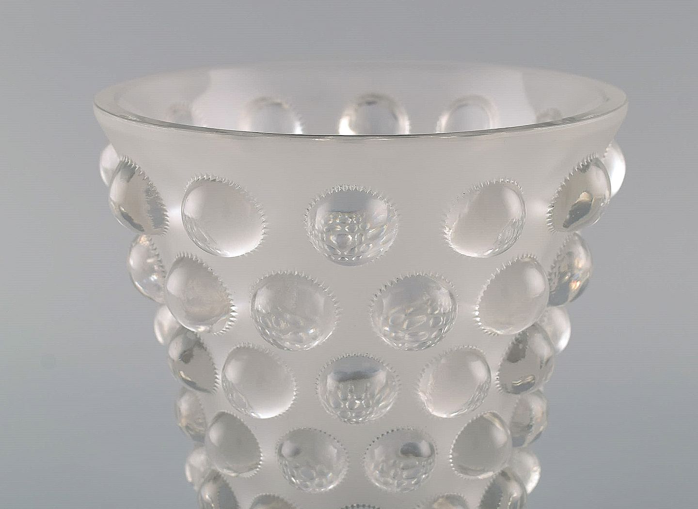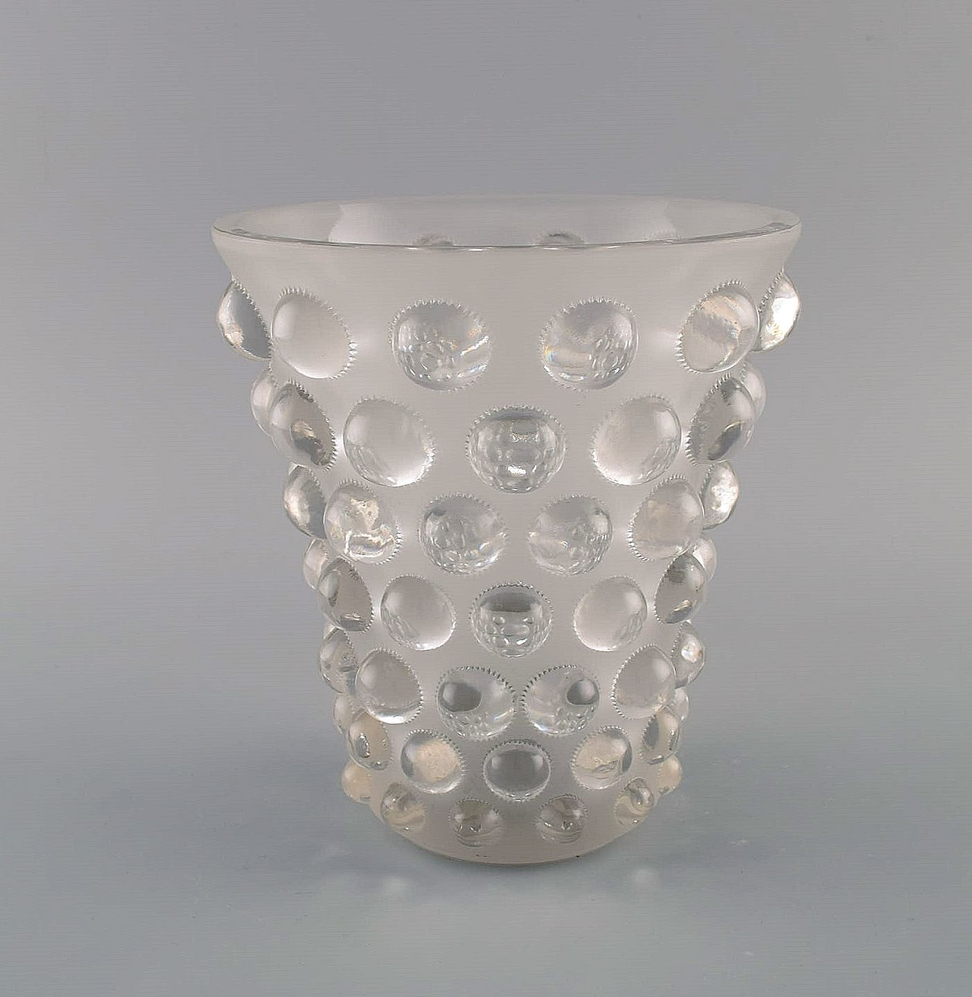 Early and rare René Lalique Bamako vase in clear mouth blown art glass. 1930s. Measures: 18.5 x 16.5 cm. In excellent condition. Stamped: R. Lalique, France.
