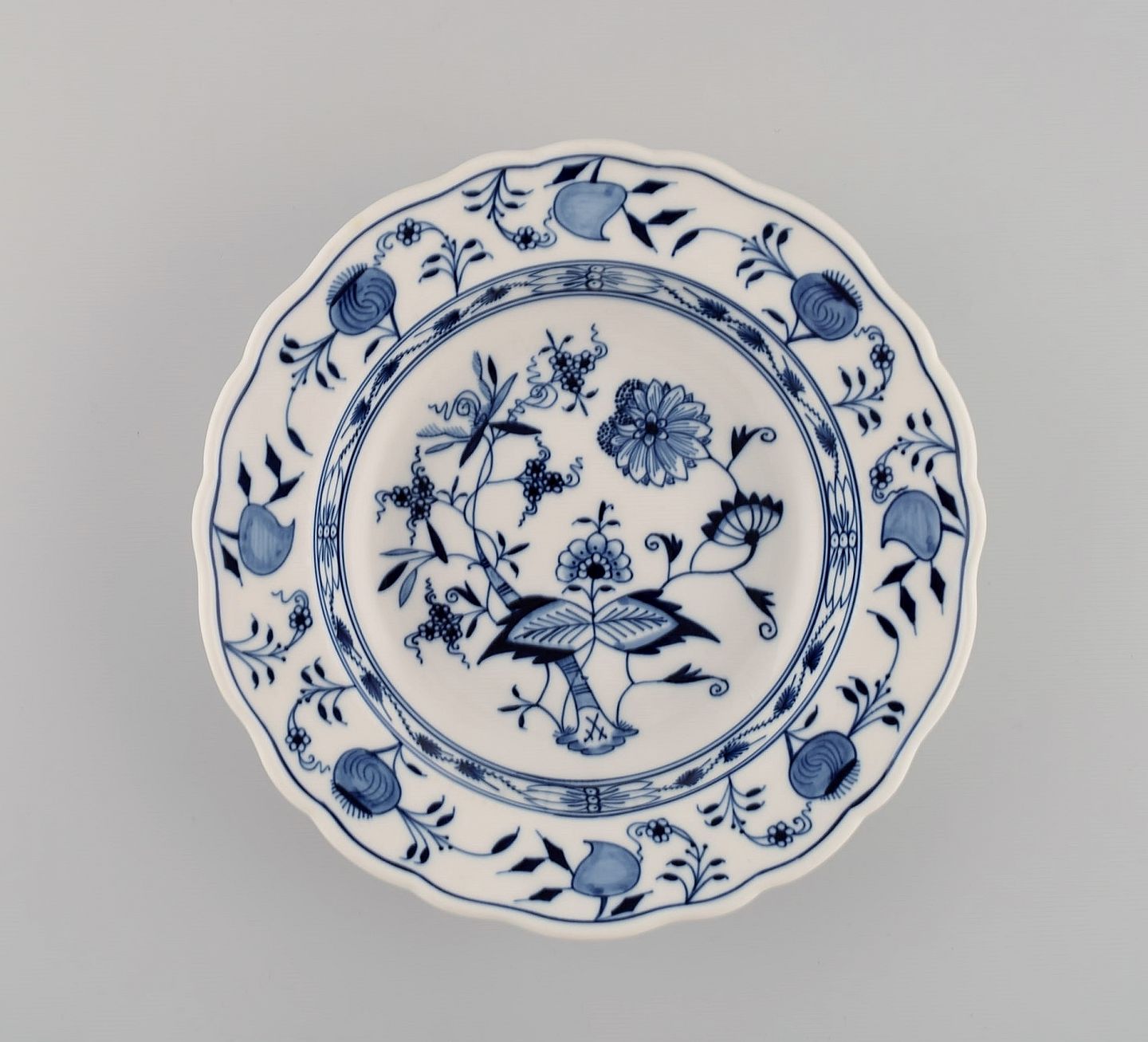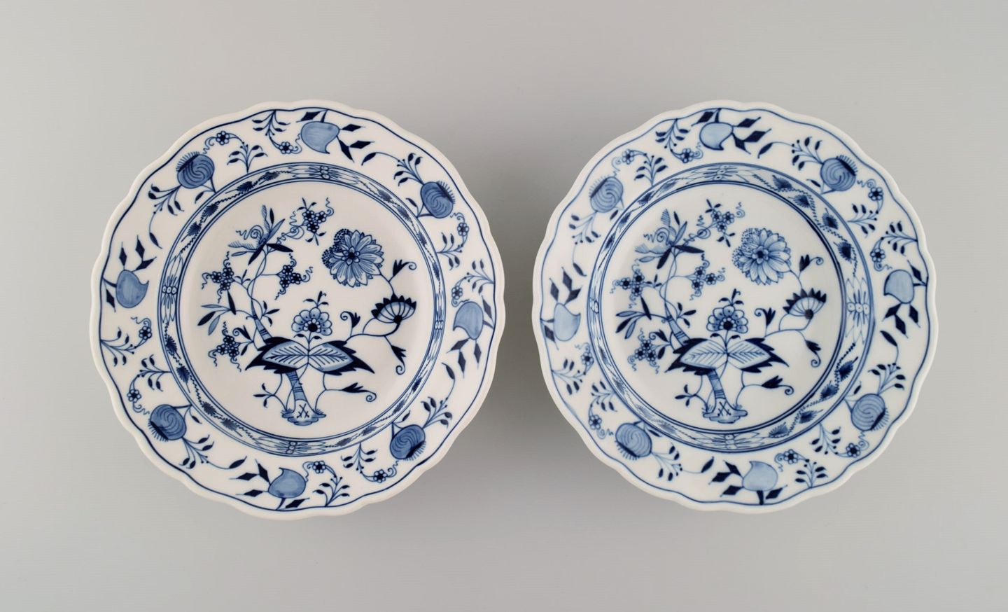 Two Meissen Blue Onion deep plates in hand-painted porcelain. Early 20th century. Measures: 23 x 5 cm. In excellent condition. Stamped. 2nd factory quality.