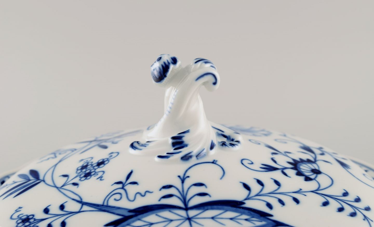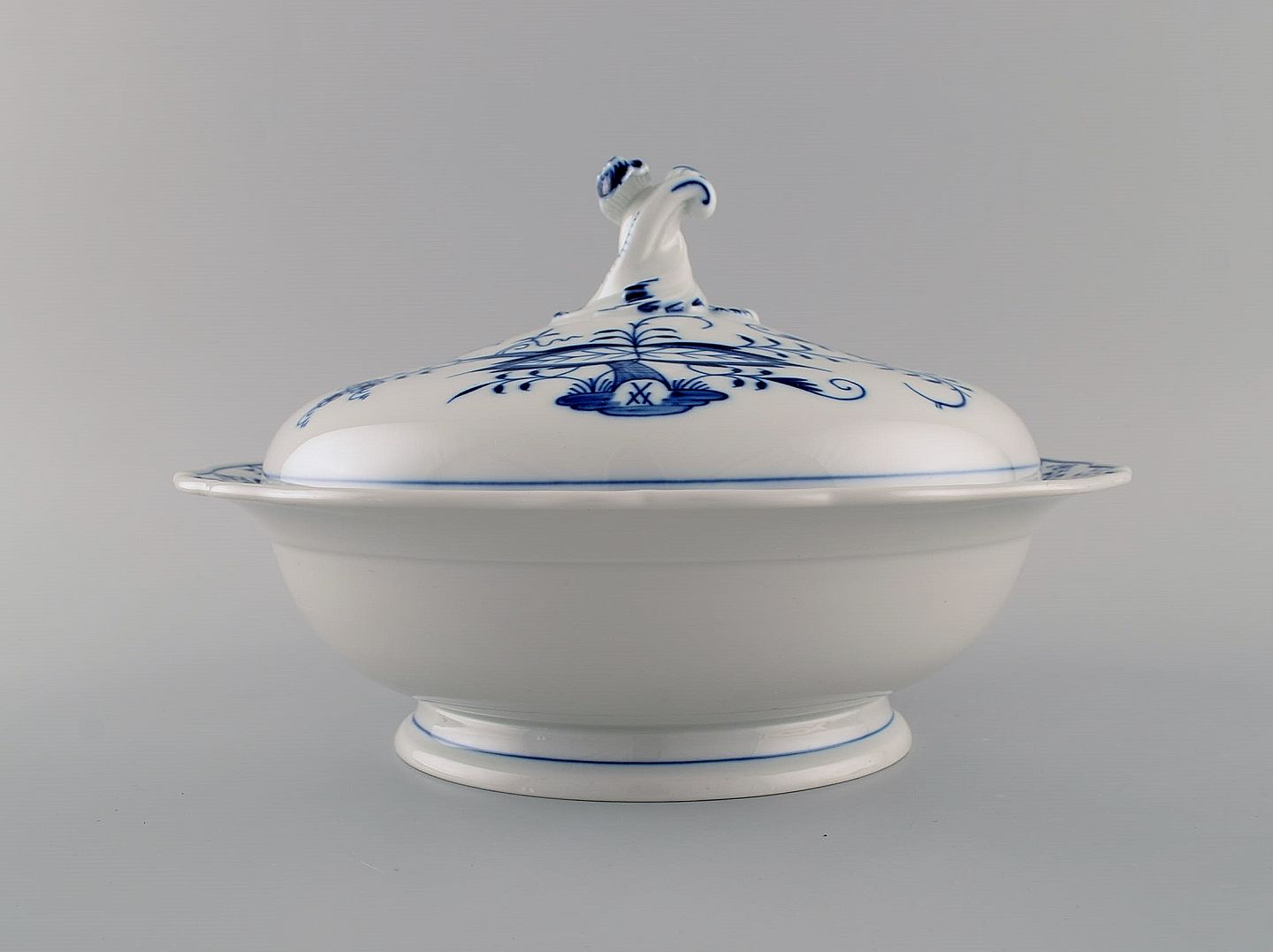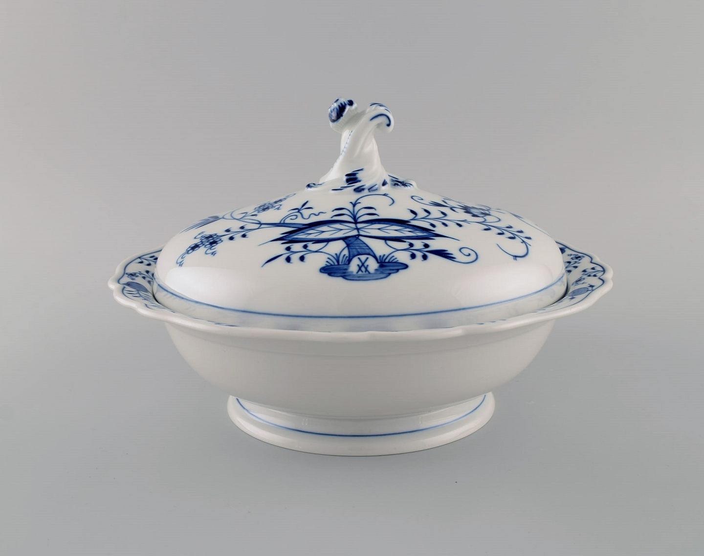 Meissen Blue Onion lidded tureen in hand-painted porcelain. Early 20th century. Measures: 27 x 17 cm. In excellent condition. Stamped. 1st factory quality.