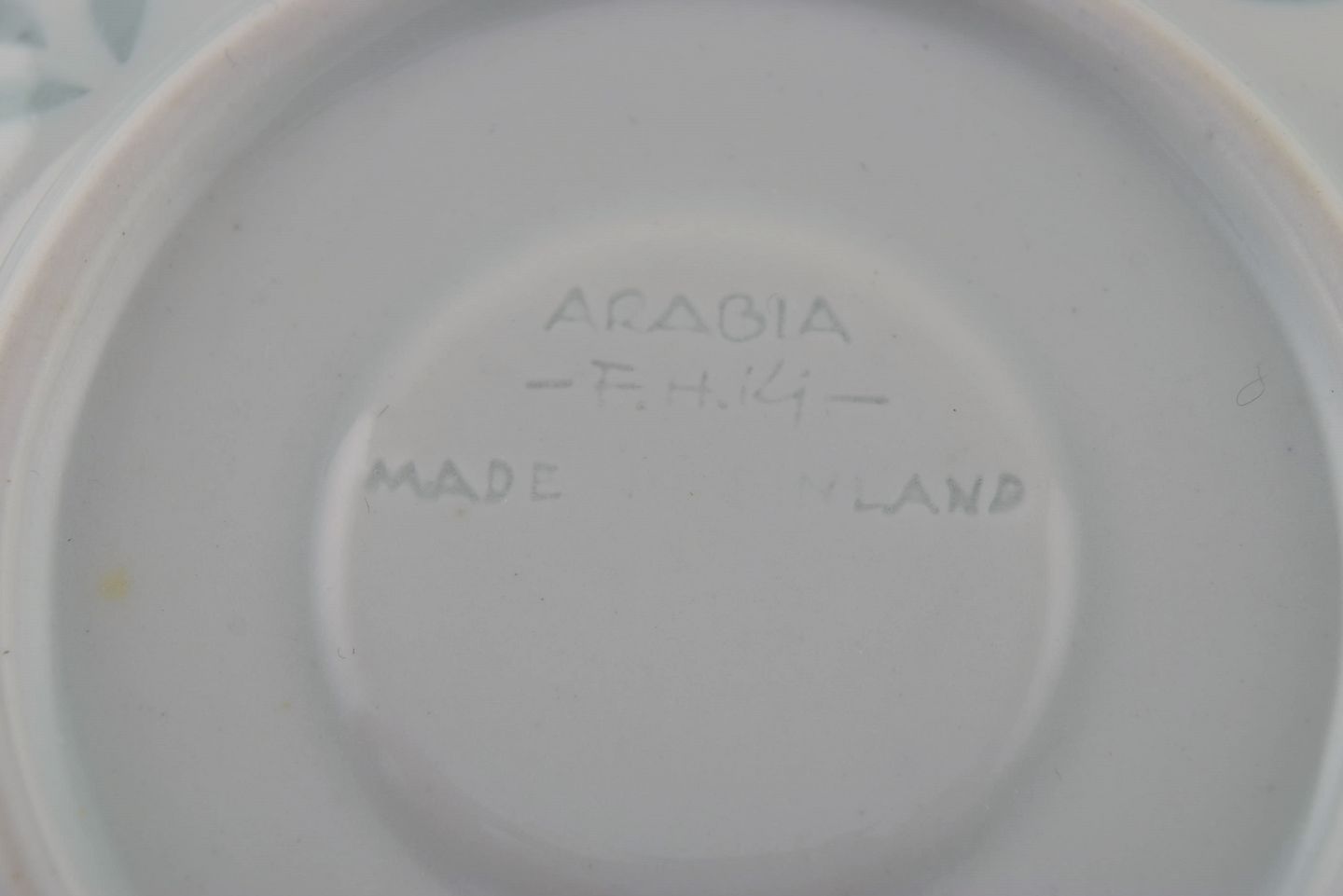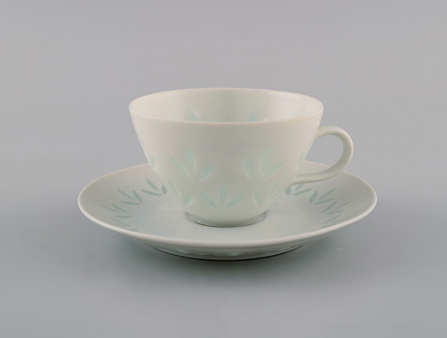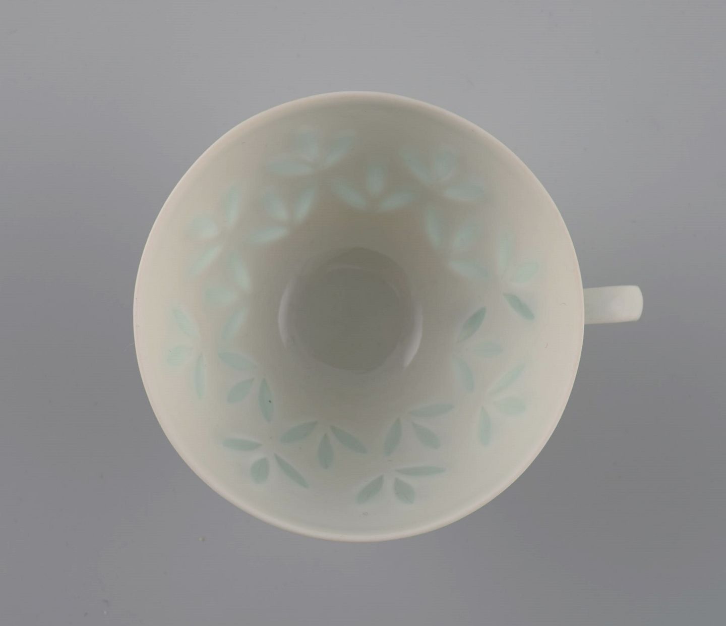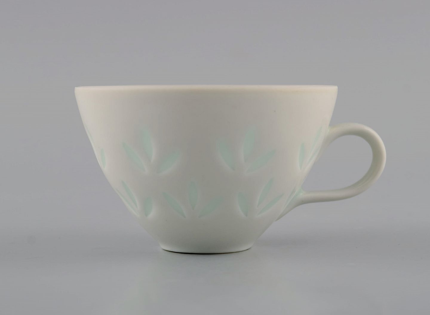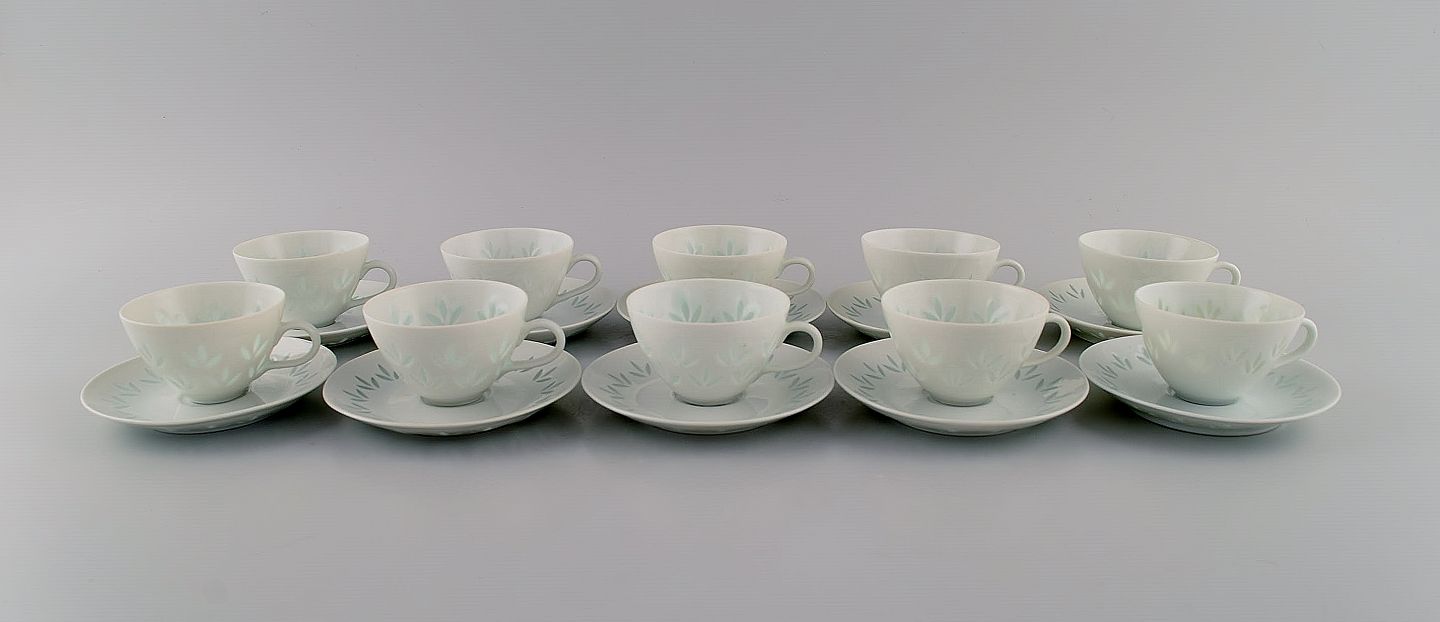 Friedl Holzer-Kjellberg (1905-1993) for Arabia. 10 kaffekopper med underkopper i risporcelæn. Midt 1900-tallet. Koppen måler: 7 x 4,7 cm. Underkop diameter: 11,3 cm. Stemplet. I flot stand.