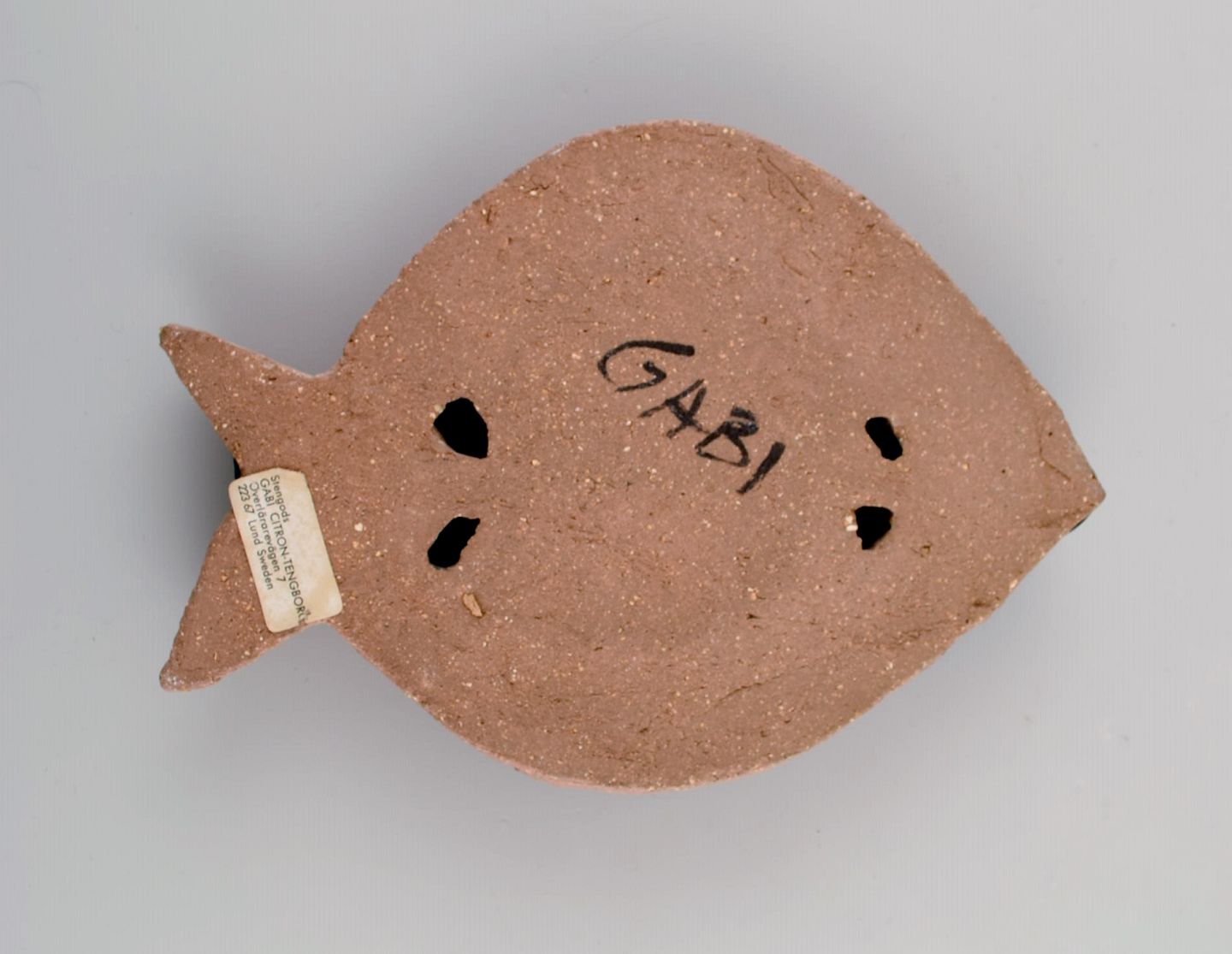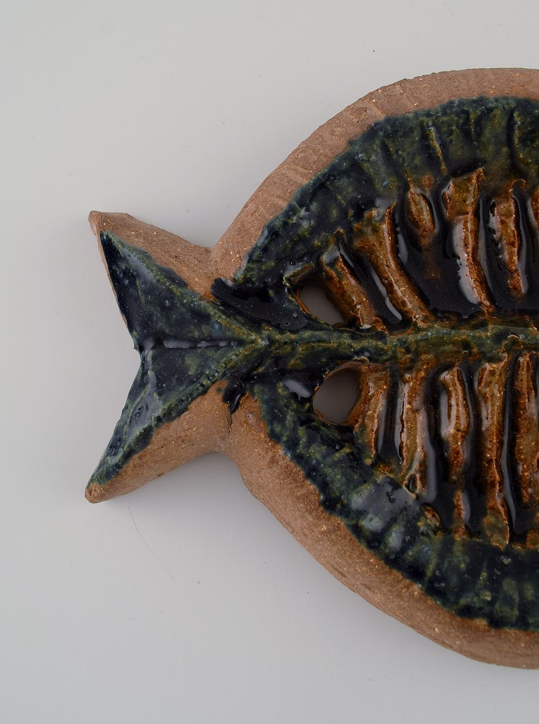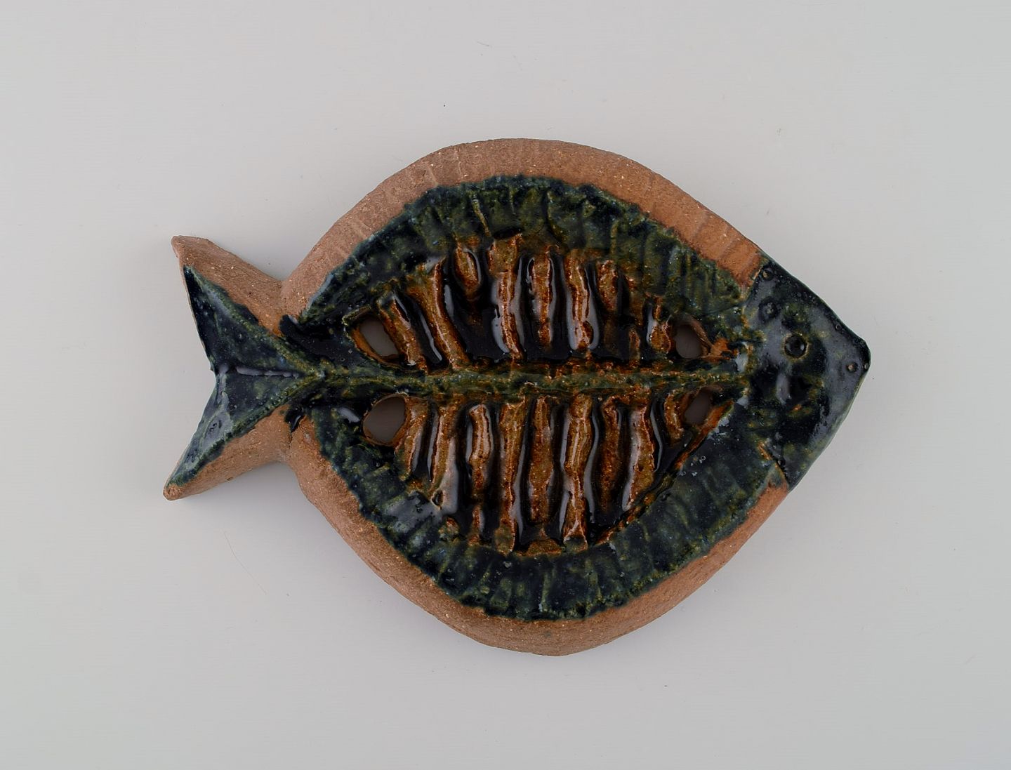 Gabi Citron-Tengborg. Own workshop, Lund. Unique wall plaque in glazed stoneware shaped like a fish. 1960s. Measures: 20 x 14 cm. In excellent condition. Signed.