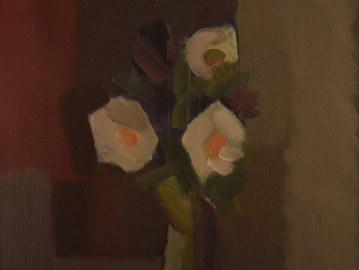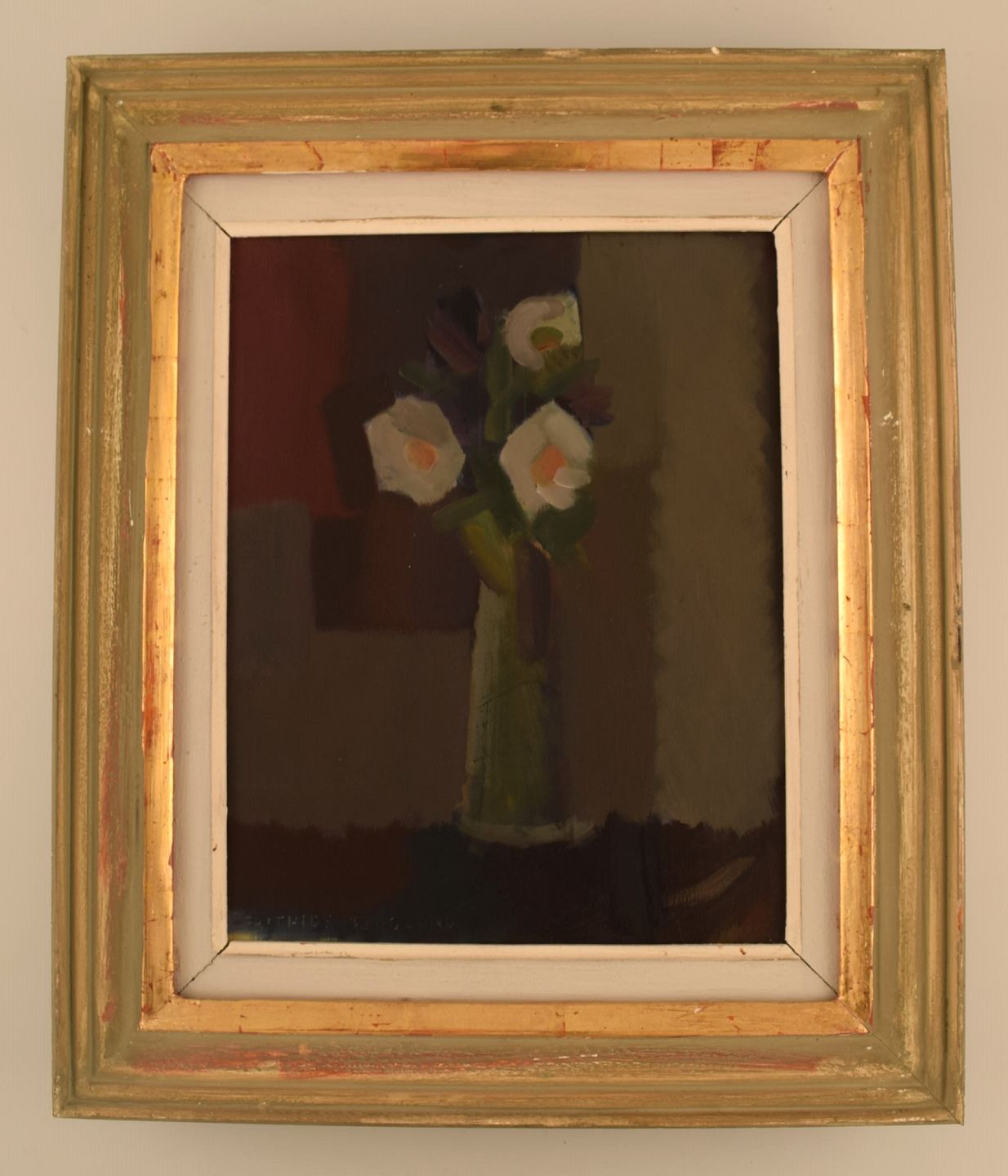 Frithiof Berglund (1905-1973), Swedish artist. Oil on canvas. Modernist still life with flowers. Mid-20th century. The canvas measures: 33 x 26 cm. The frame measures: 7.5 cm. In excellent condition. Signed.