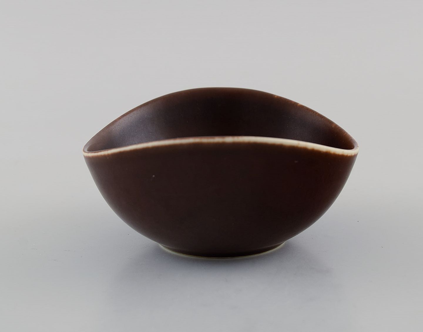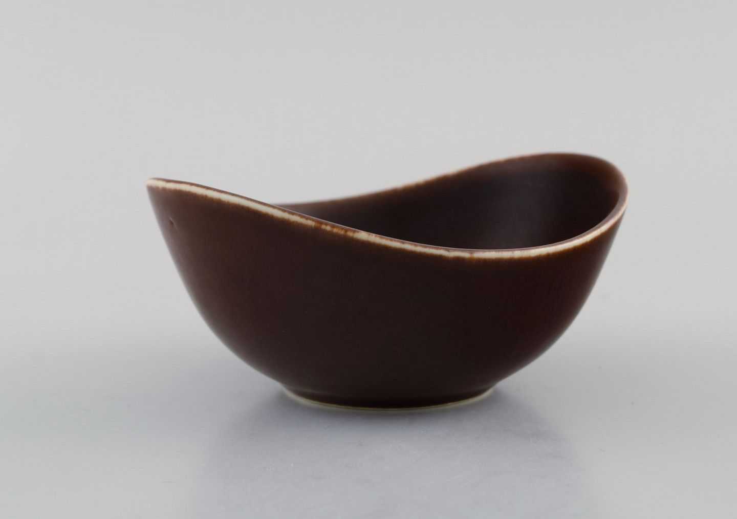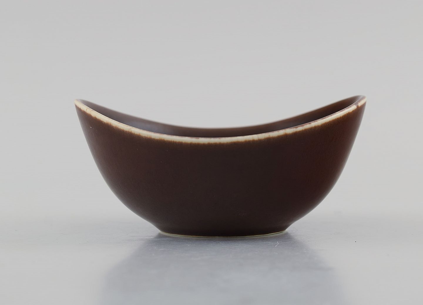 Gunnar Nylund (1904-1997) for Rörstrand. Bowl in glazed ceramics. Beautiful glaze in brown shades. Mid-20th century.