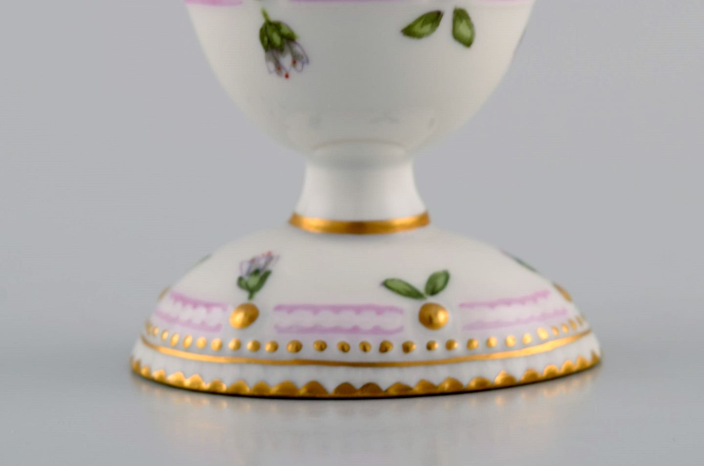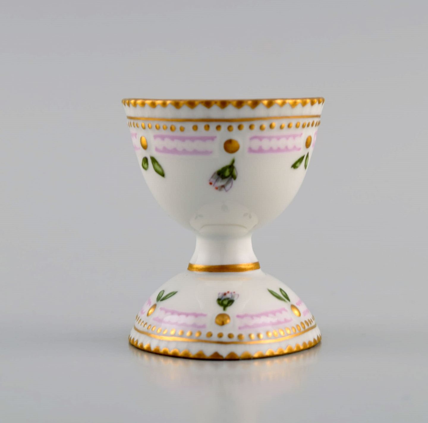 Royal Copenhagen Flora Danica æggebæger i håndmalet porcelæn med blomster og gulddekoration. Modelnummer 20/3530. Måler: 5,8 x 5,8 cm. I perfekt stand. 1. Sortering. Stemplet.