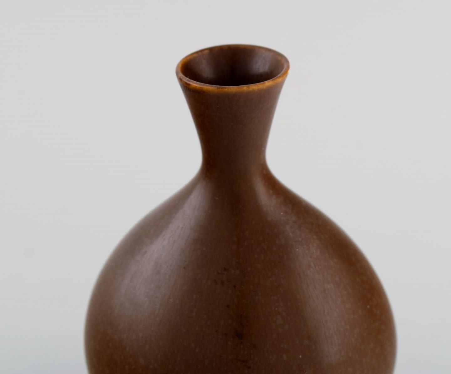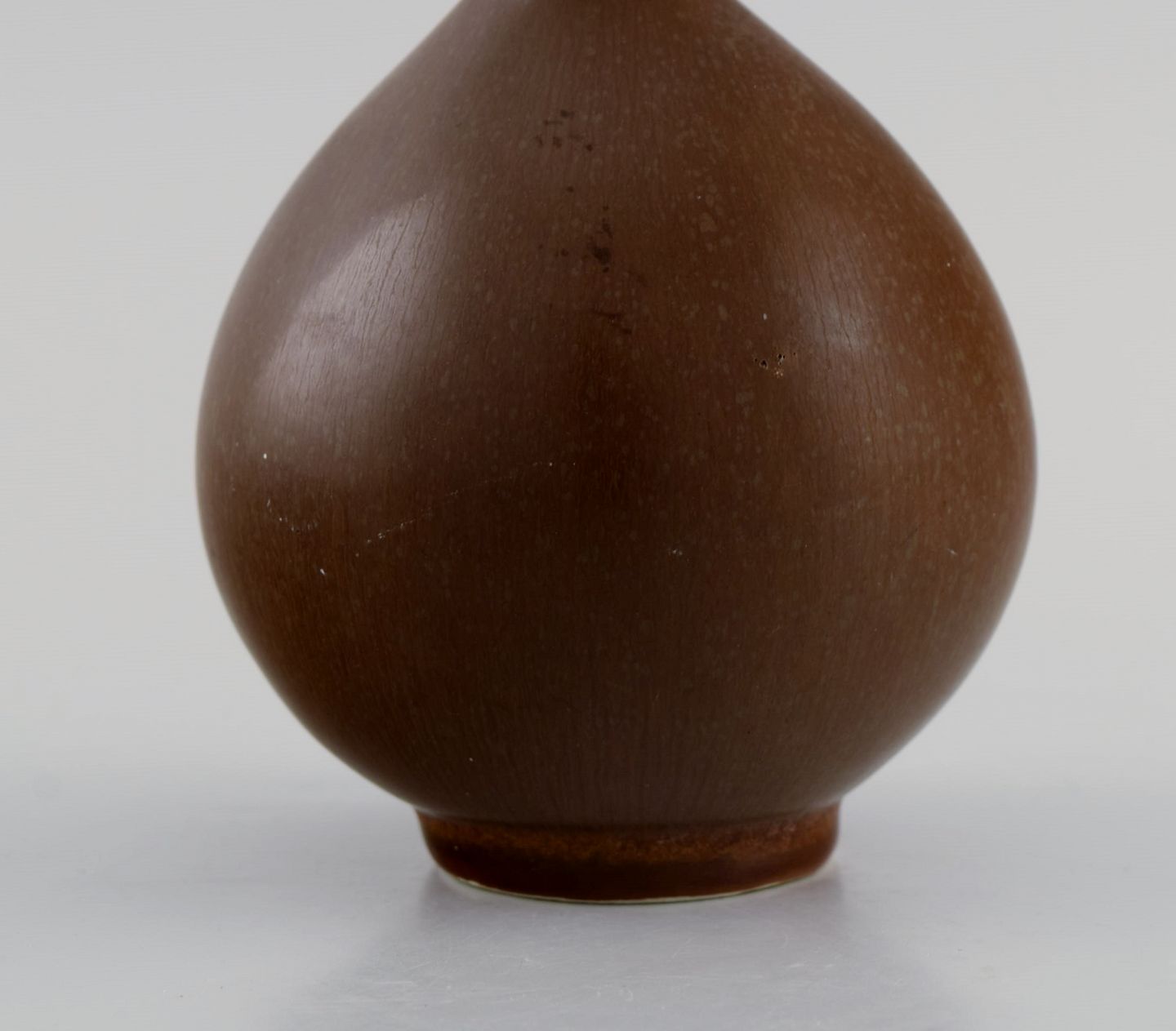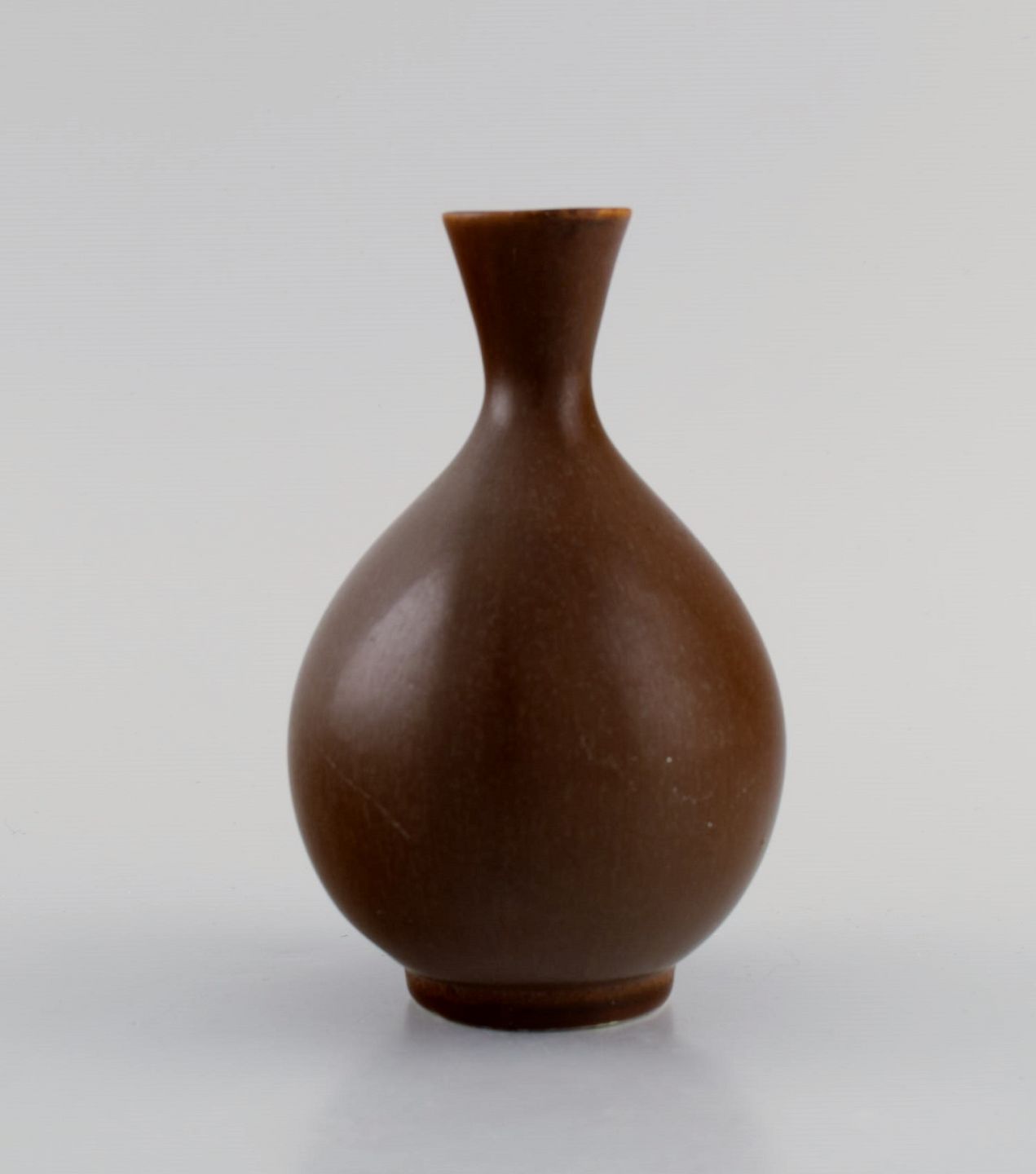 Berndt Friberg (1899-1981) for Gustavsberg Studiohand. Vase i glaseret keramik. Smuk glasur i brune nuancer. 1960'erne. Måler: 13 x 9 cm. I flot stand. Mærkat.