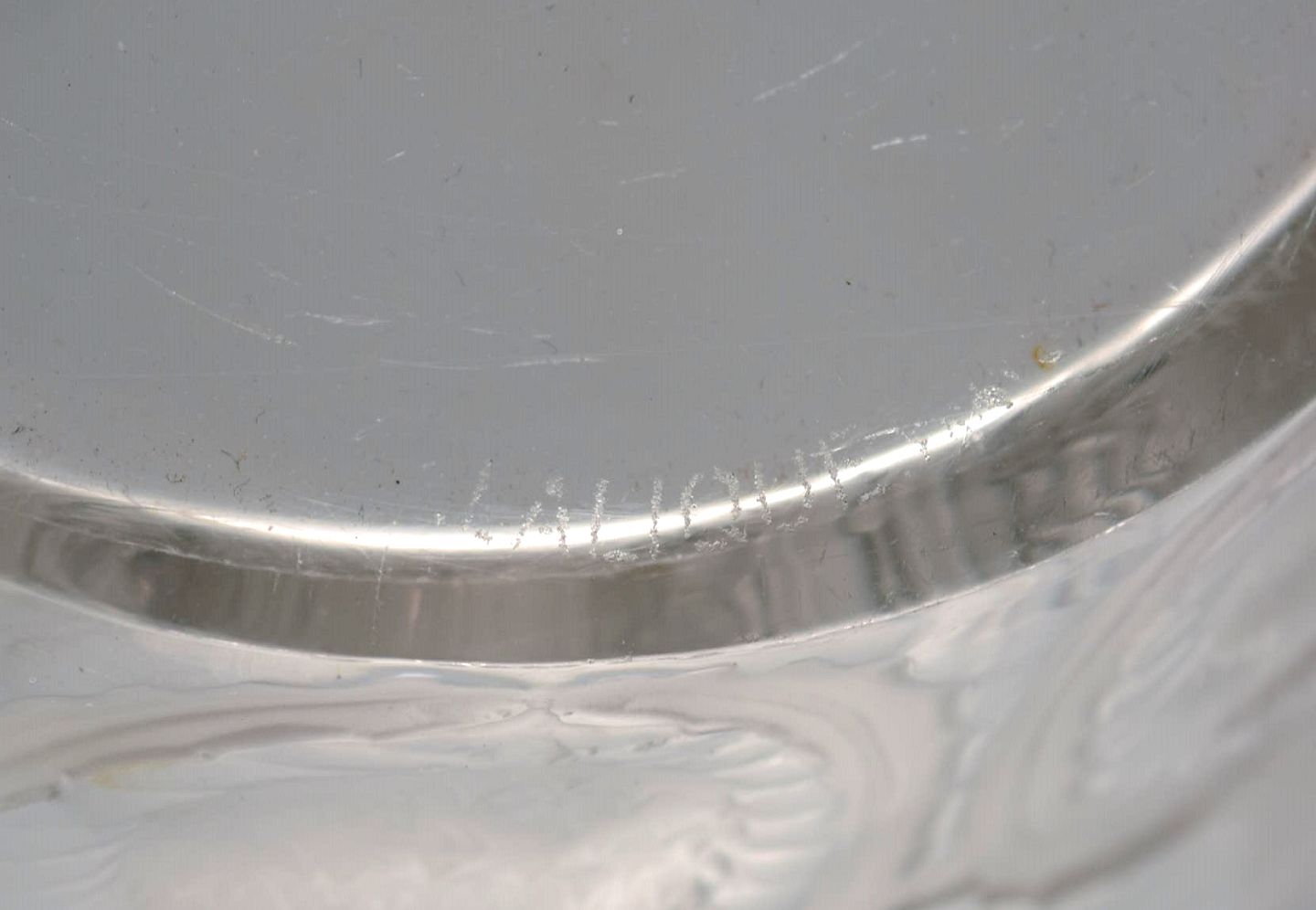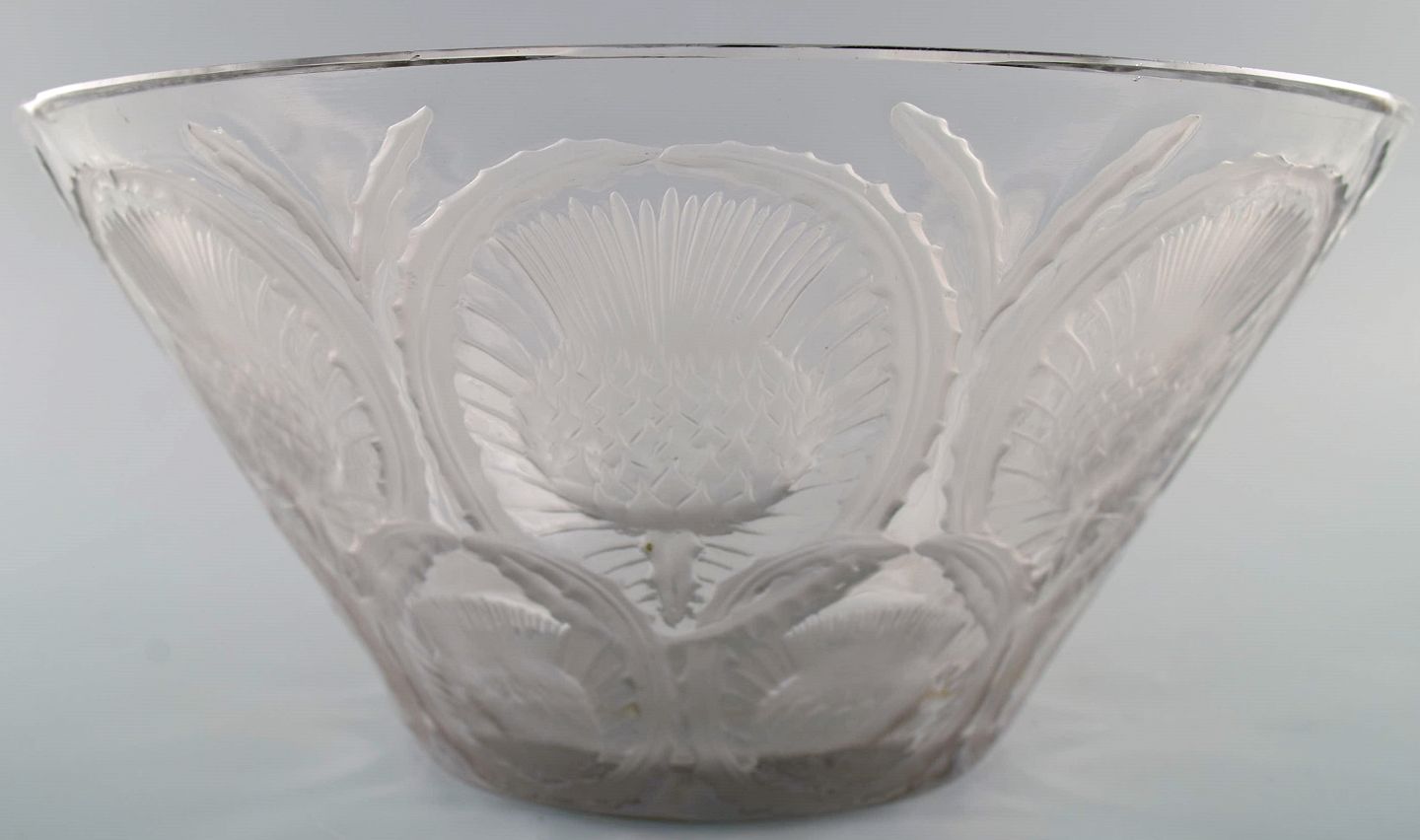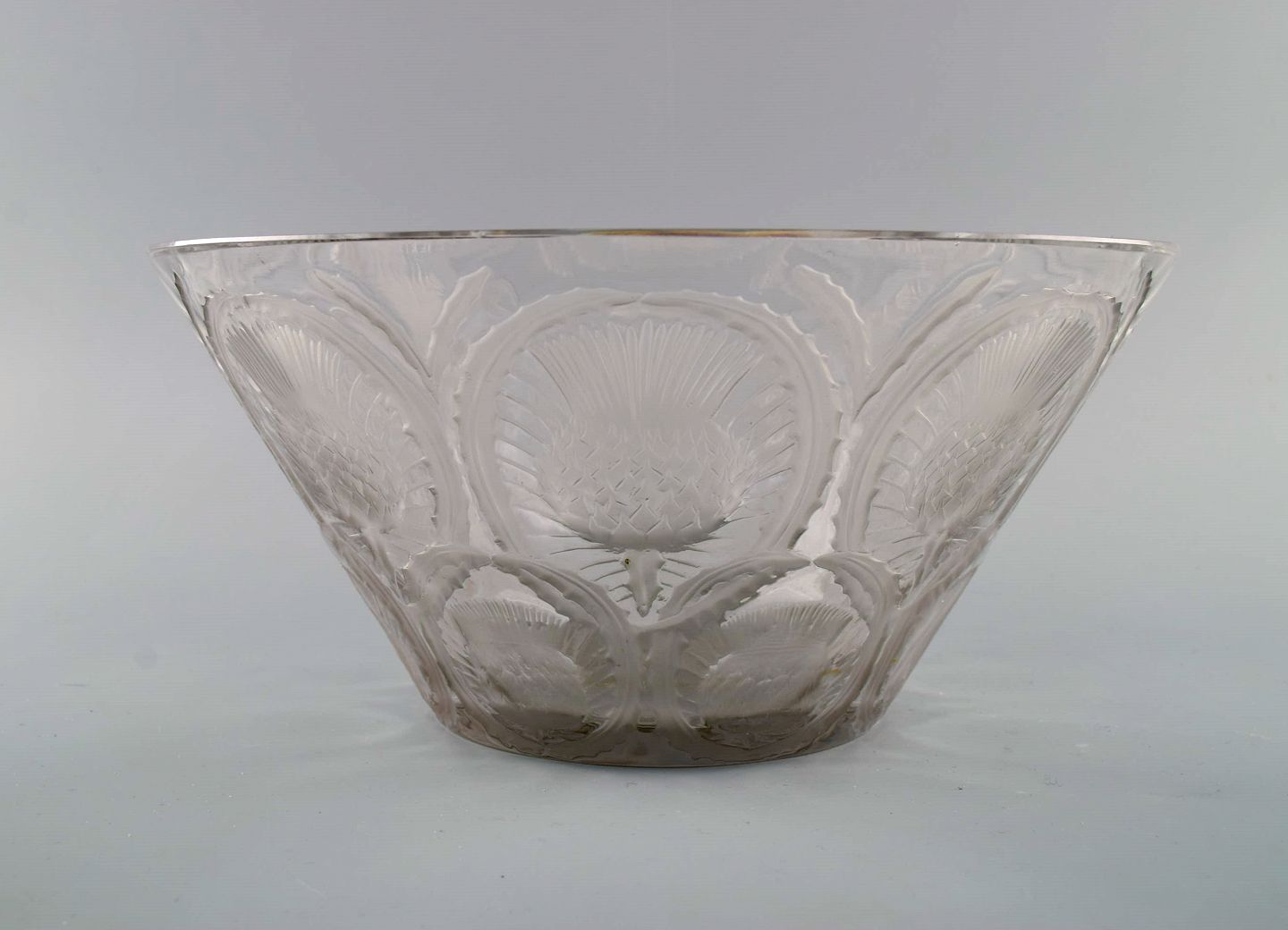 René Lalique art deco bowl in clear mouth blown art glass with incised flowers. Mid-20th century. Measures: 25.5 x 12 cm. In excellent condition. Stamped.