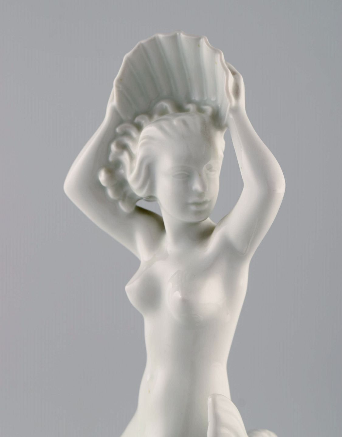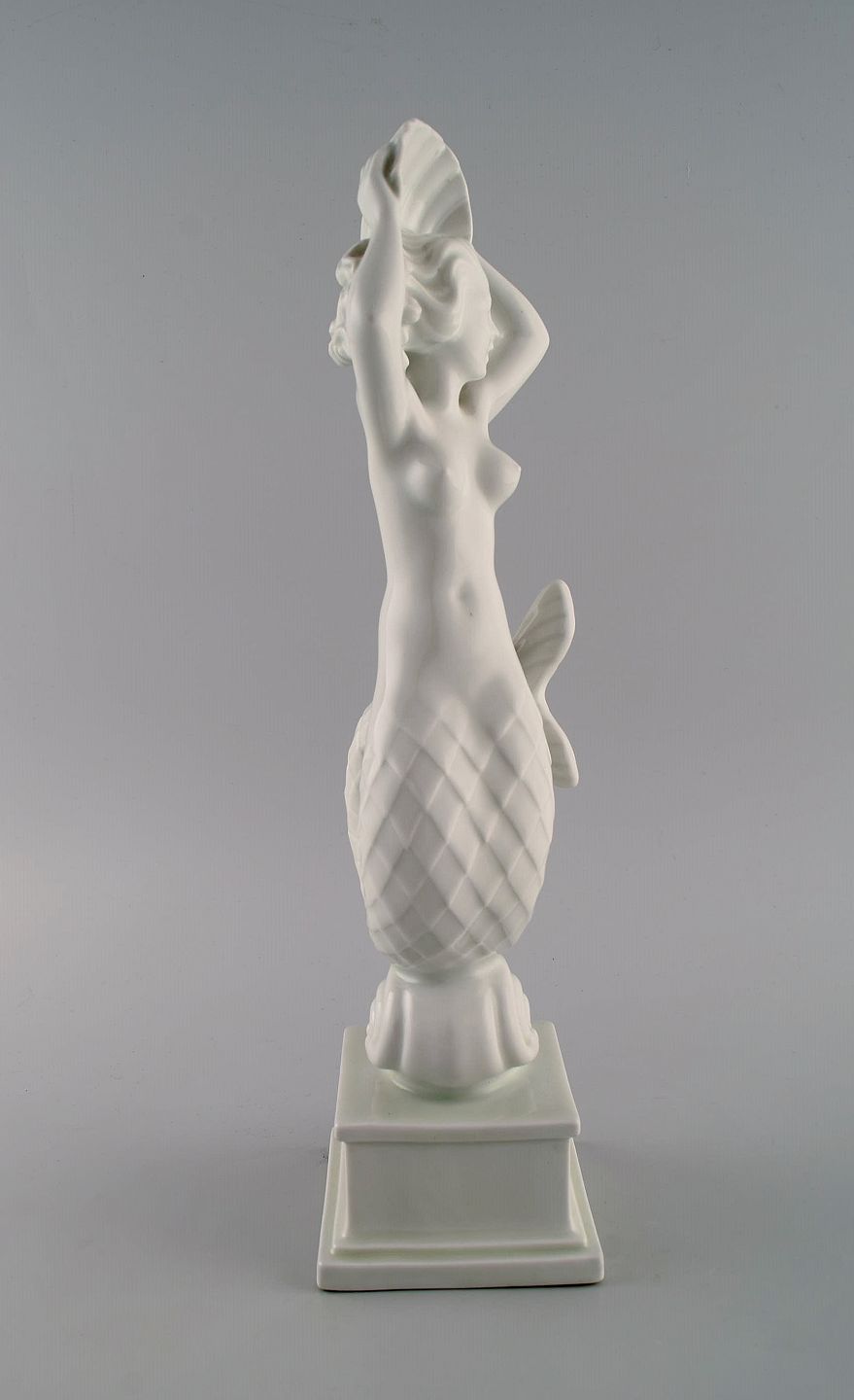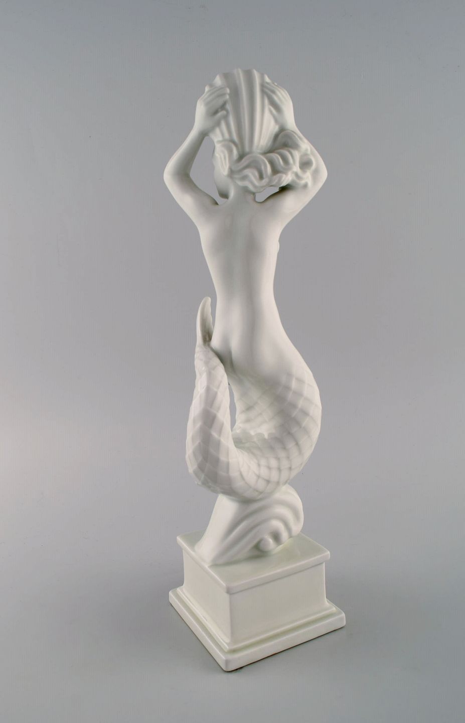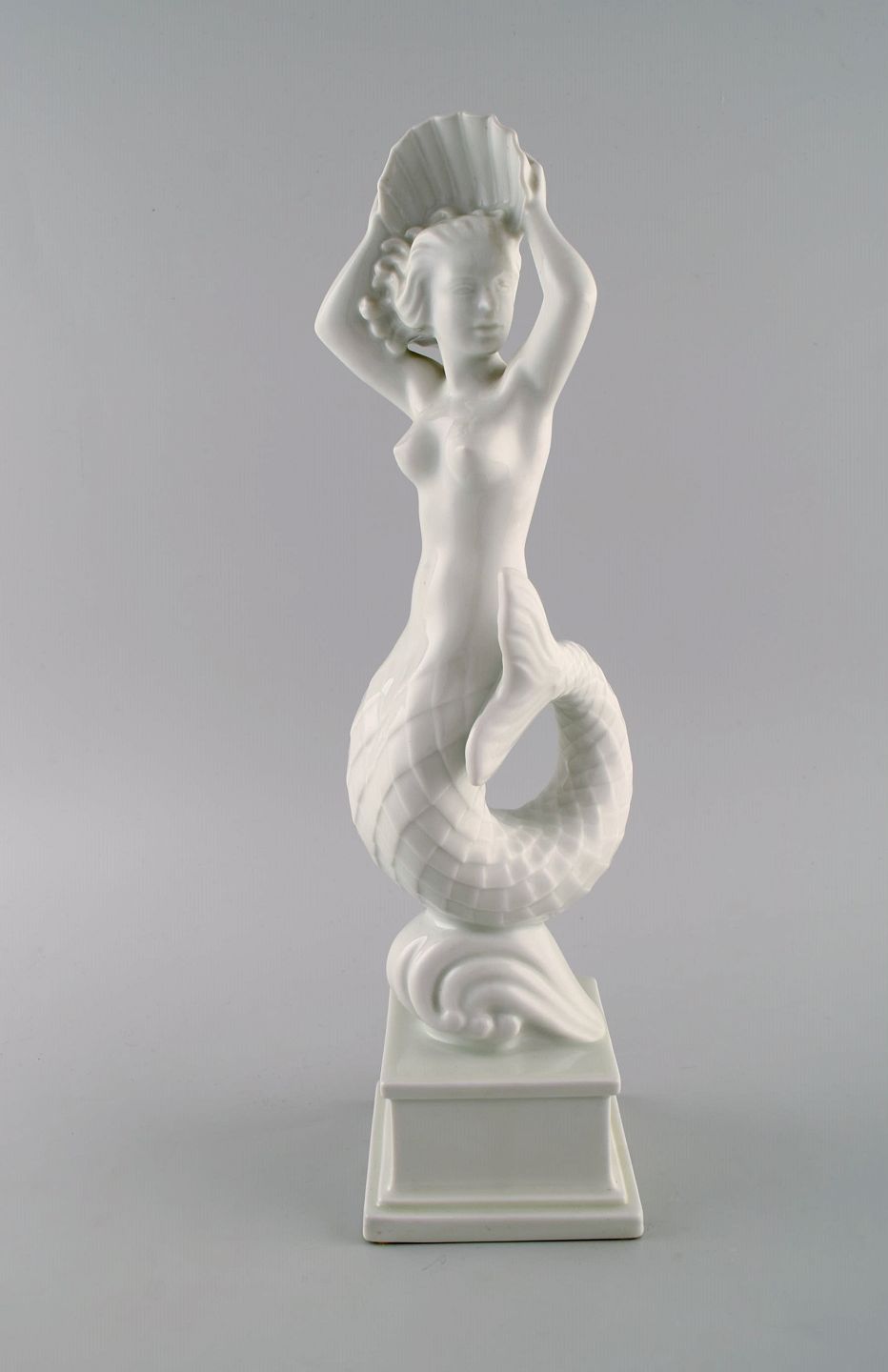 Harald Salomon (1900-1990) for Rörstrand. Art deco blanc de chine figur forestillende havfrue. 1930'erne. Måler: 36,5 x 11 cm. I flot stand. Stemplet.