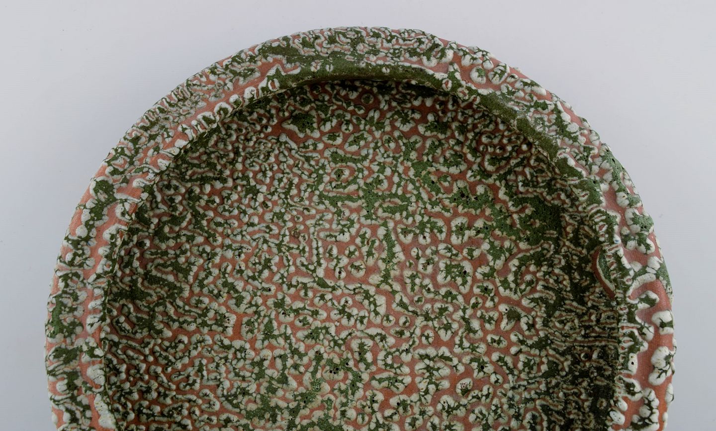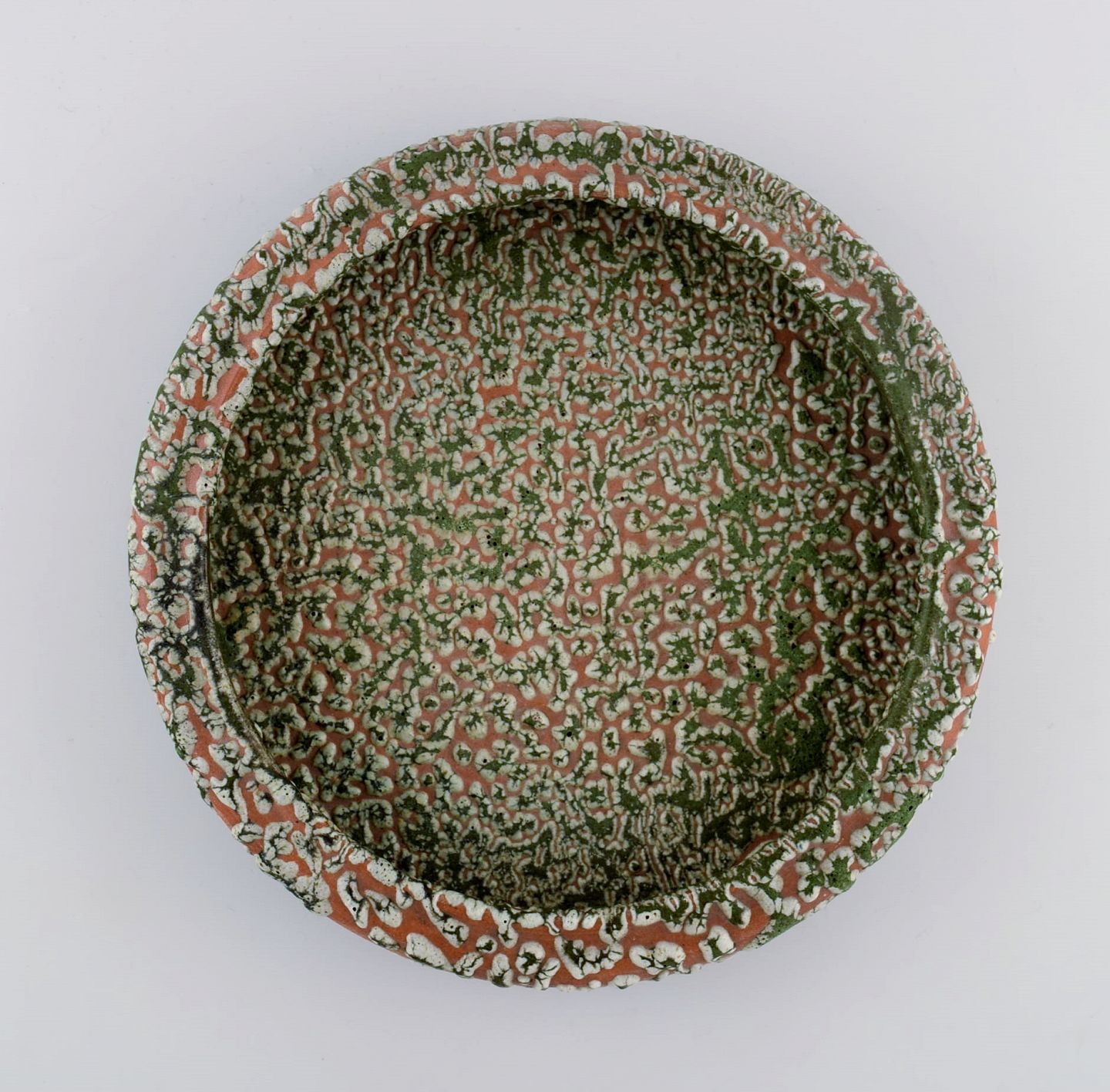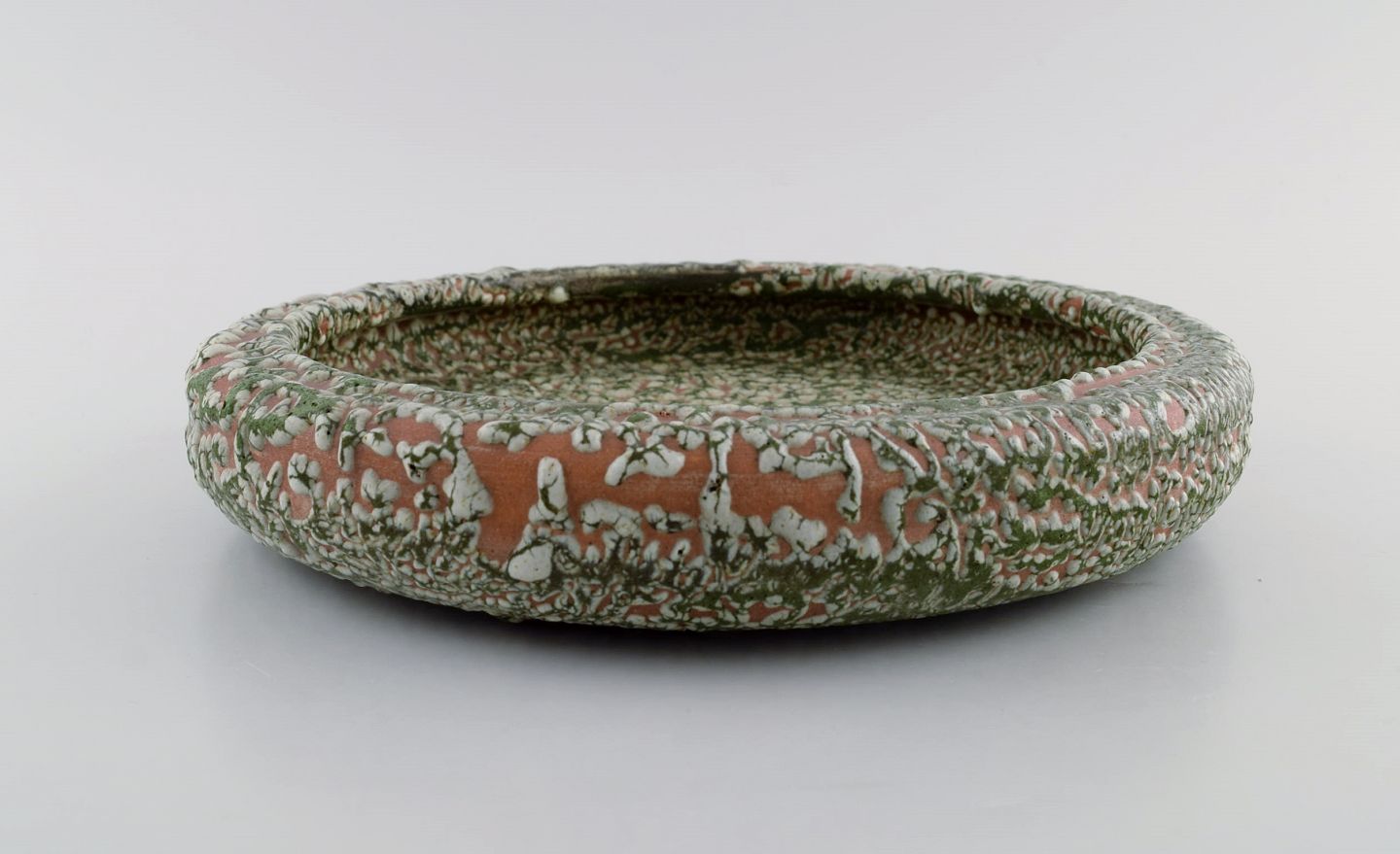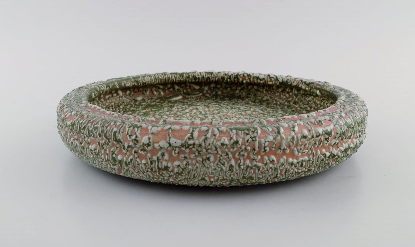 Patrick Nordström (1870-1929). Unika fad / skål i glaseret keramik. Islev, eget værksted. Smuk og usædvanlig spættet glasur. Dateret 1928. Måler: 26,5 x 5 cm. I flot stand. Signeret og dateret.