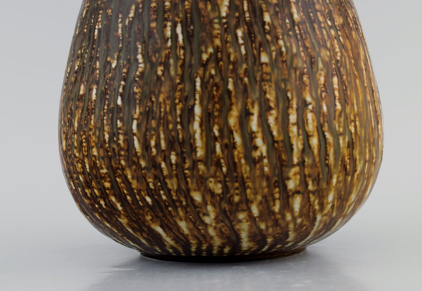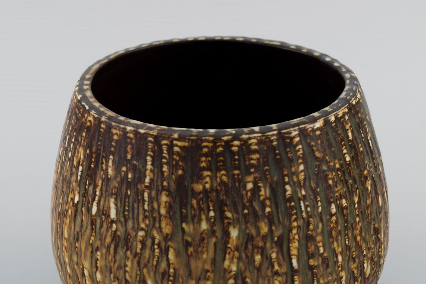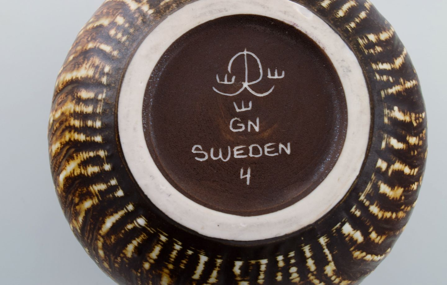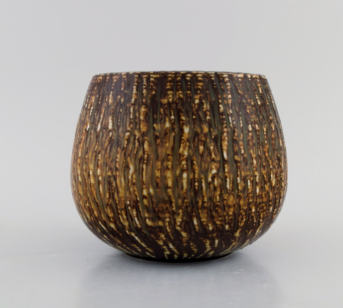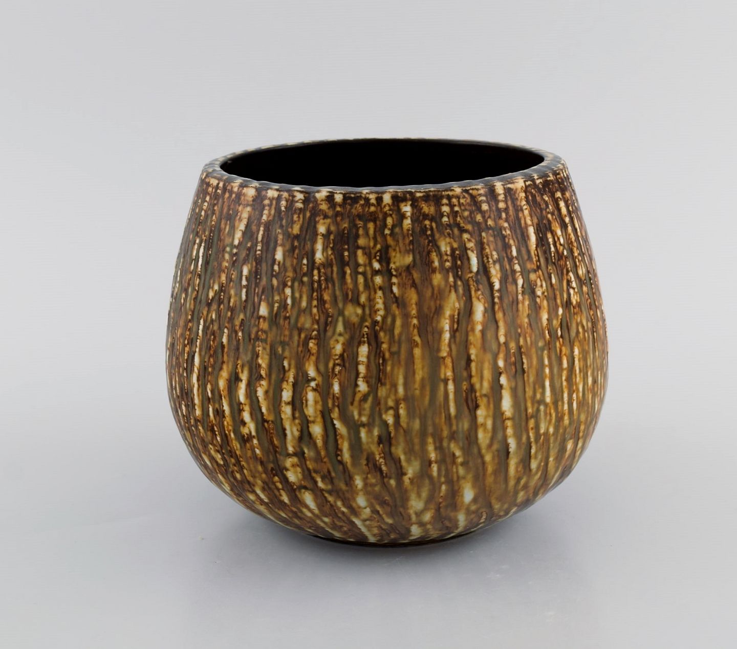 Gunnar Nylund for Rörstrand. Bowl in glazed stoneware. Beautiful birch wood glaze. Mid-20th century. Measures: 17 x 14 cm. In excellent condition. Stamped. 1st factory quality.