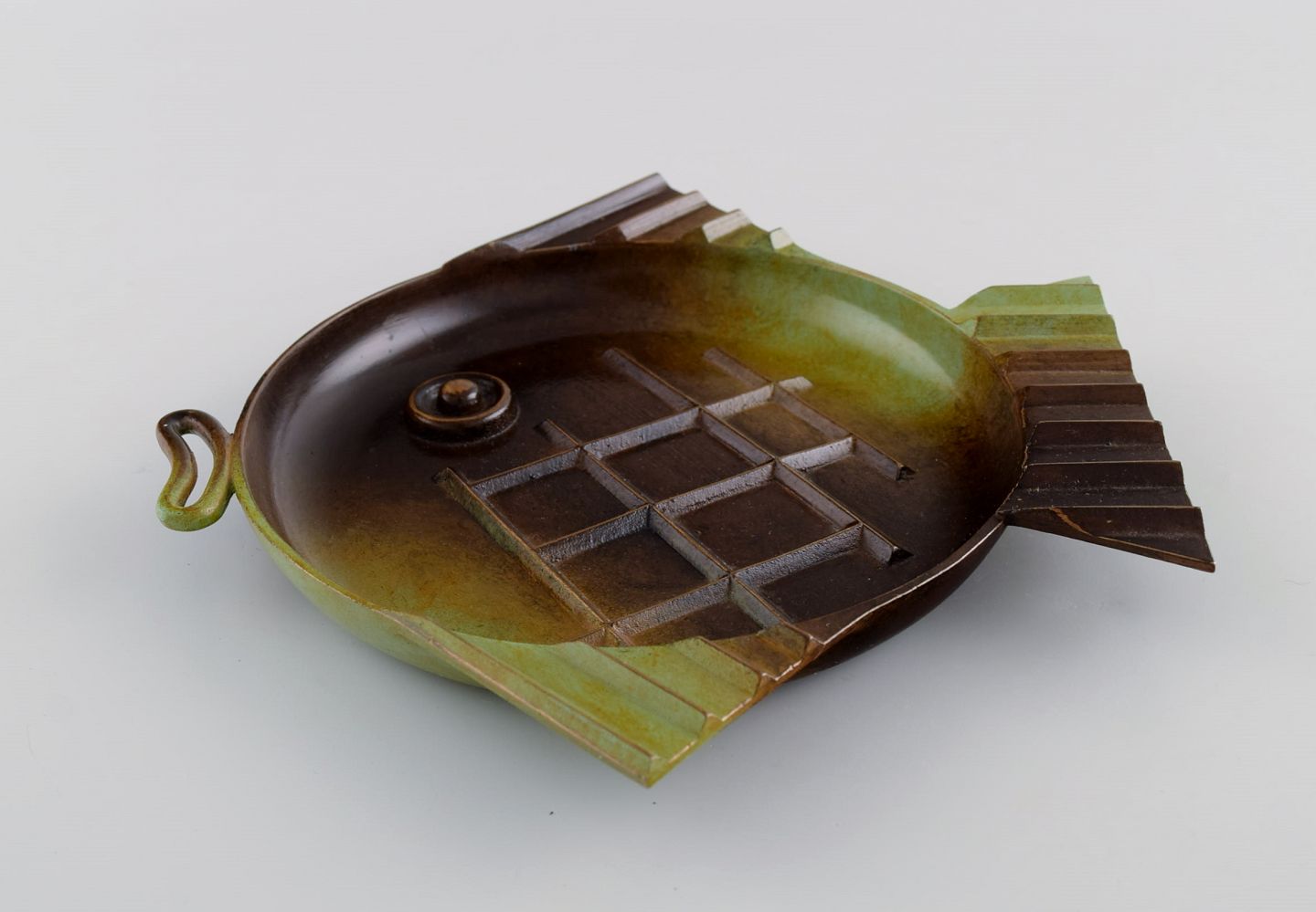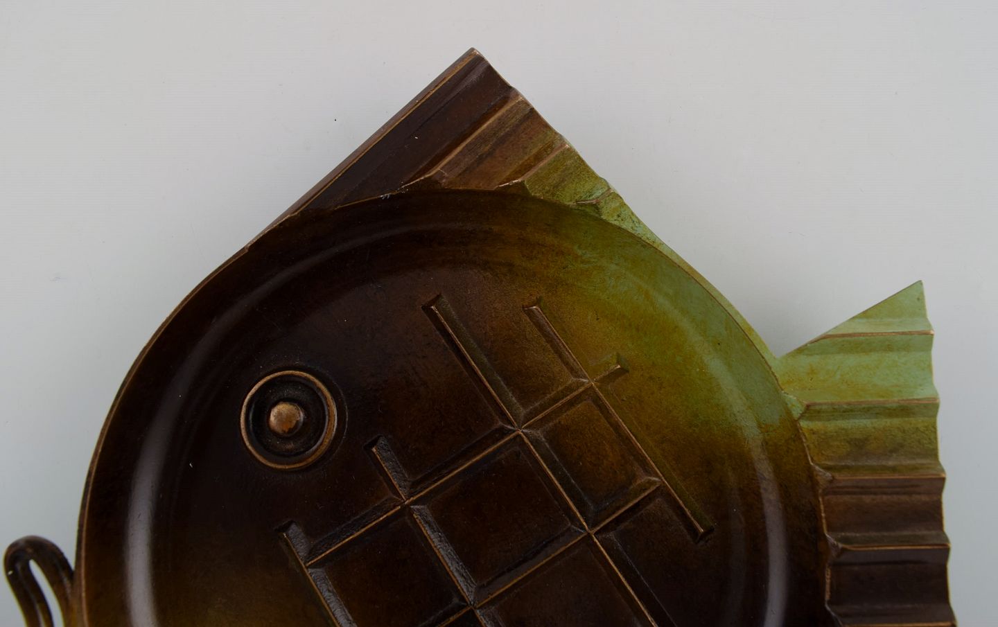 Ystad Brons, Sverige. Art deco fad i bronze formet som fisk. 1940'erne. Måler: 21,5 x 19,5 cm. I flot stand. Stemplet.