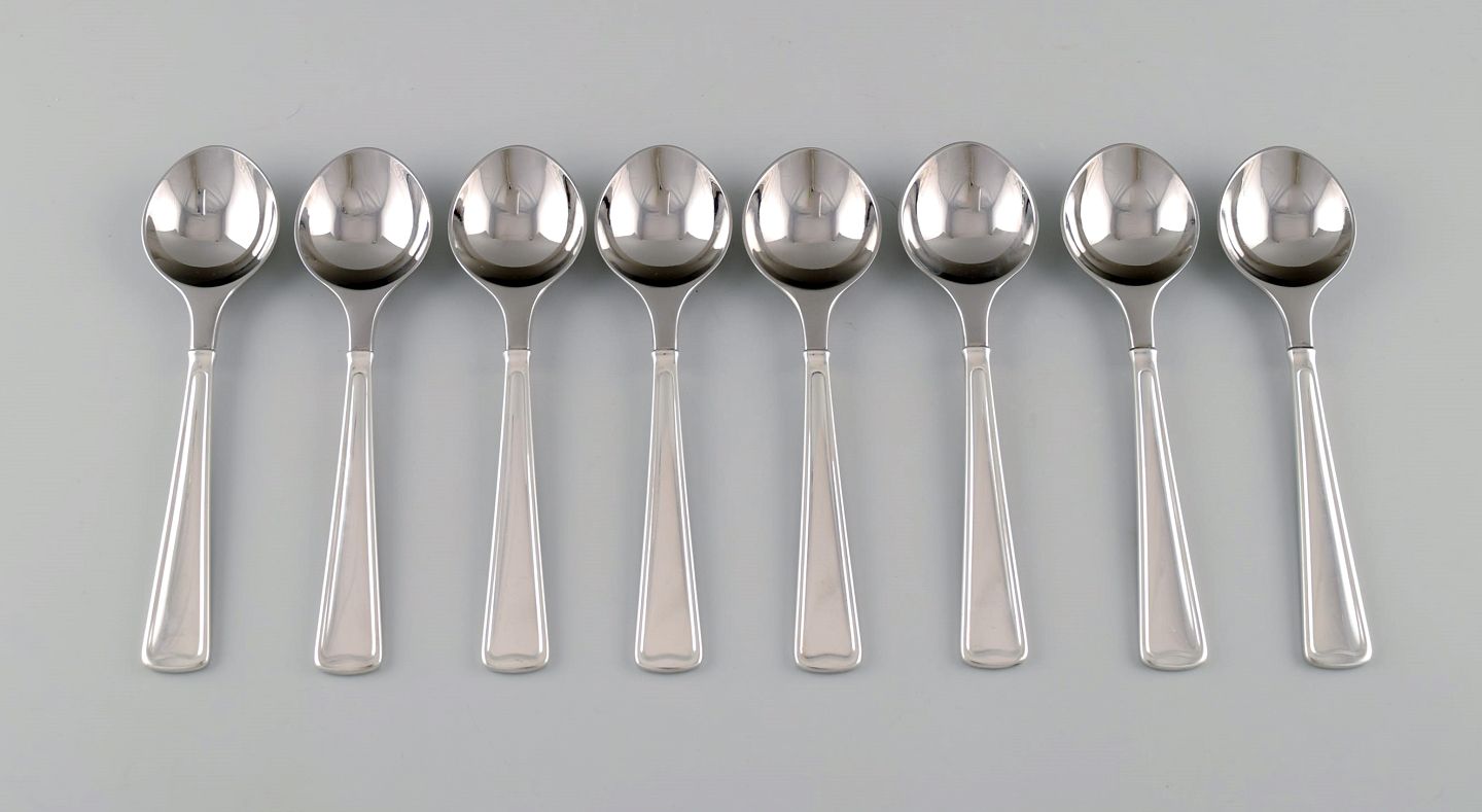 Sjældent Georg Jensen Koppel bestik. Otte sorbetskeer i sterlingsølv og rustfrit stål.