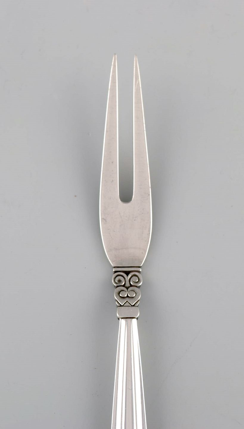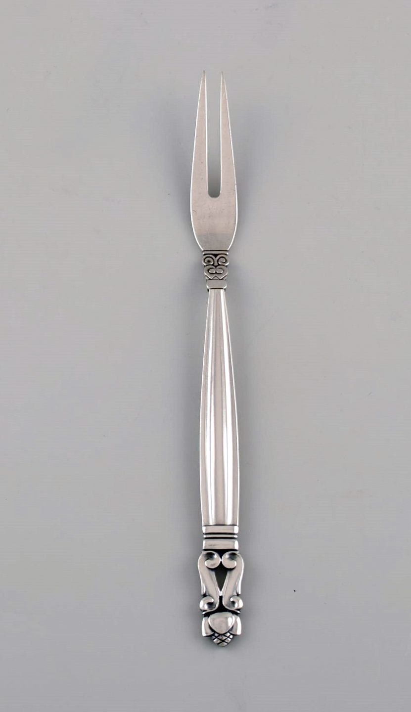 Georg Jensen Konge pålægsgaffel i sterlingsølv. Længde: 16,5 cm. I flot stand. Stemplet. Vores dygtige Georg Jensen sølvsmed kan polere alt sølv og guld, så det fremstår nyt. Prisen er meget rimelig.