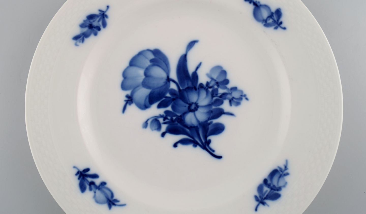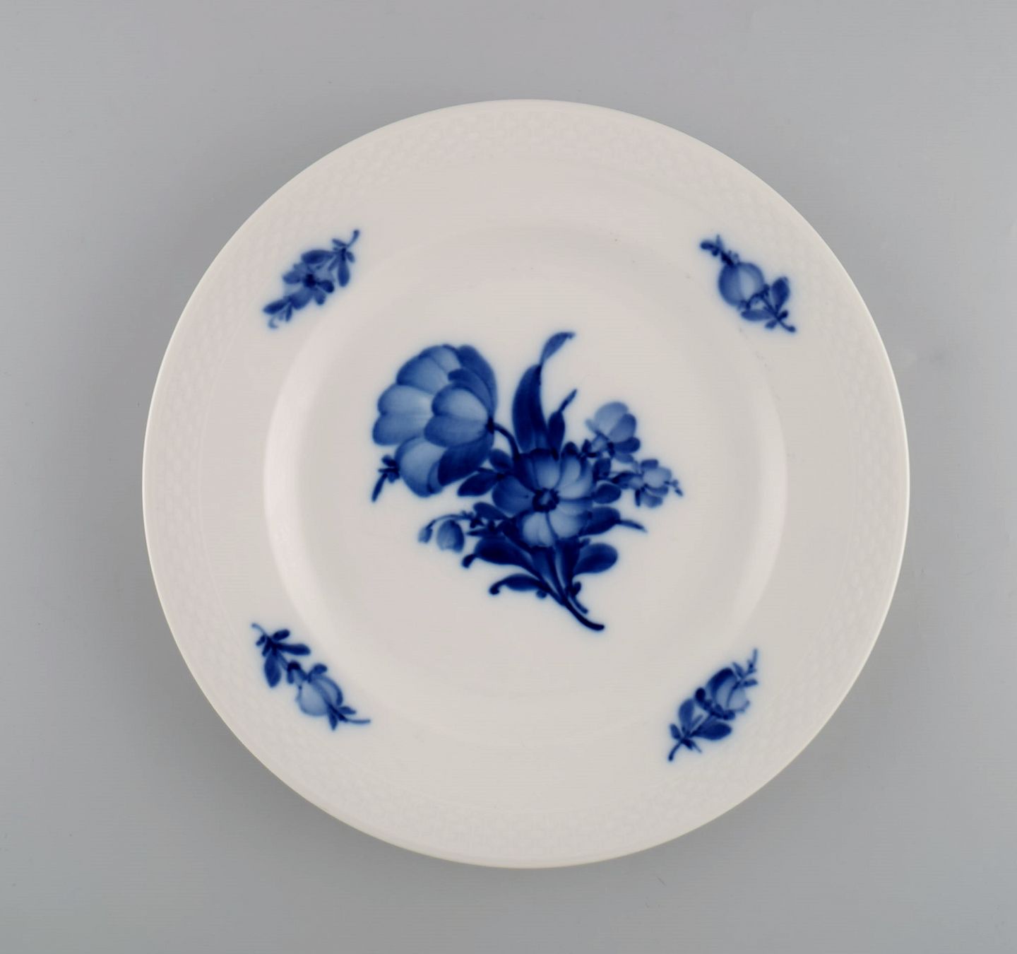 Royal Copenhagen Blå Blomst Flettet frokosttallerken. Modelnummer 10/8096. Tidligt 1900-tallet. Diameter: 23,5 cm. I flot stand. 1. sortering. Stemplet.