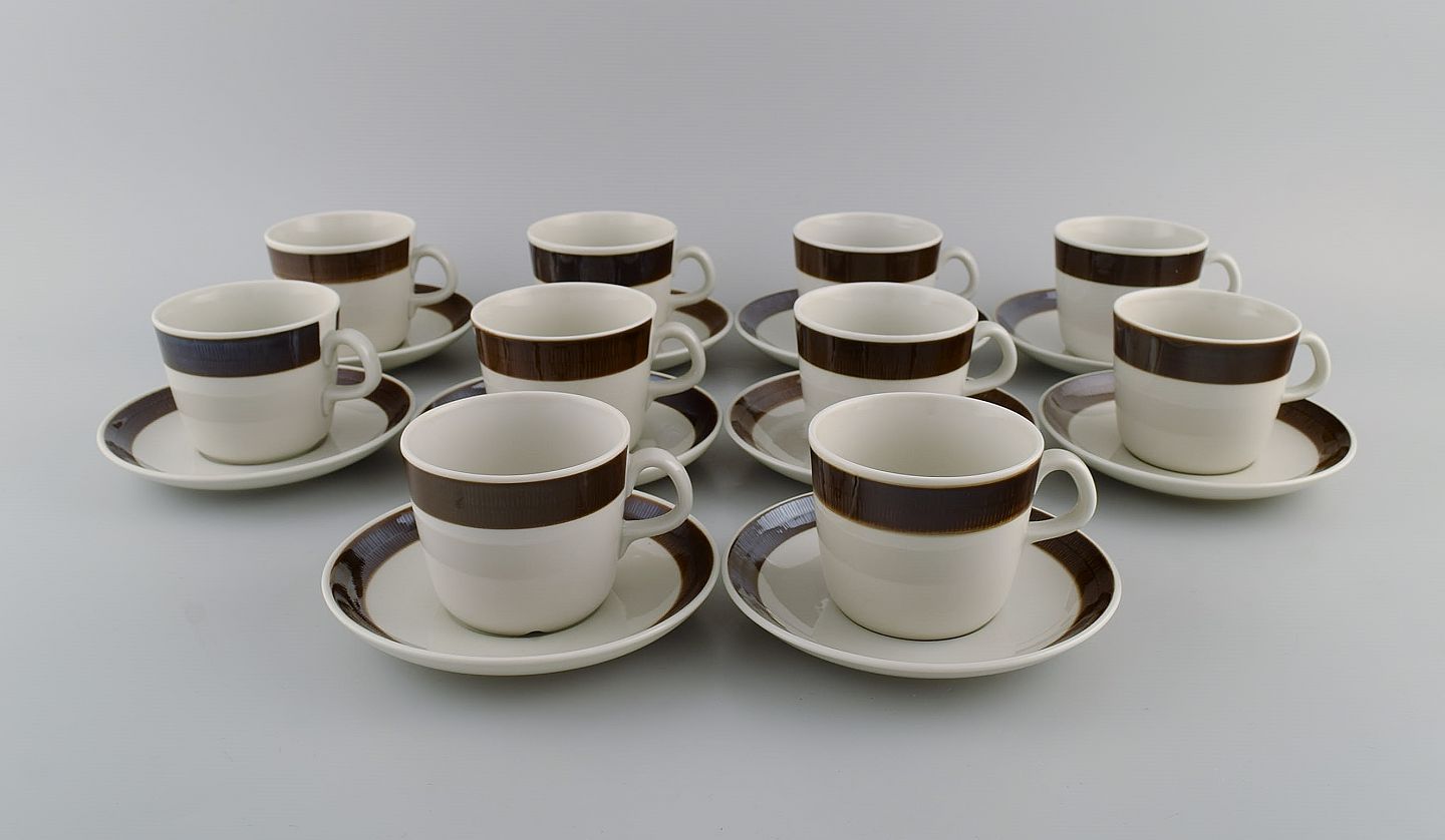 Hertha Bengtsson (1917-1993) for Rörstrand. 10 Koka kaffekopper med underkopper i glaseret stentøj. 1960'erne.