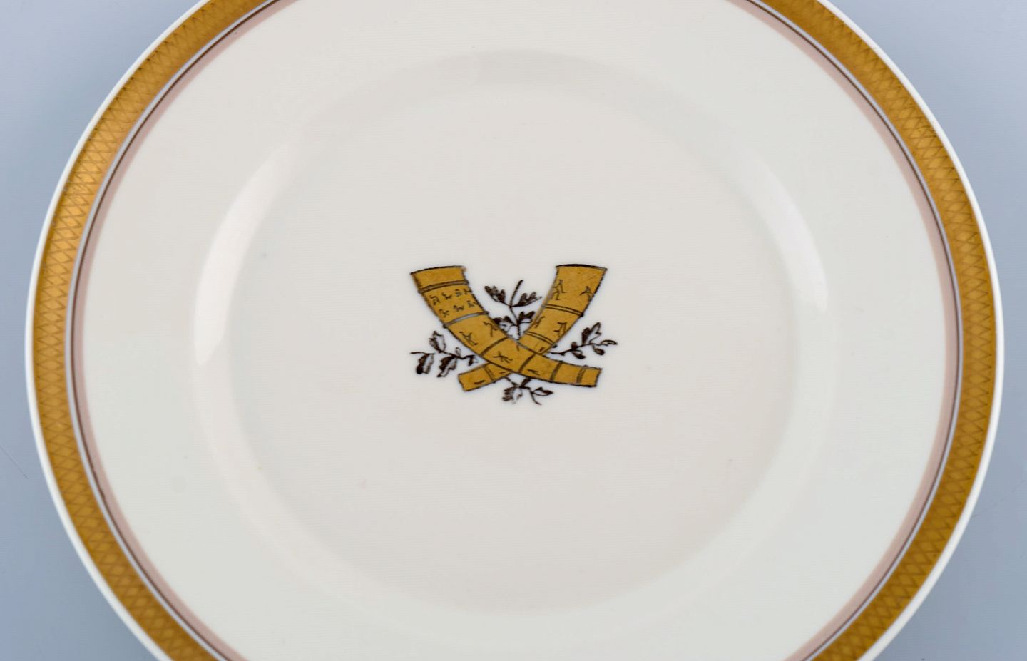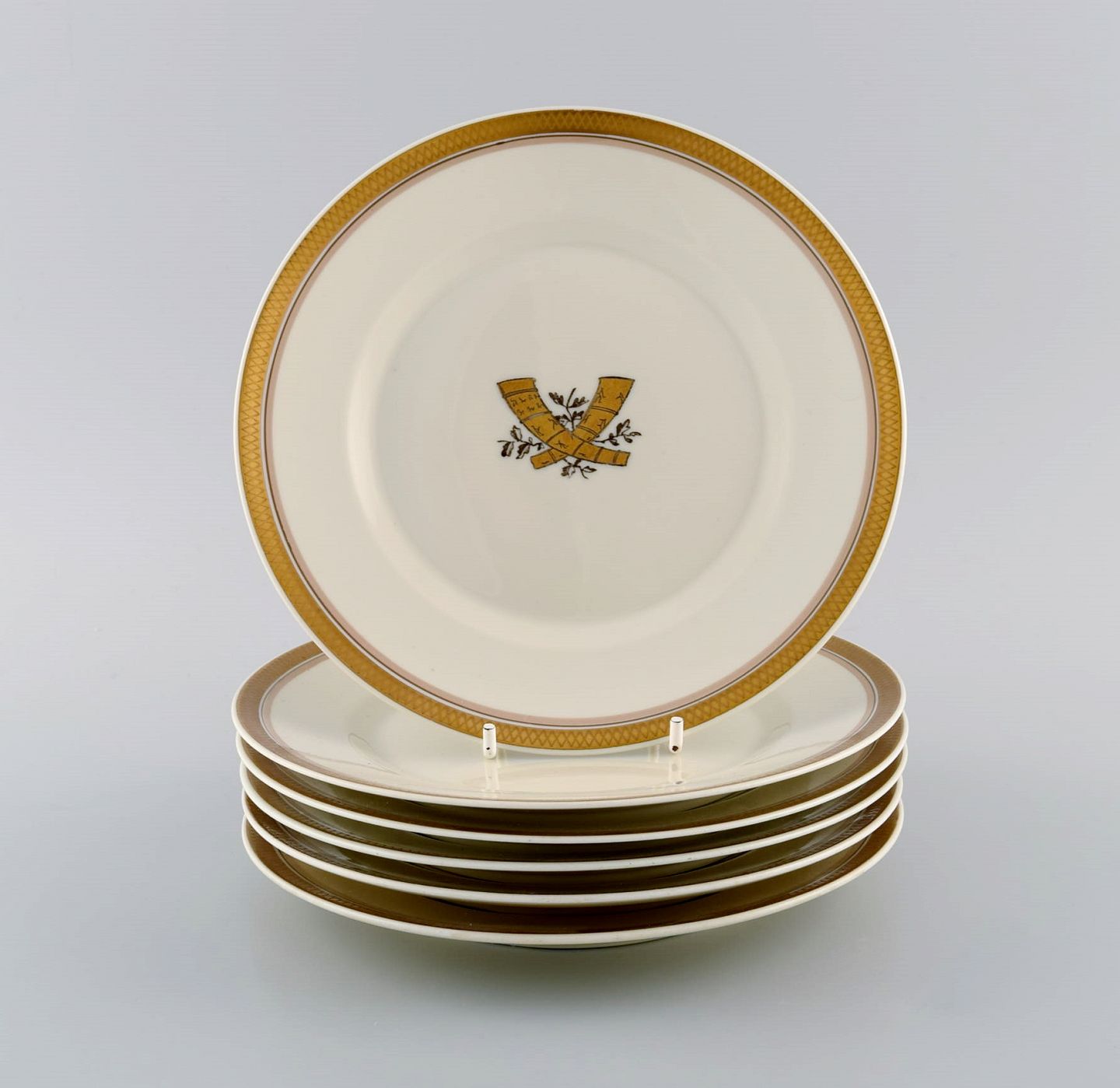 Six Royal Copenhagen Golden Horns porcelain plates. 1960s. Diameter: 19 cm. In excellent condition. Stamped. 1st factory quality.