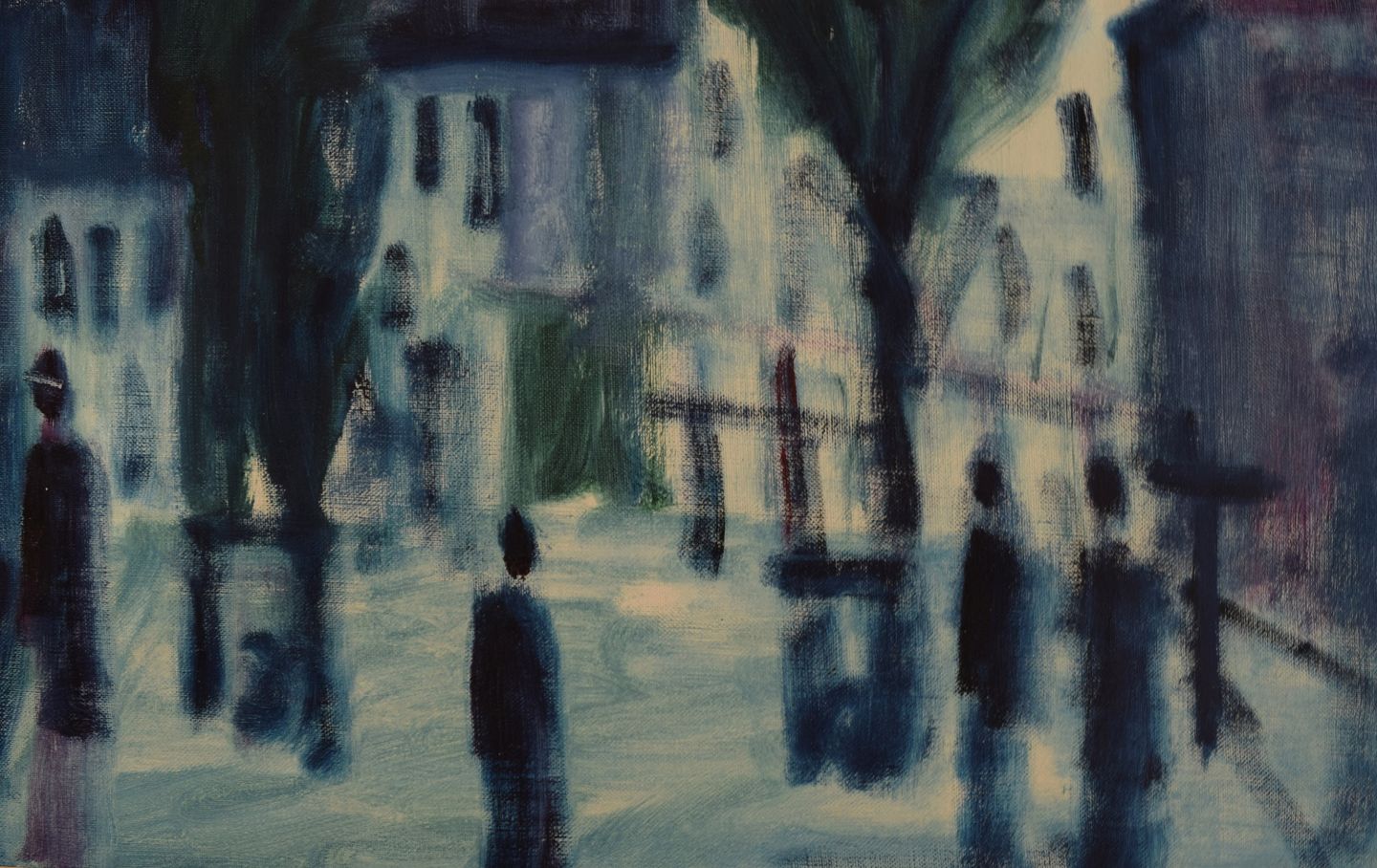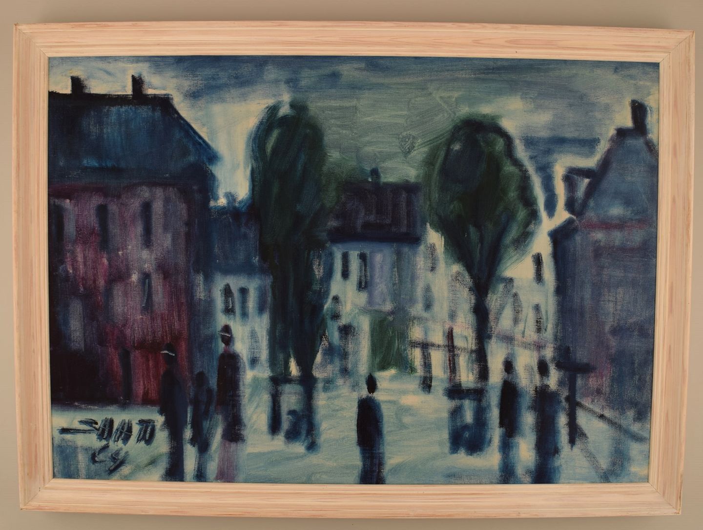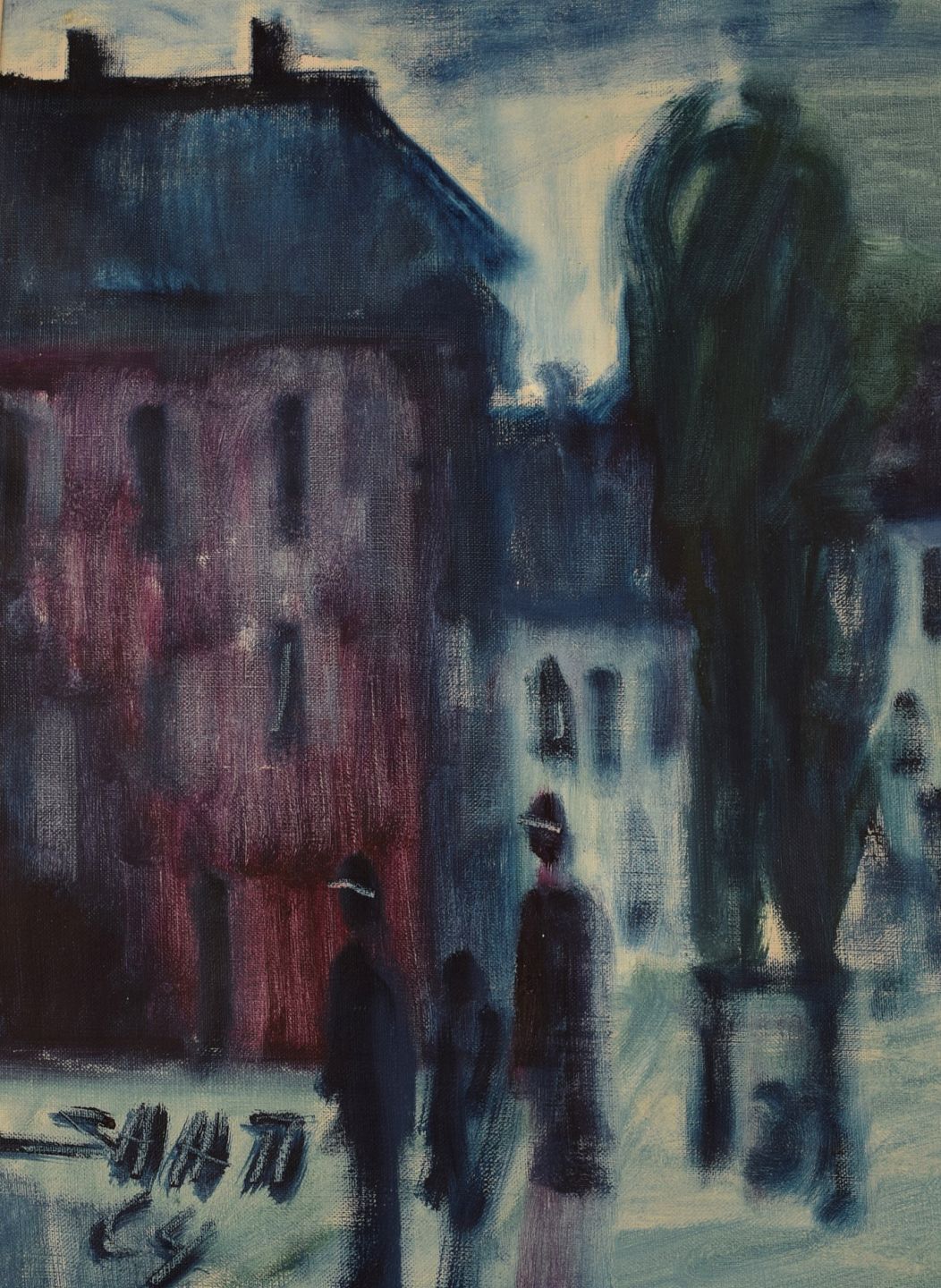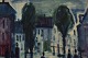 Svend Aage Tauscher (1911-1984), Dansk kunstner. Olie på lærred. Modernistisk bymotiv. Dateret 1964.