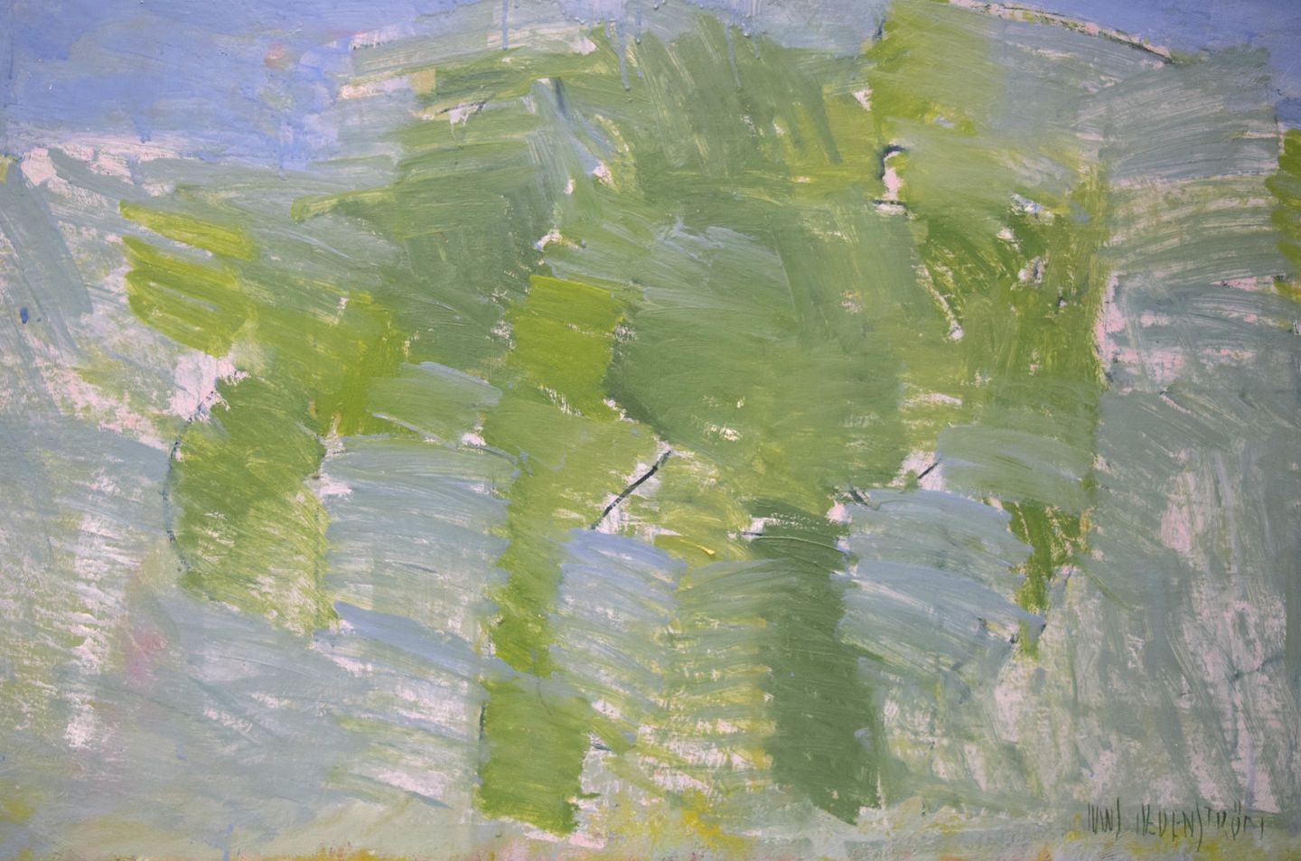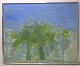 Hans Hedenström, svensk kunstner. Olie på lærred. Modernistisk landskab. 1970'erne. Lærredet måler: 99 x 81 cm. Rammen måler: 2 cm. I flot stand. Signeret.