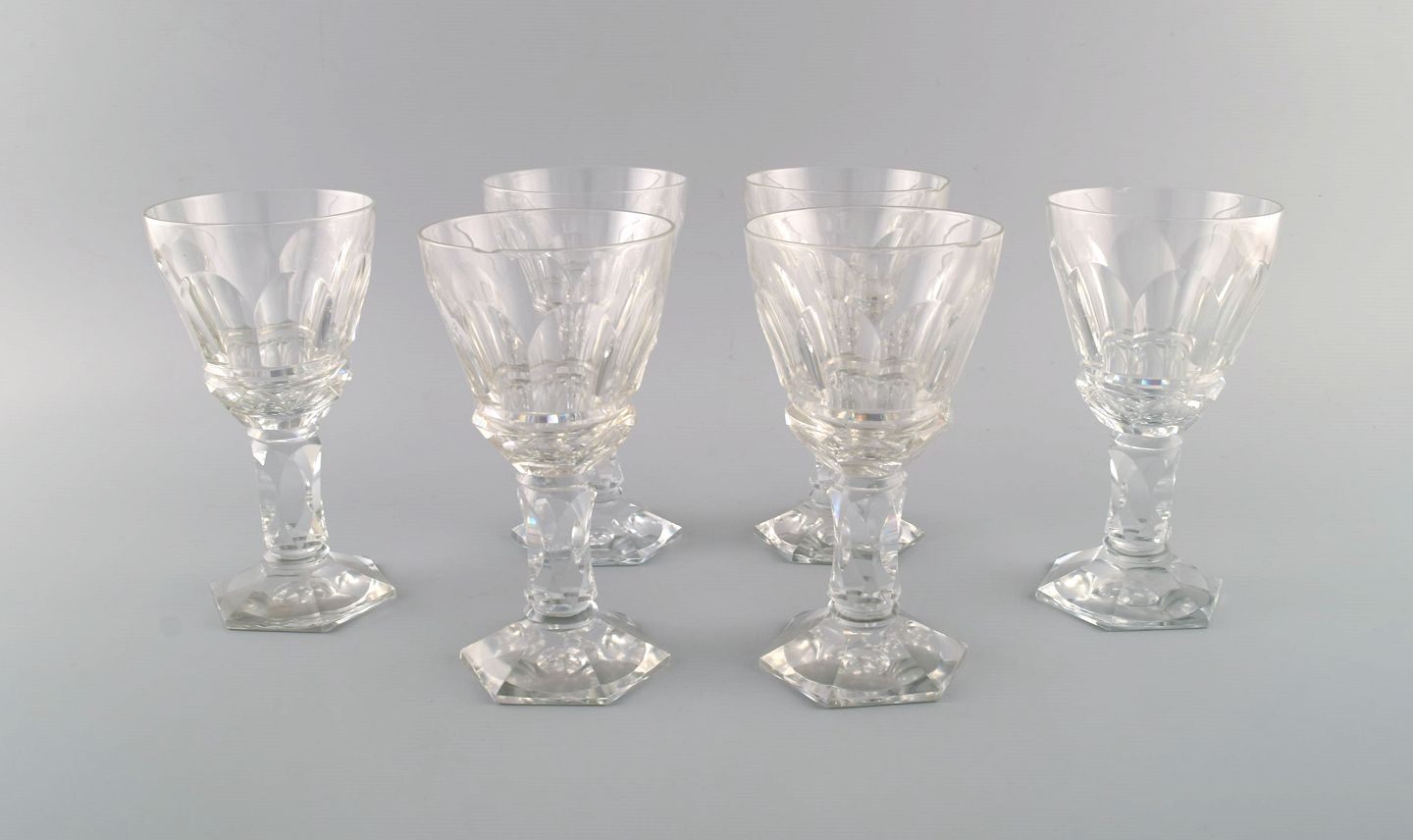 Baccarat, Frankrig. Seks art deco rødvinsglas i klart mundblæst krystalglas. 1930'erne.