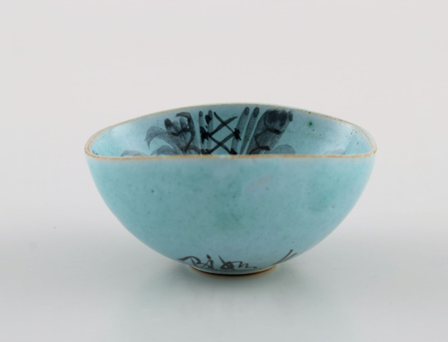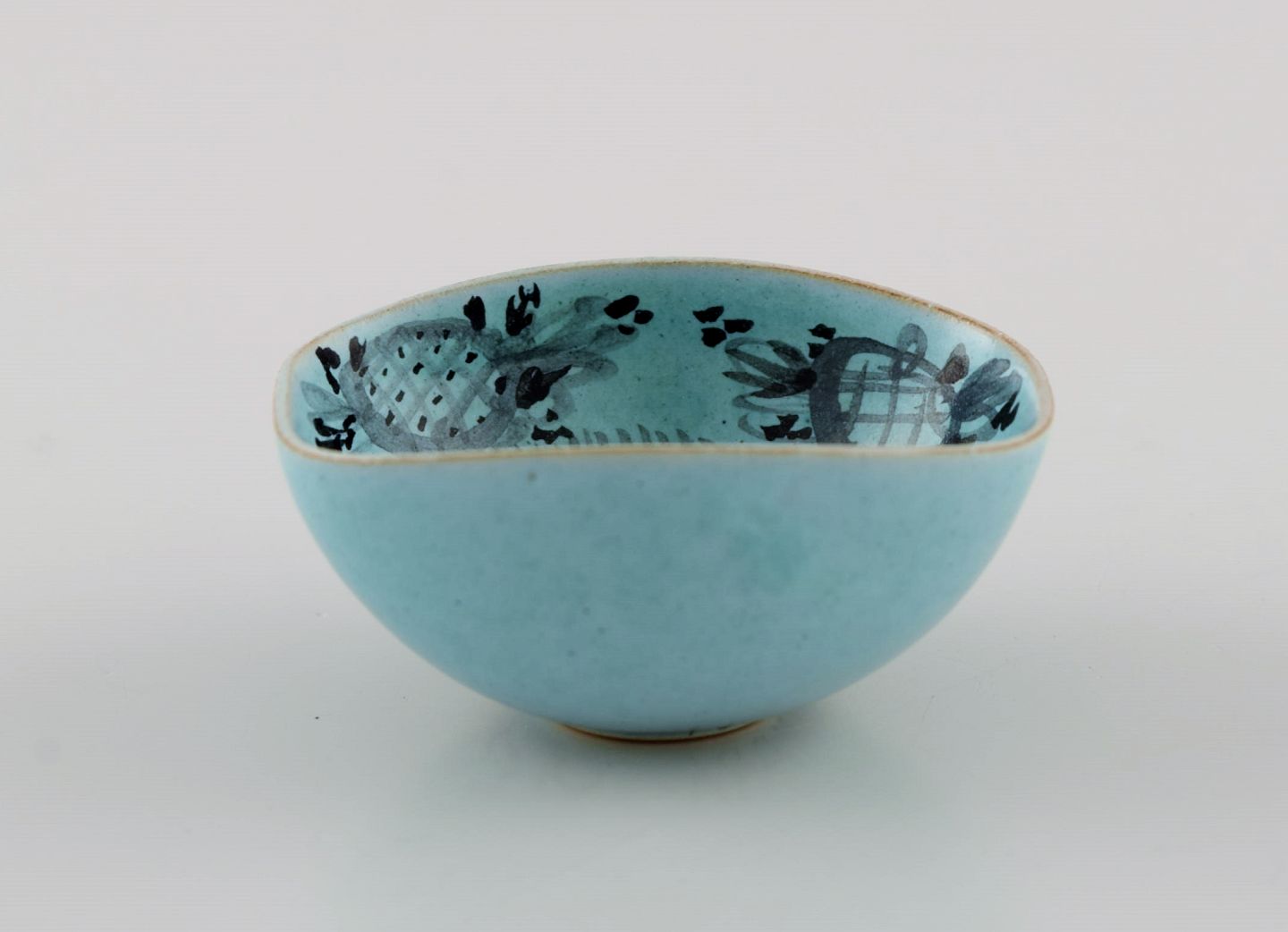 Bjørn Wiinblad (1918-2006), Danmark. Unika miniatureskål i glaseret keramik med håndmalet kvindeansigt. Dateret 1951. Måler: 5,5 x 4,5 2,7 cm. I flot stand. Signeret og dateret.