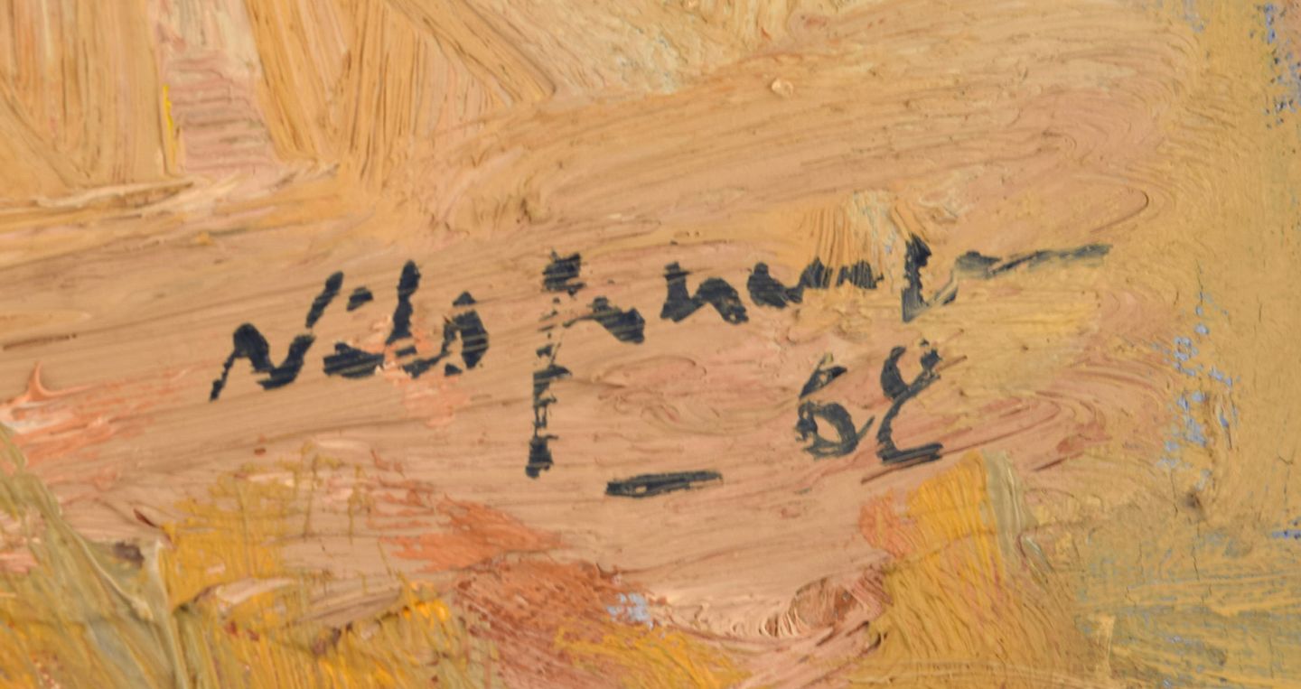 Nils Johansson (1922-2014), Sverige. Olie på plade. Abstrakt komposition. Dateret 1962.