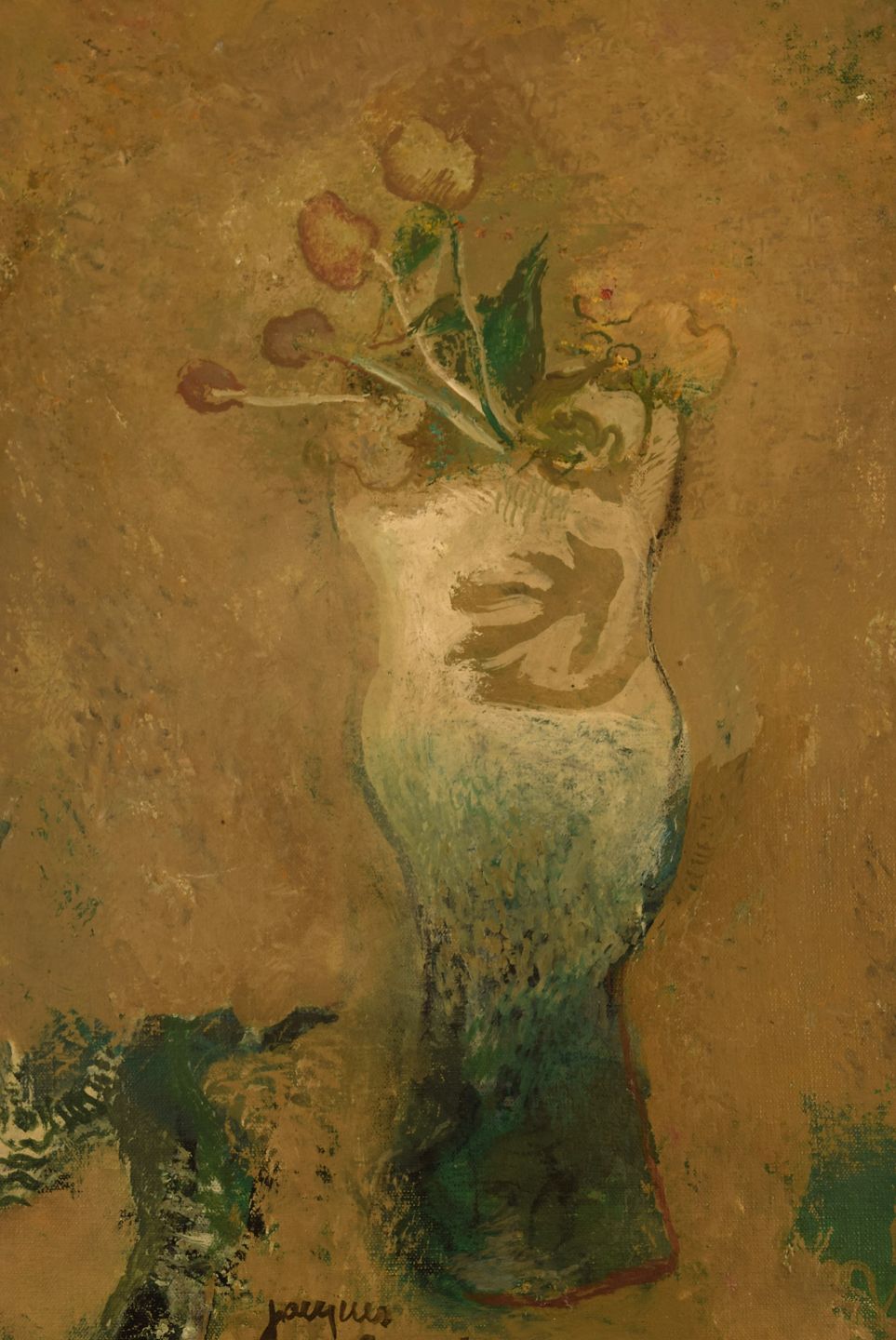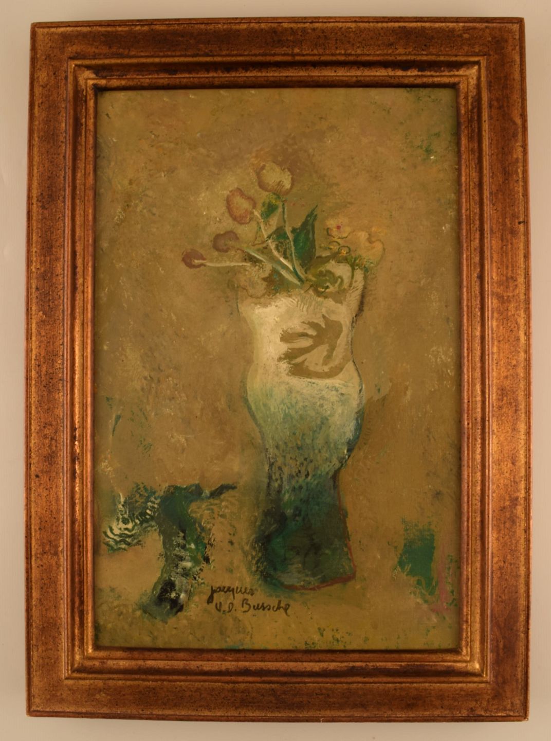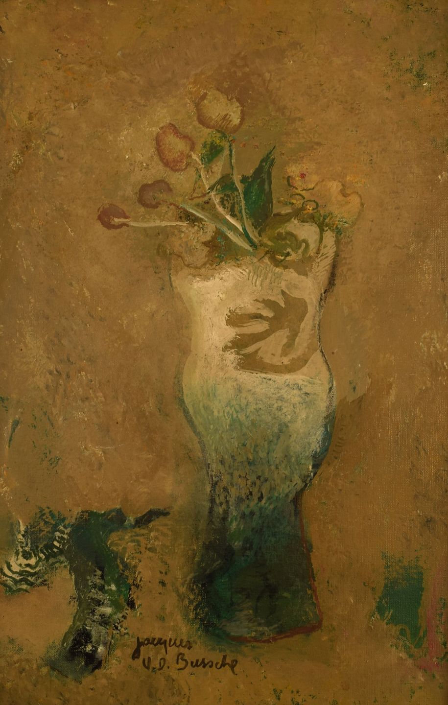 Jacques Van den Bussche (f. 1925), Holland. Olie på lærred. Modernistisk stilleben. 1960'erne. Lærredet måler: 40 x 26 cm. Rammen måler: 4,5 cm. I flot stand. Signeret.