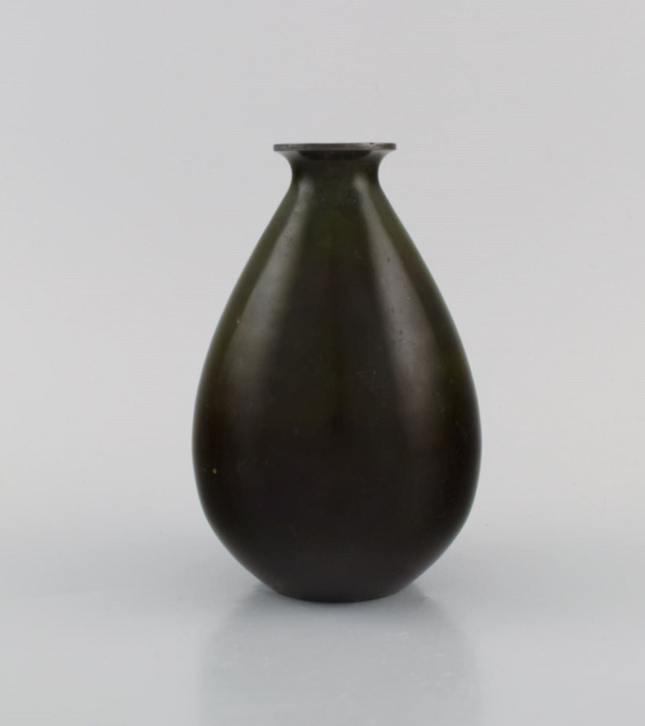 Just Andersen, Danmark. Tidlig vase i diskometal. 1930'erne. Modelnummer D1521. Måler: 14,5 x 9,5 cm. I flot stand med patina. Stemplet.