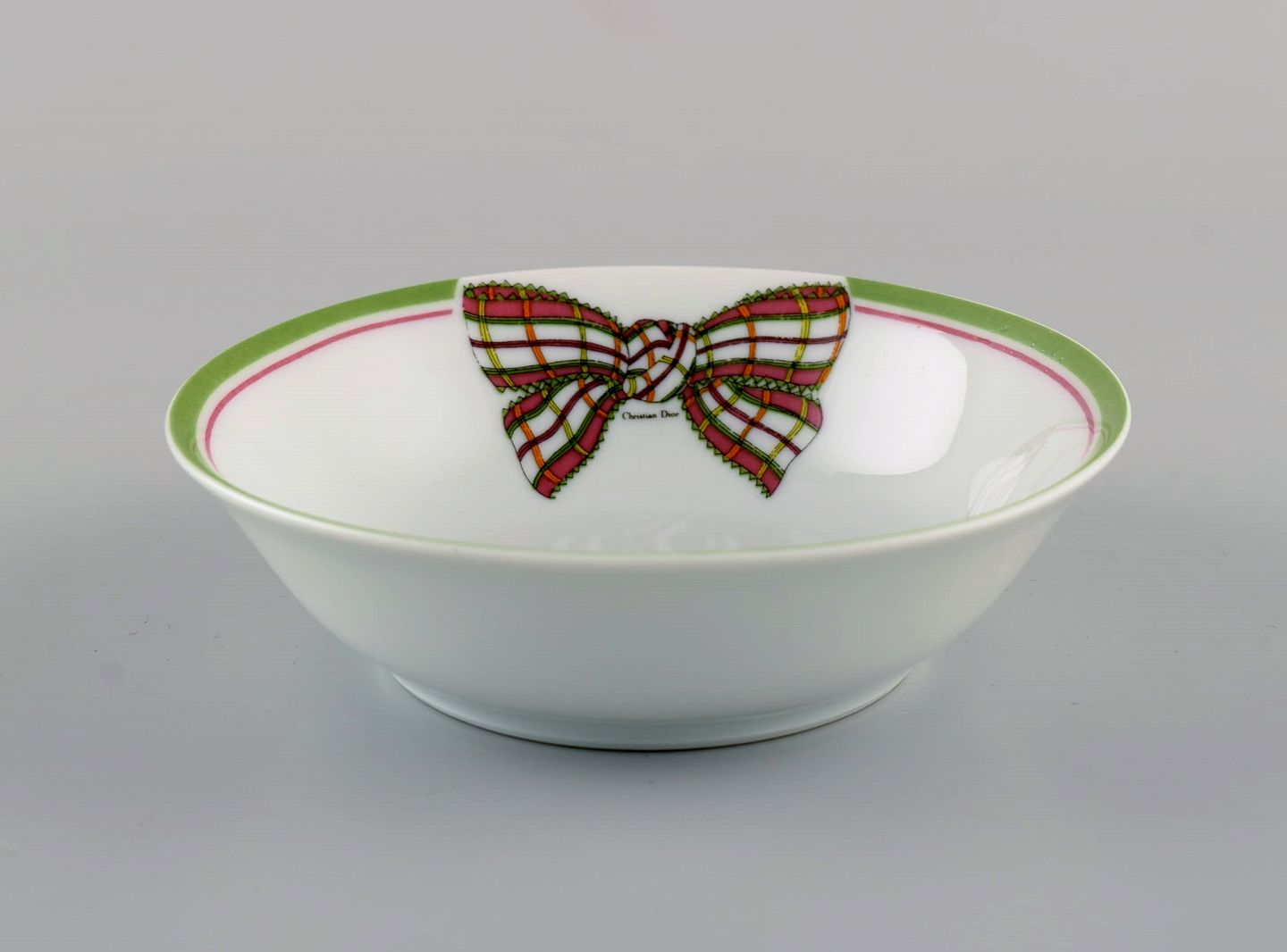 Limoges, France. Four rare Christian Dior "Spring" bowls in porcelain decorated with ribbon and bow. 1980s. Measures: 13 x 3.8 cm. In excellent condition. Stamped.