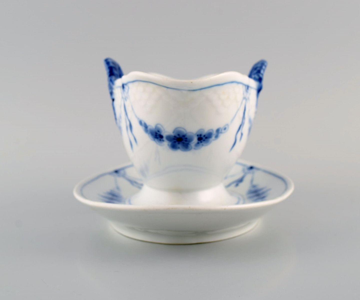 Bing & Grøndahl empire sovseskål i håndmalet porcelæn modeleret med søheste. Tidligt 1900-tallet.