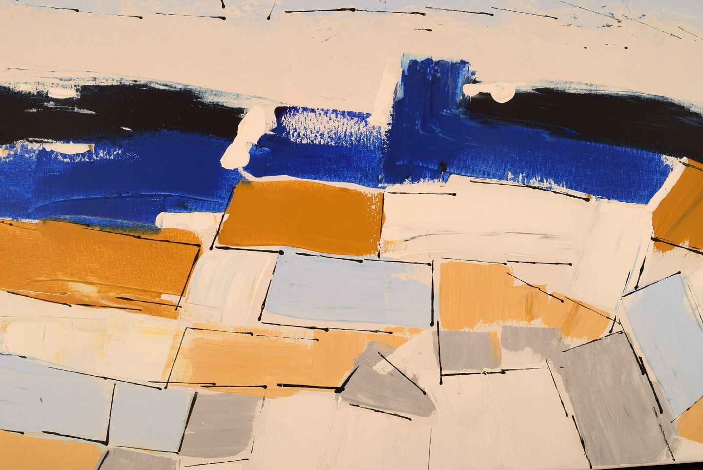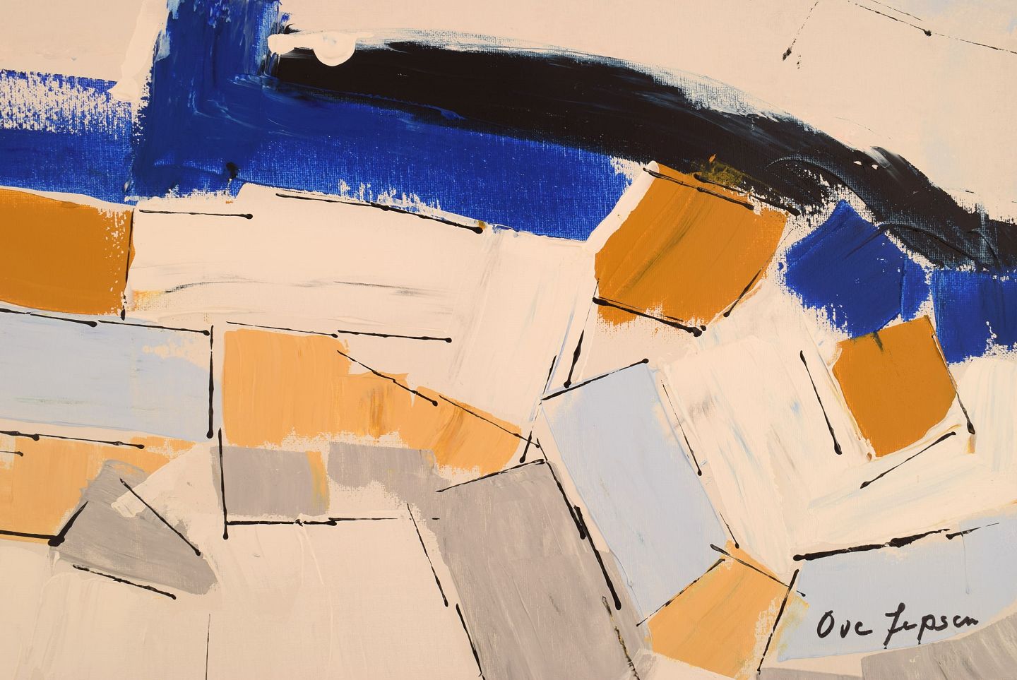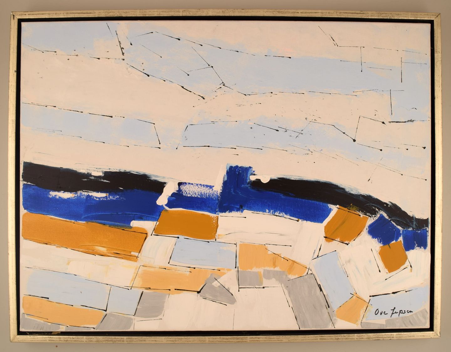 Ove Jepsen (b. 1934), listed Danish artist. Acrylic on canvas. "My father's fields". Abstract landscape. Late 20th century.