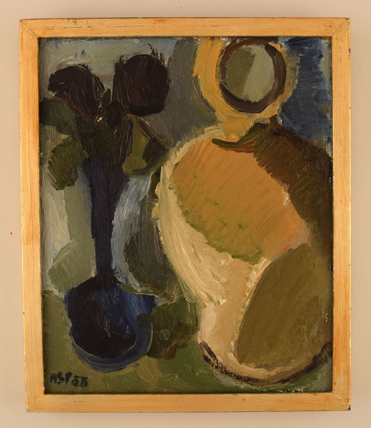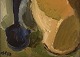 Gösta Asp (1910-1986), Sverige. Olie på plade. Modernistisk stilleben. Dateret 1958. Pladen måler: 26,5 x 21,5 cm. Rammen måler: 1,3 cm. I flot stand. Signeret og dateret.