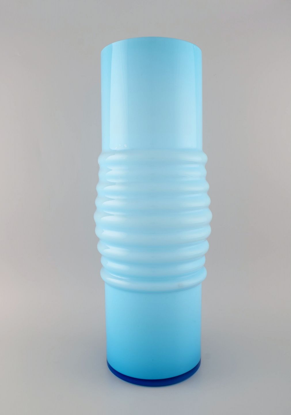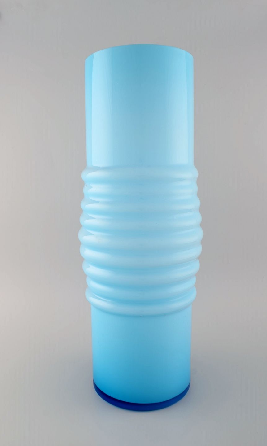 Per-Olof Ström for Alsterfors. Stor vase i lyseblåt mundblæst kunstglas. 1960'erne. Måler: 50 x 19 cm. I flot stand.