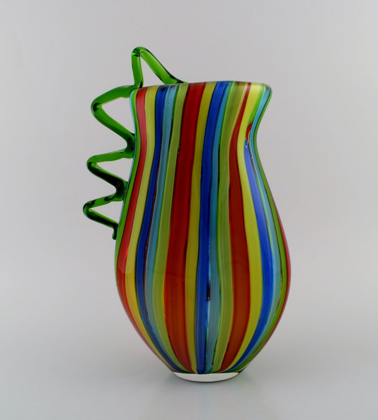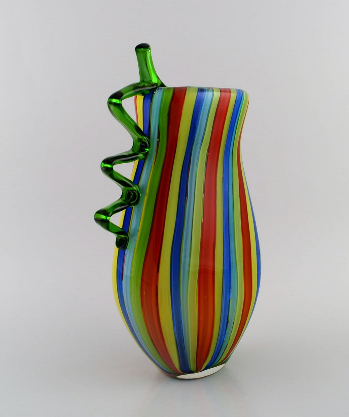 Murano, Venedig. Stor Picasso vase i mundblæst kunstglas. 1980'erne. Måler: 30 x 21,5 cm. I flot stand.
