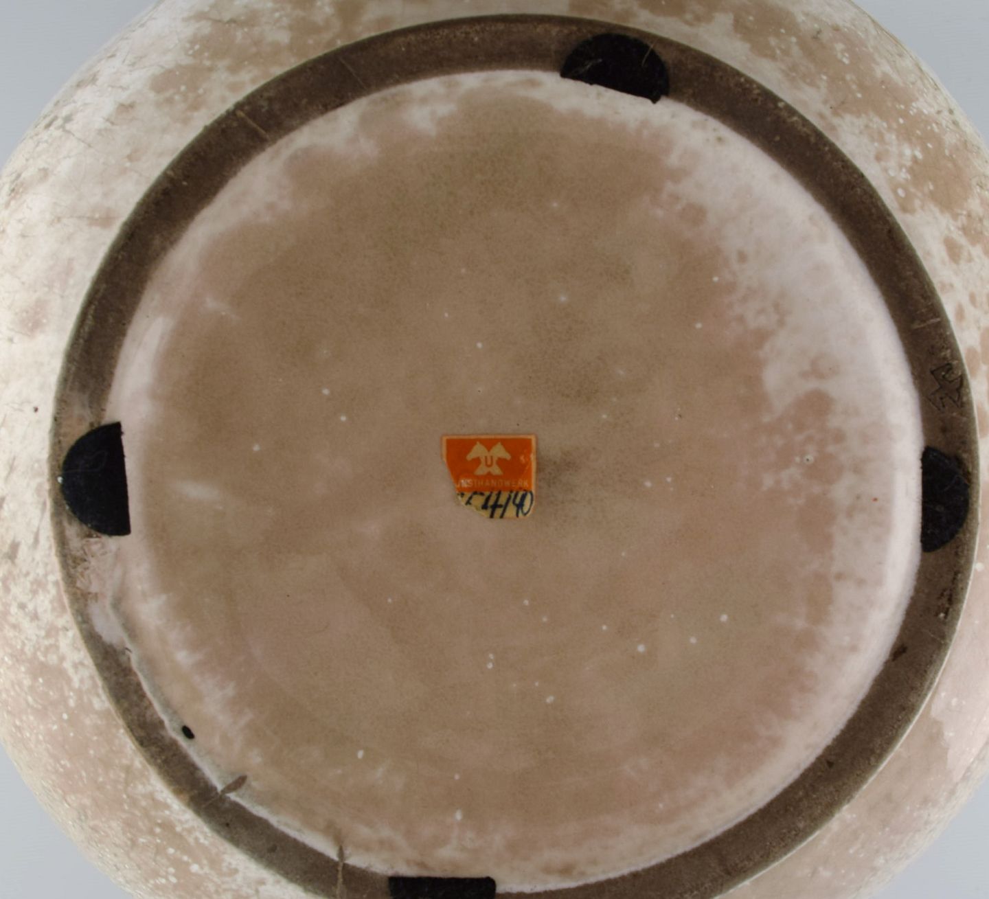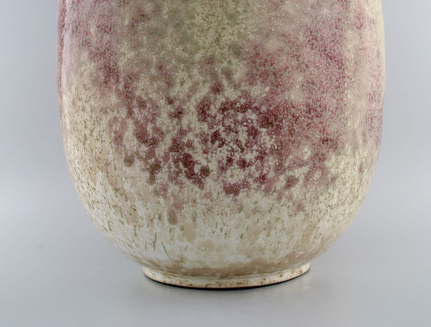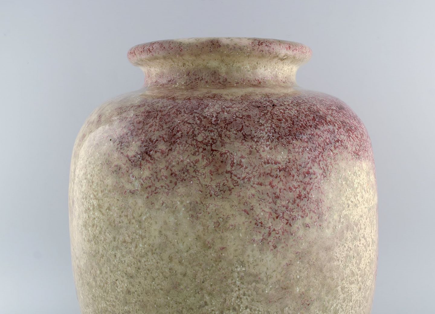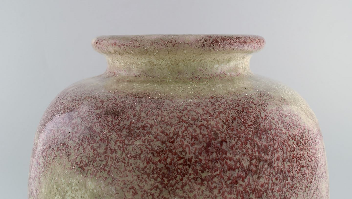 Richard Uhlemeyer, Tyskland. Stor vase i glaseret keramik. Smuk spættet glasur i sand og purpur nuancer. 1940'erne. Måler: 40 x 32 cm. I flot stand. Stemplet.