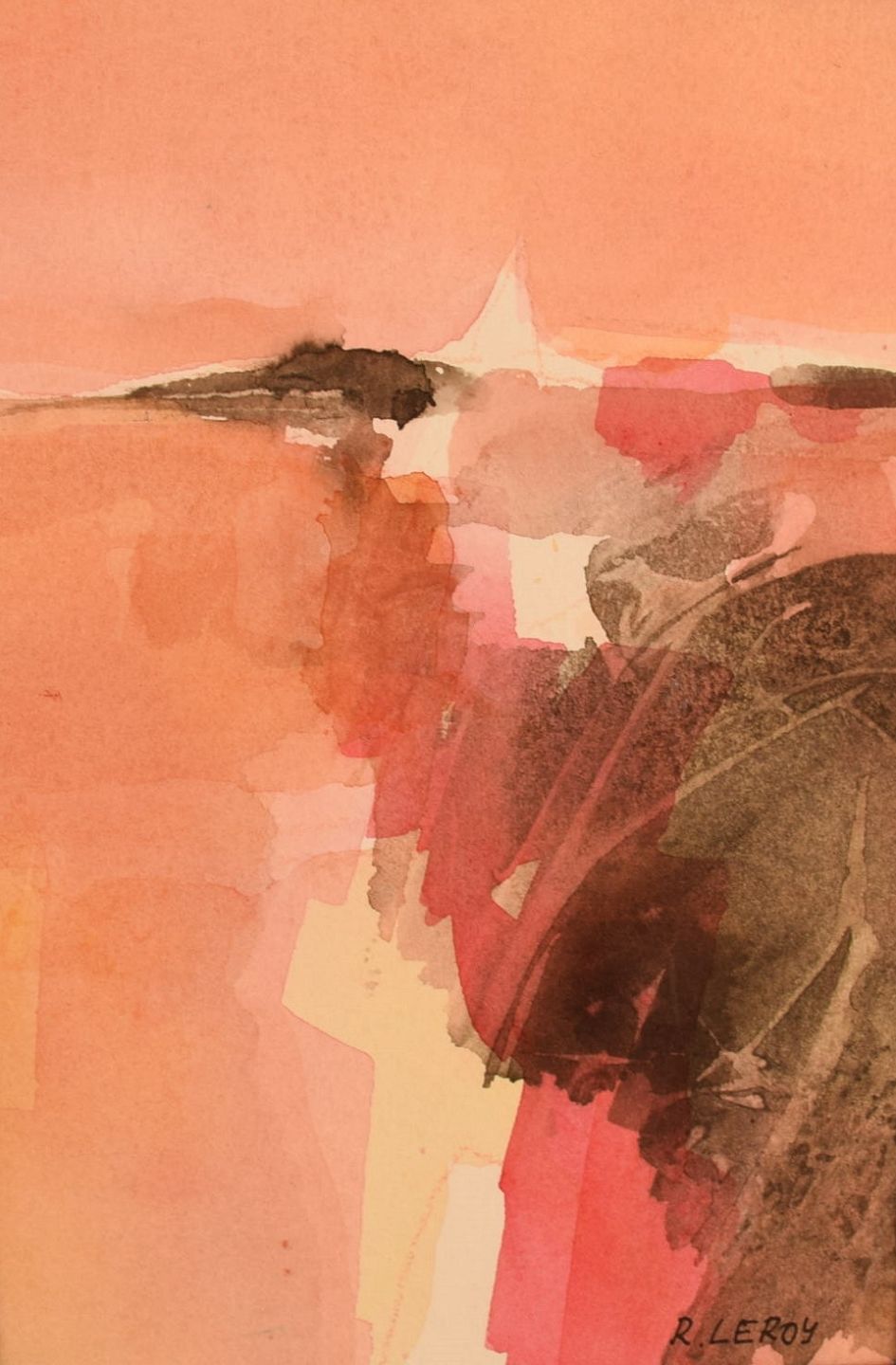 René Leroy (b. 1931), French artist. Watercolor on paper. 1980s. Visible dimensions: 20 x 13.5 cm. Total dimensions: 32 x 22.5 cm. In excellent condition. Signed.