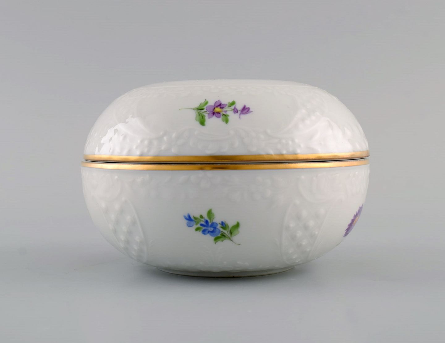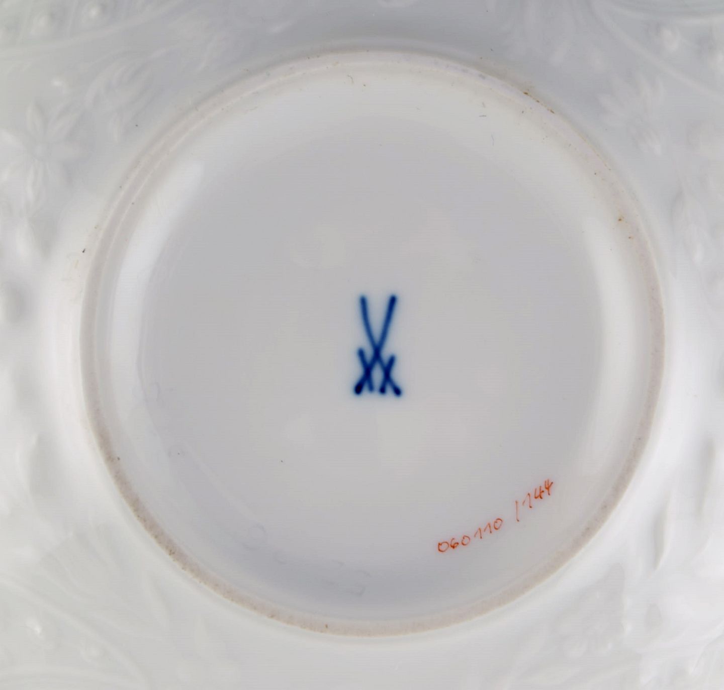 Antik Meissen lågskål i porcelæn med håndmalede blomster og guldkant. 1920/30'erne. Måler: 12,5 x 8 cm. I flot stand. Stemplet. 1. Sortering.