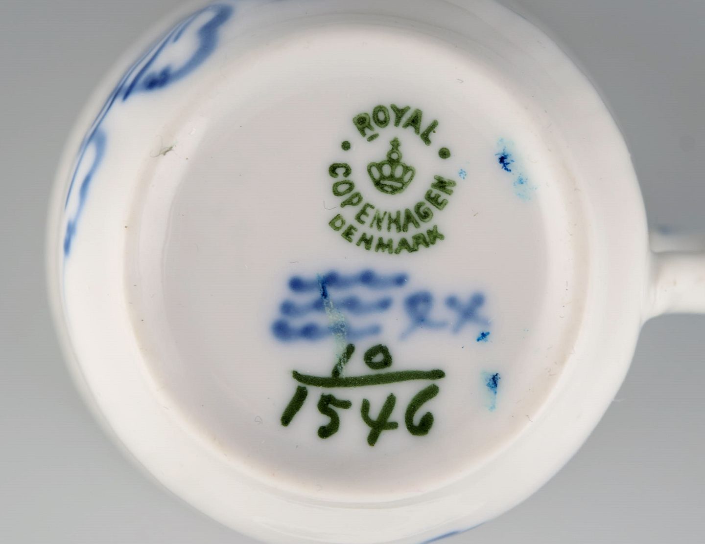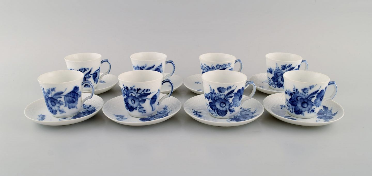 Eight Royal Copenhagen Blue flower Curved espresso cups with saucers. Model number 10/1546. The cup measures: 6.5 x 6 cm. Saucer diameter: 11.8 In excellent condition. Stamped. 2nd factory quality.