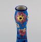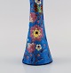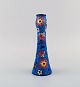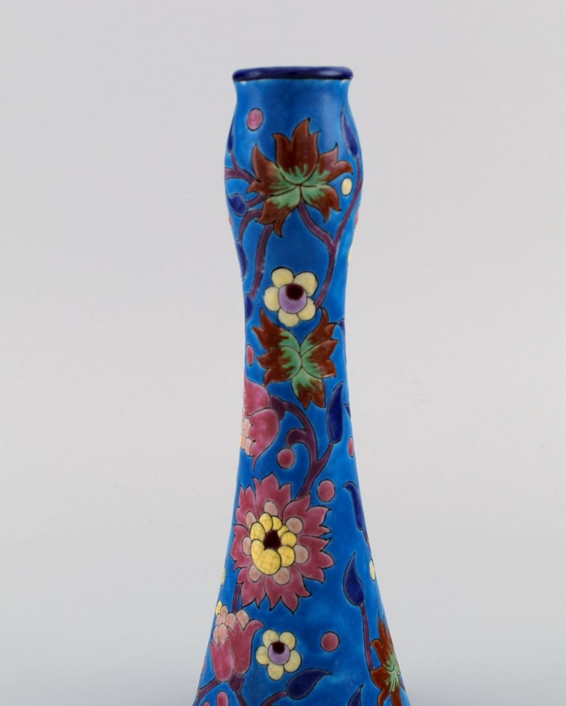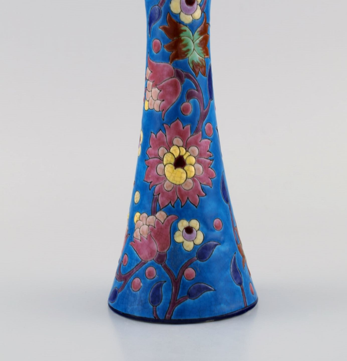 Longwy, France. Art deco vase in glazed stoneware with hand-painted flowers on a blue background. 1920s / 30s. Measures: 20 x 7.2 cm. In excellent condition. Stamped.