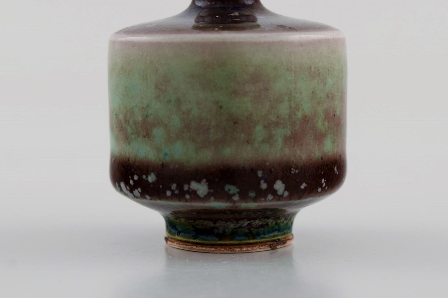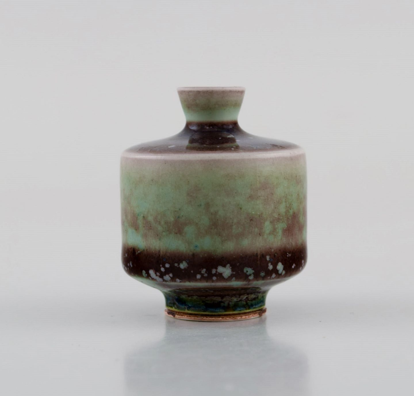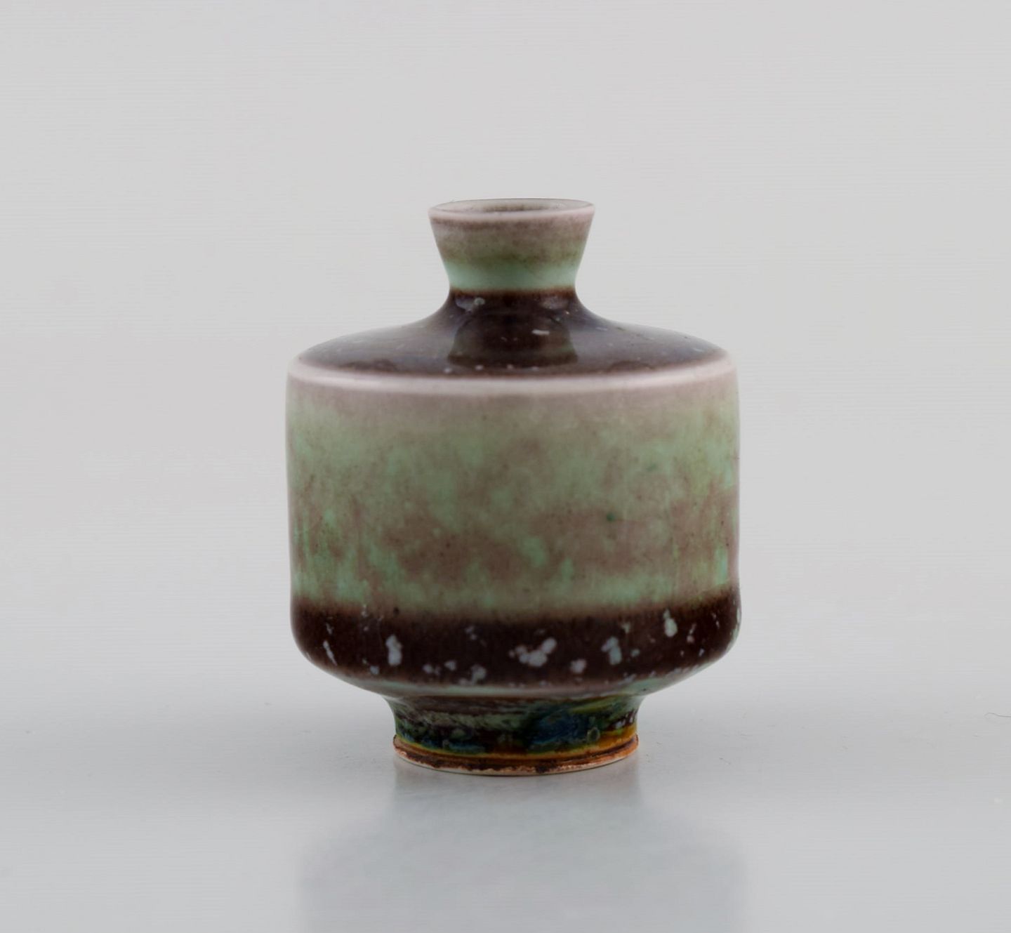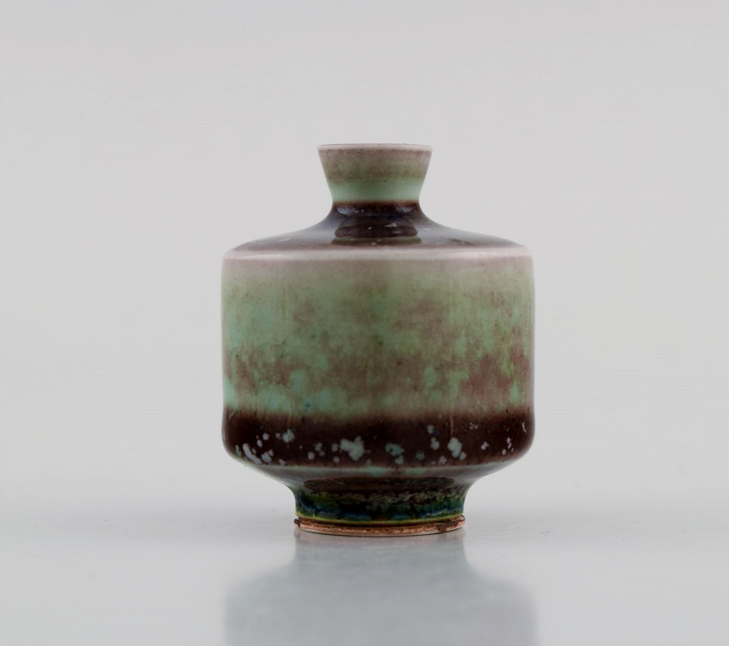 Berndt Friberg (1899-1981) for Gustavsberg Studiohand. Miniature vase in glazed ceramics. Beautiful Aniara glaze. 1970s. Measures: 44 x 38 mm. In excellent condition. Signed.