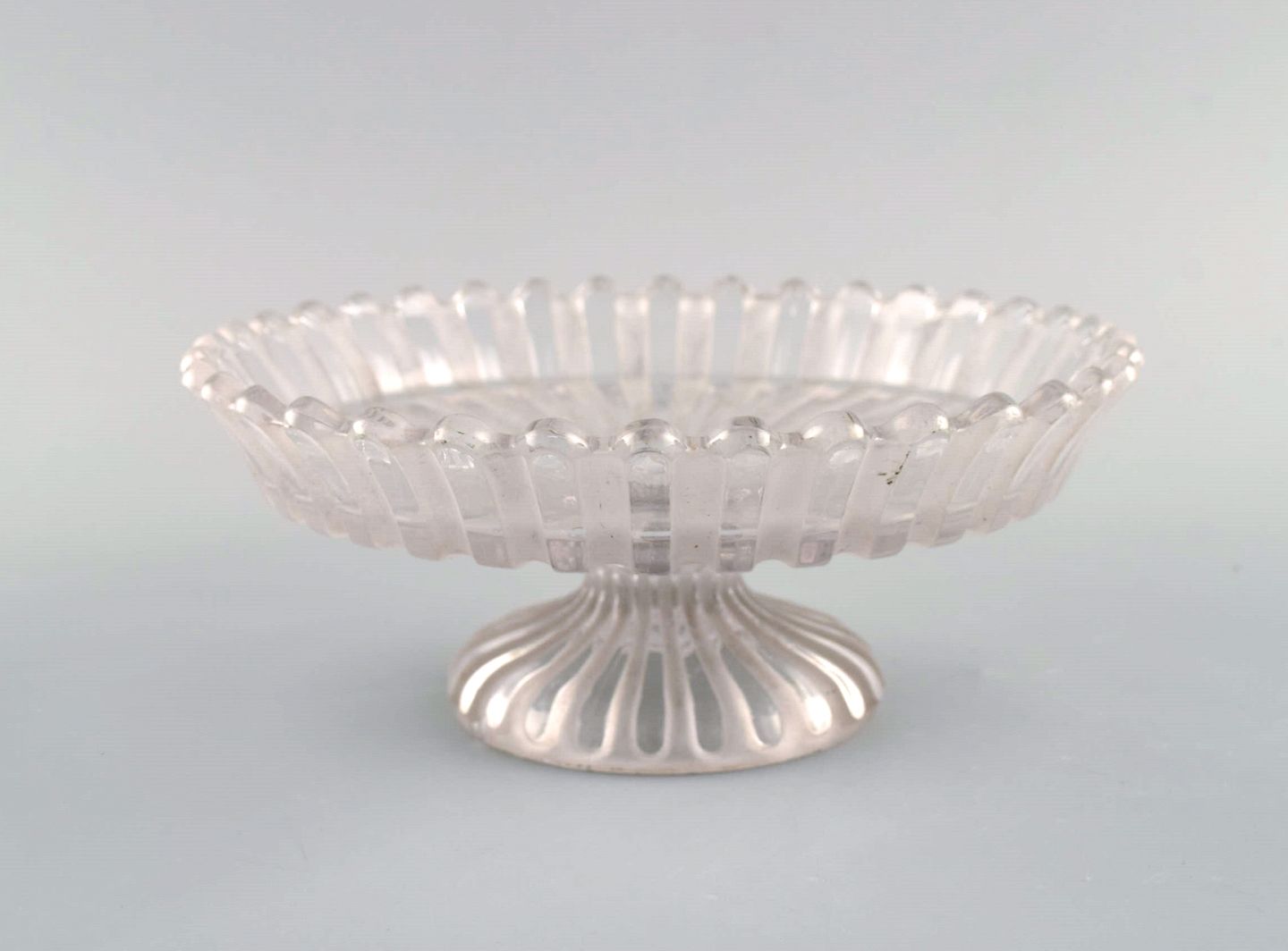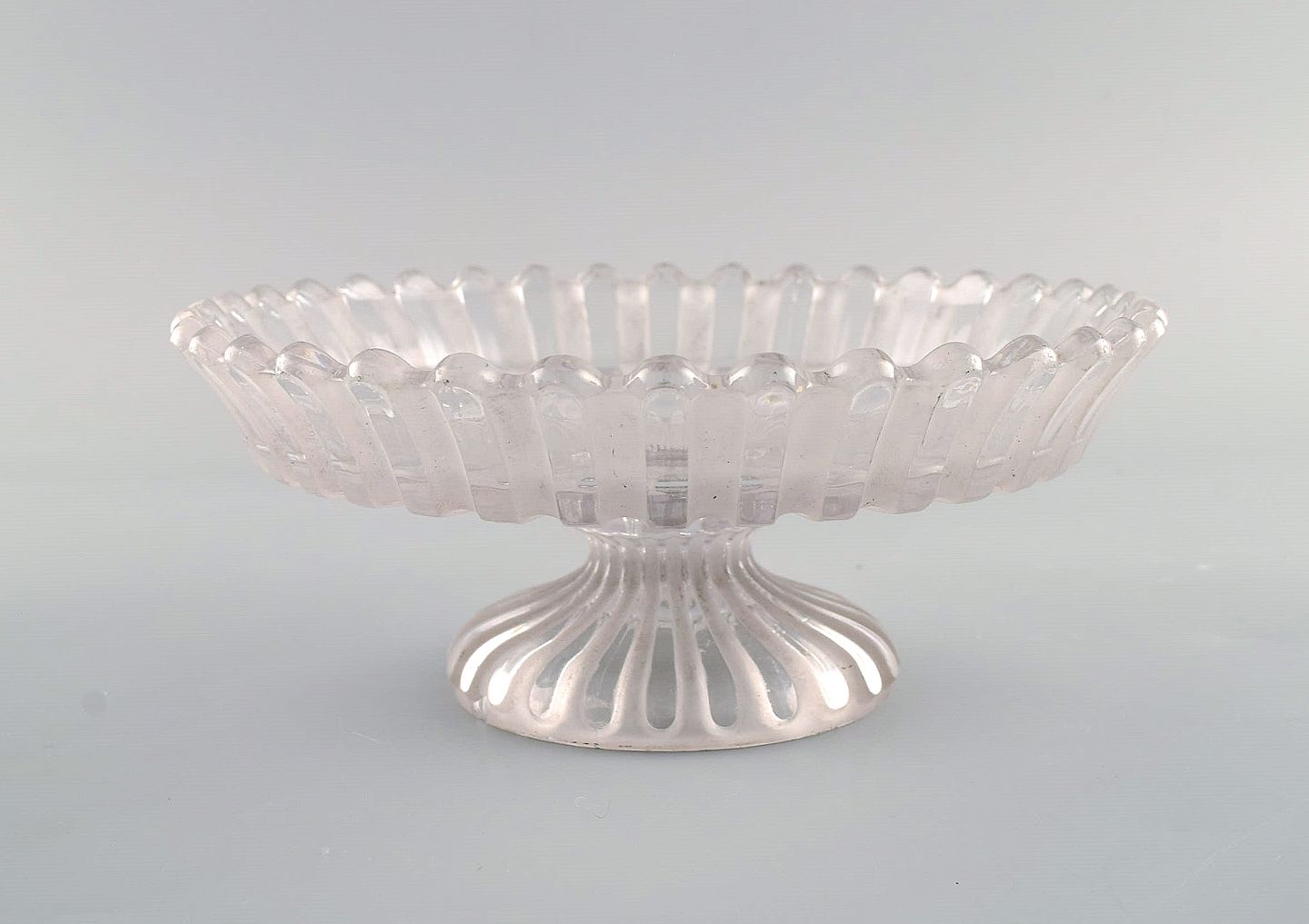 Baccarat, France. Art deco compote in clear and frosted mouth-blown art glass. 1940s. Measures: 19 x 7.5 cm. In excellent condition. Stamped.