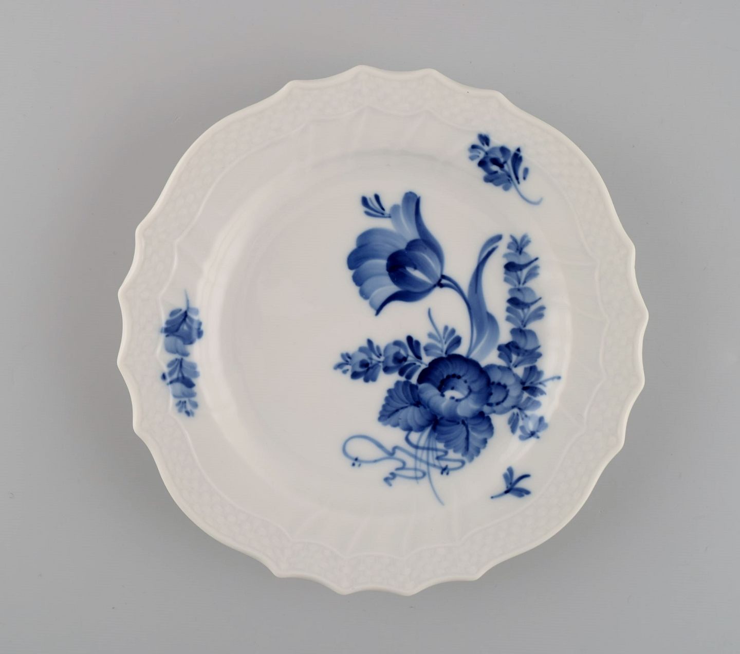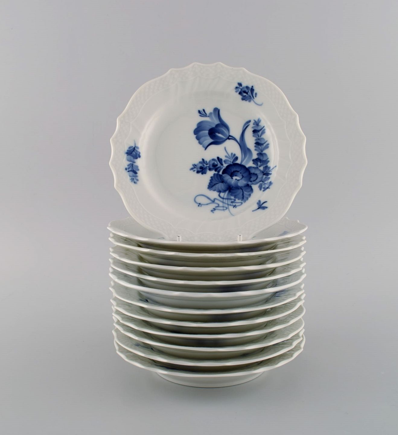 Tolv Royal Copenhagen Blå Blomst Svejfet tallerkener. 1960'erne. Modelnummer 10/1625.