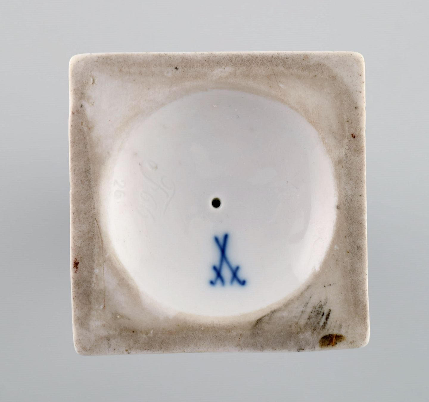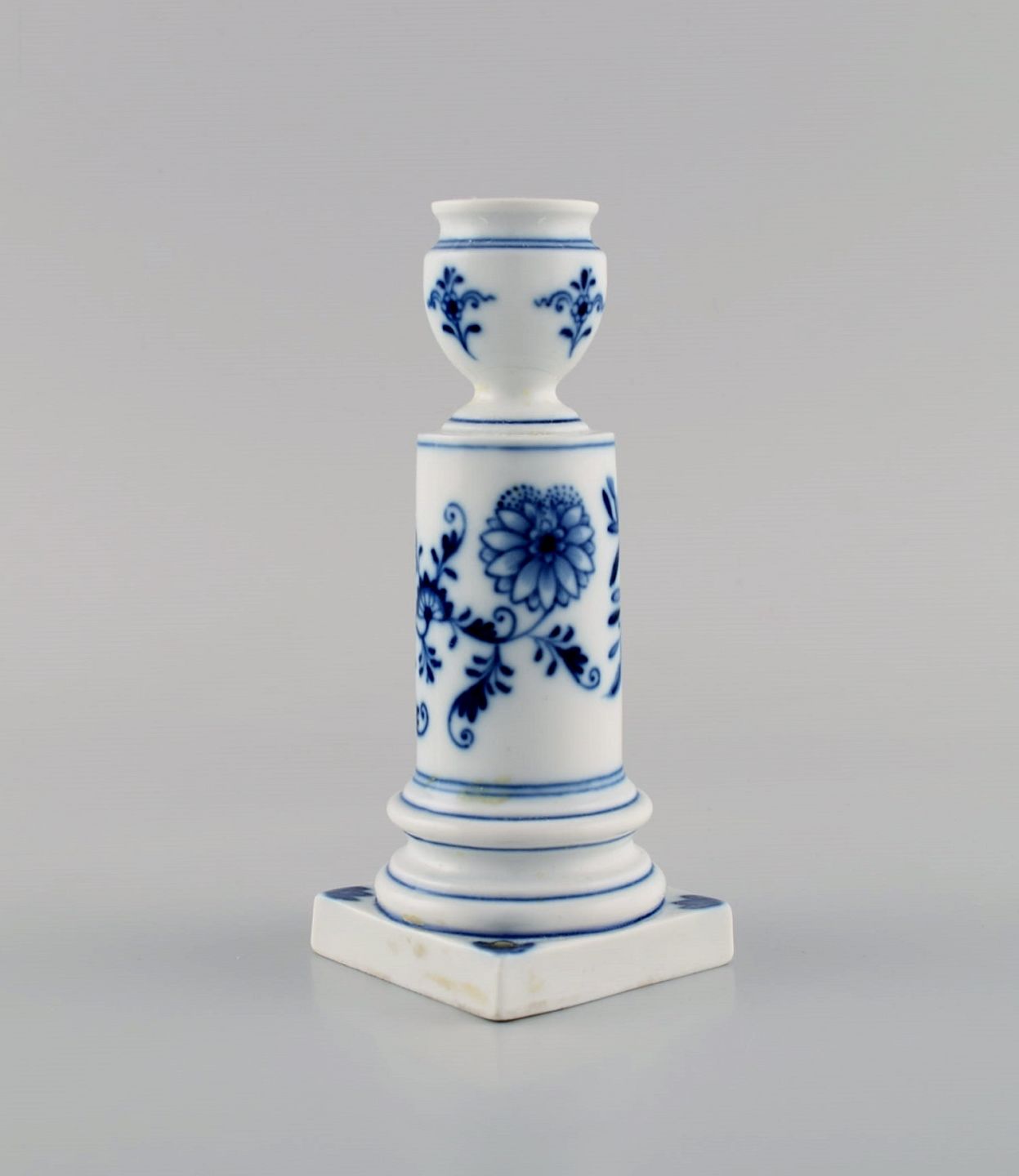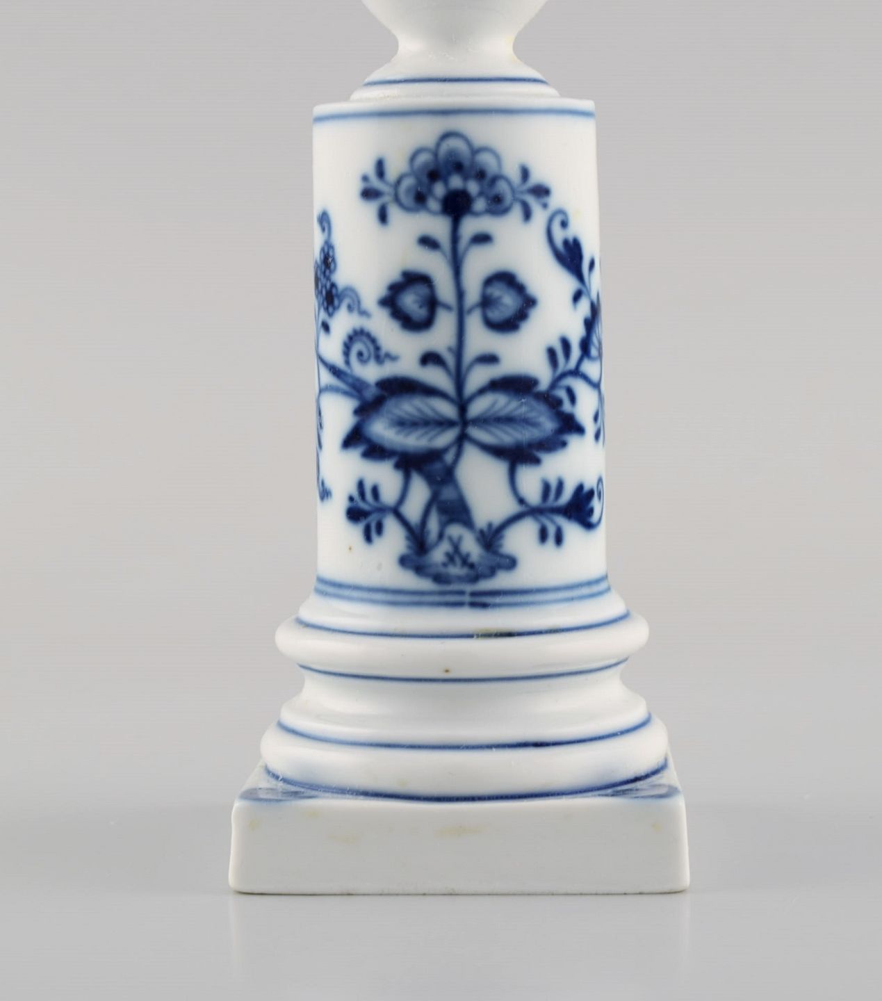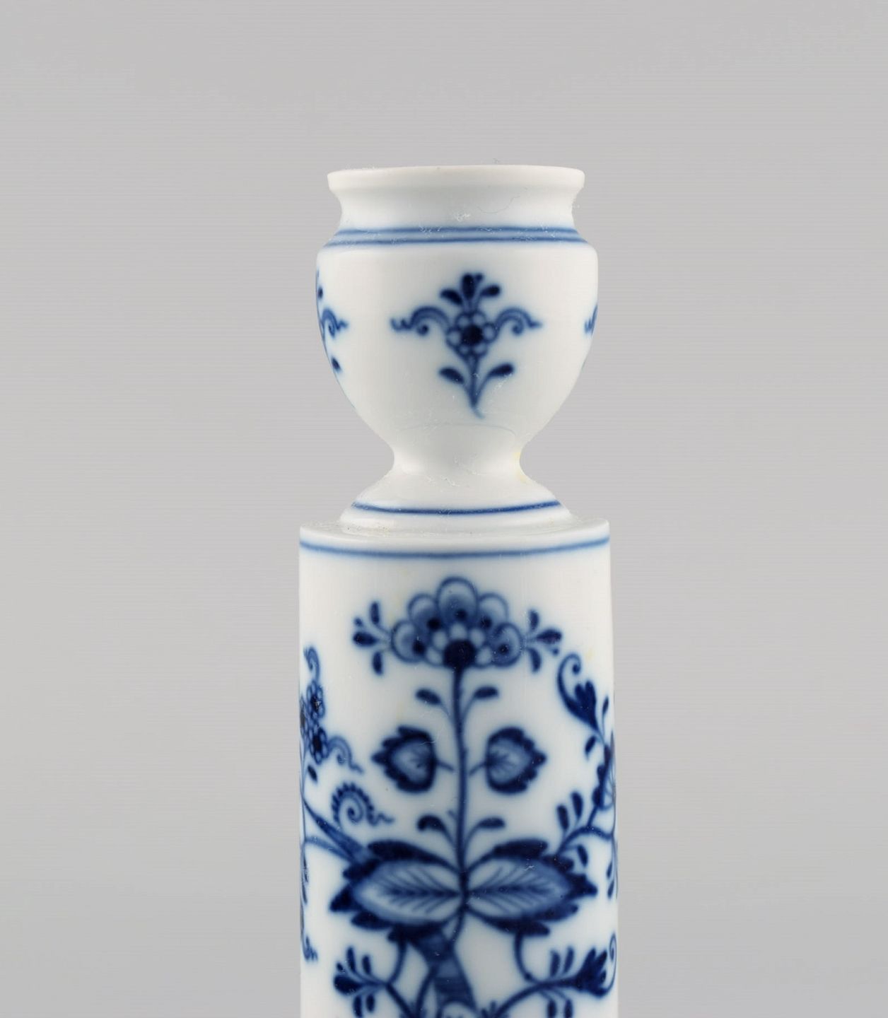 Antique Meissen Blue Onion candle holder in hand-painted porcelain. Approx. 1900. Measures: 14 x 5.5 cm. In excellent condition. Stamped. 1st factory quality.