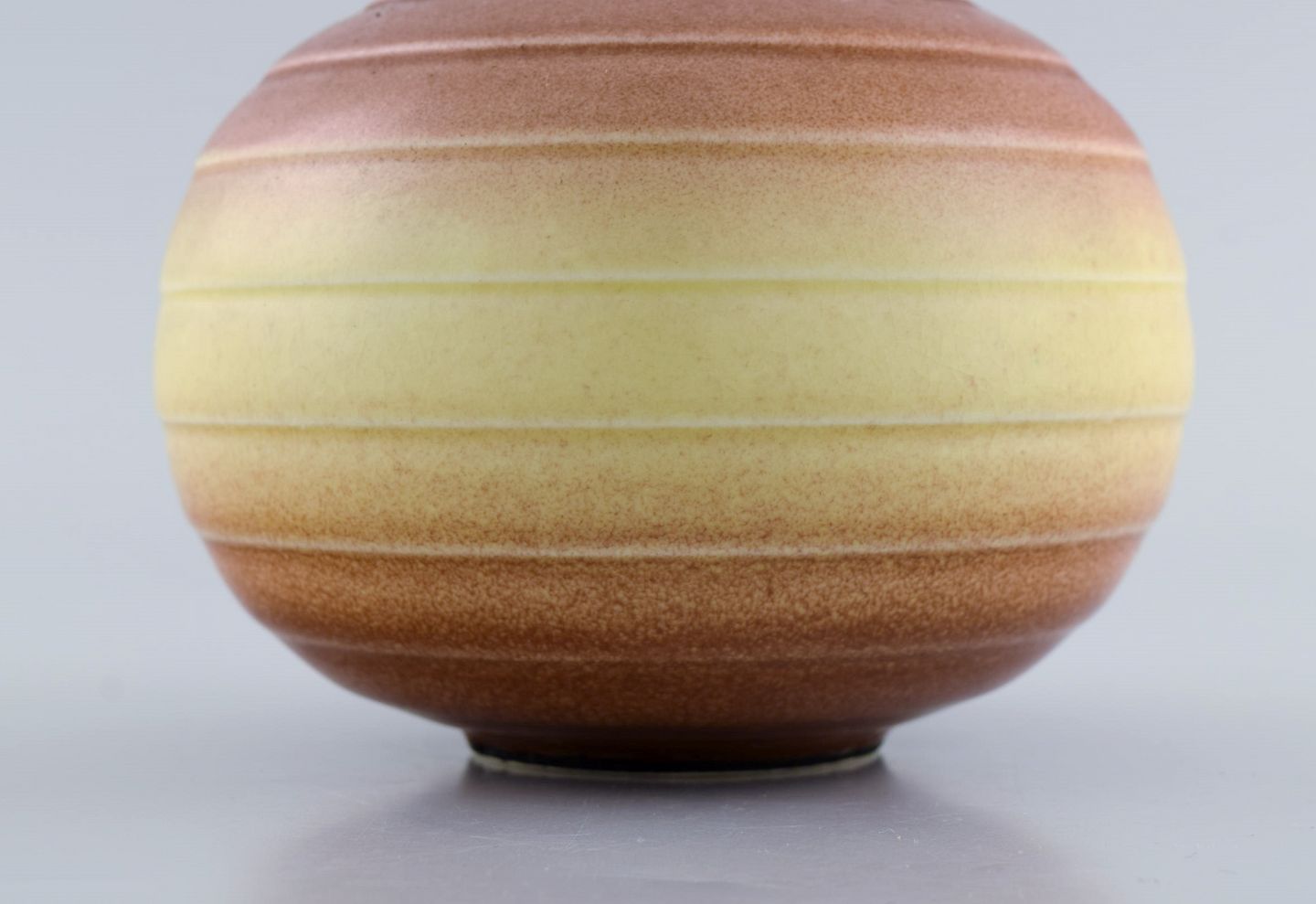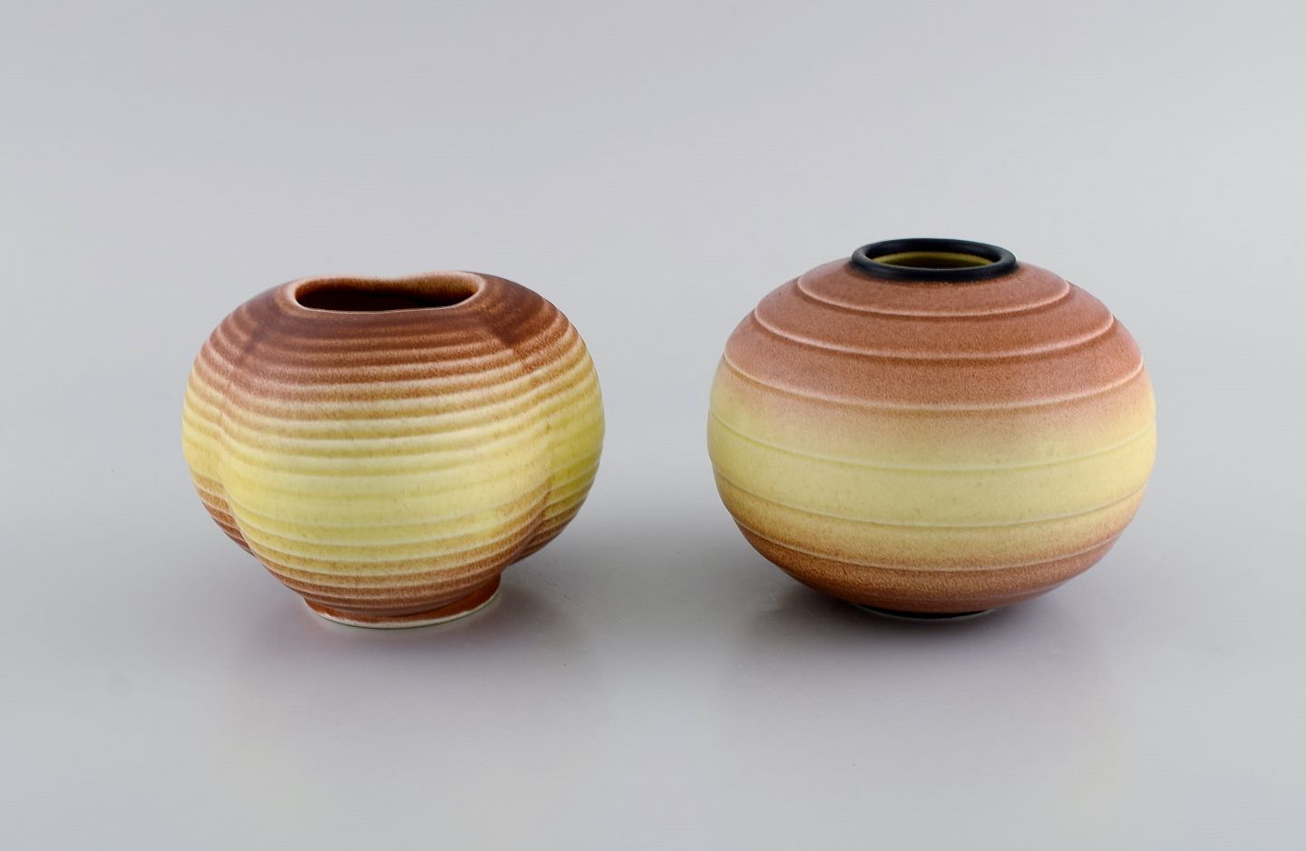 Gertrud Lönegren (1905–1970) for Rörstrand. To runde vaser i glaseret keramik. Smuk fersken glasur. 1930/40'erne. Største måler: 12 x 9,5 cm. I flot stand. Stemplet.