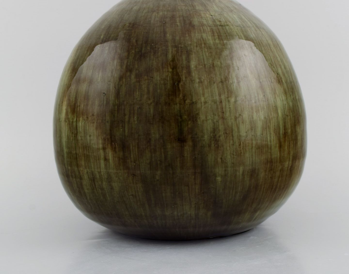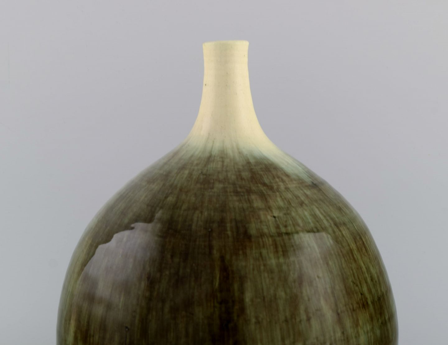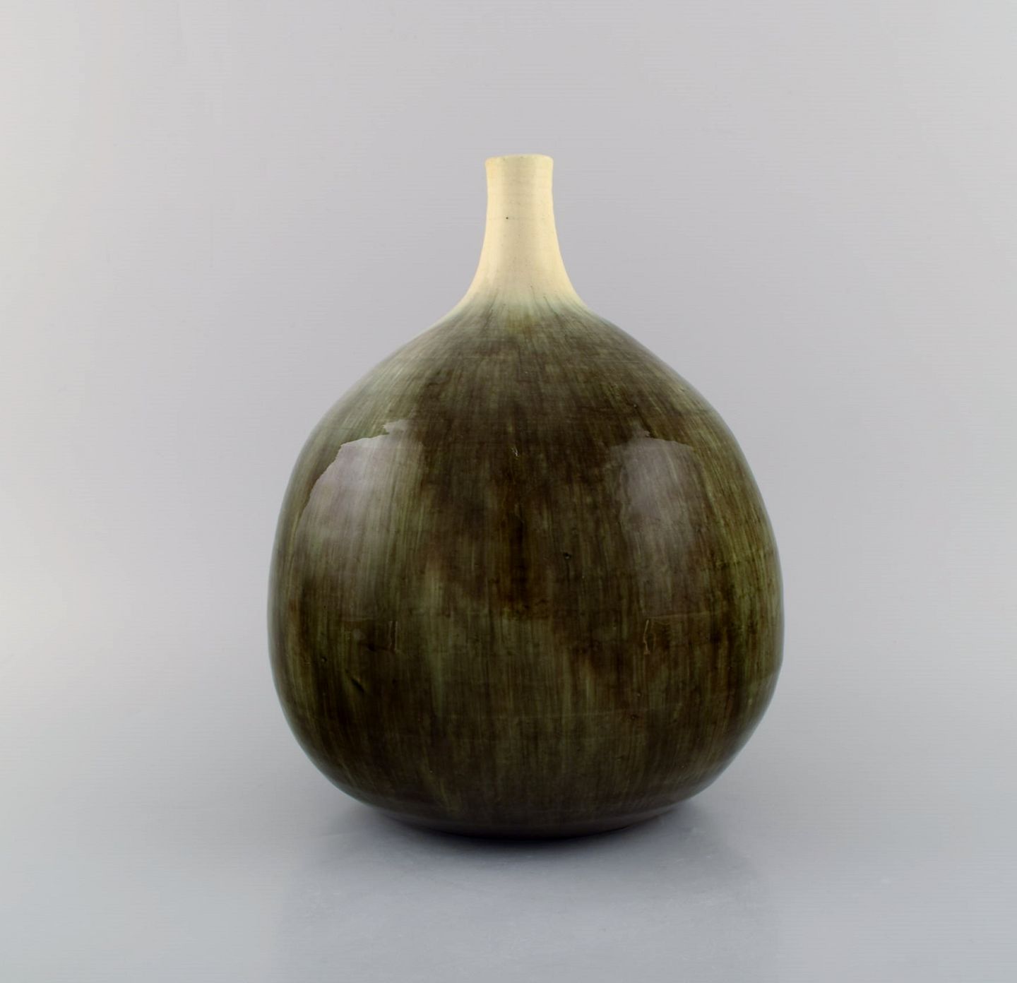 Large narrow neck Accolay vase in glazed stoneware. Beautiful glaze in sand and light earth shades. 1960s. Measures: 25.5 x 21 cm. In excellent condition. Signed.