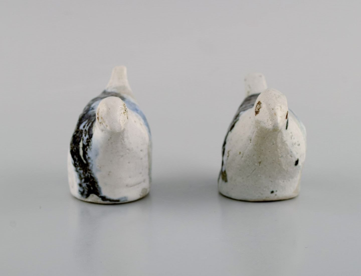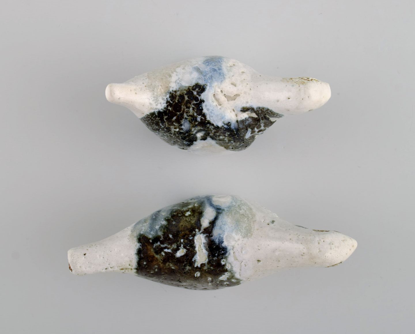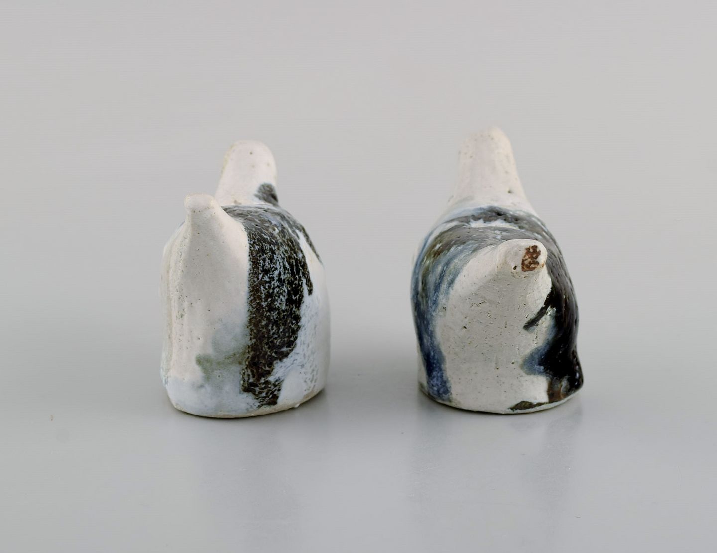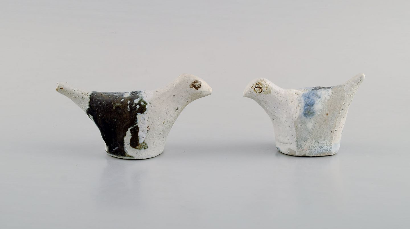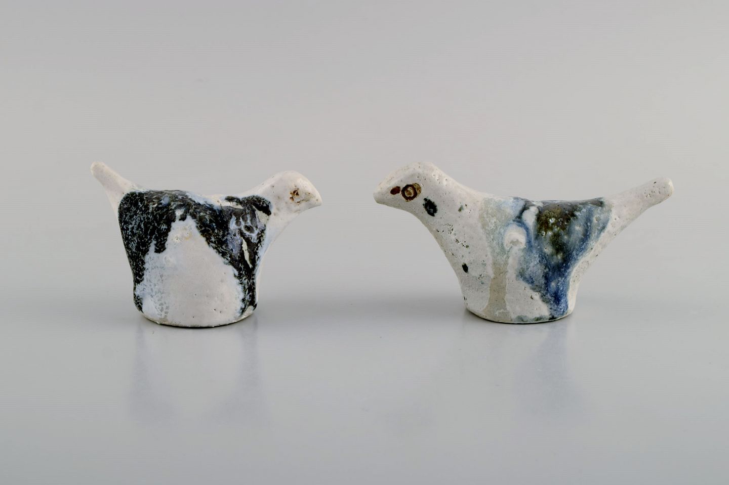 Salem. Europæisk studiokeramik. To unika fugle i glaseret stentøj. 1980'erne. Største måler: 11,5 x 6 cm. I flot stand. Stemplet.