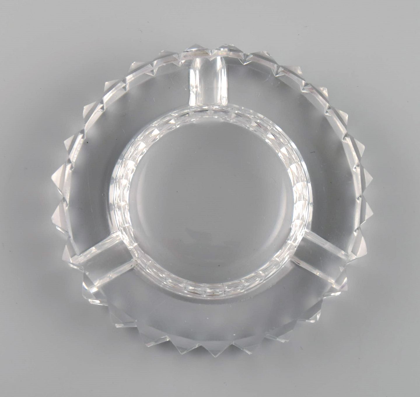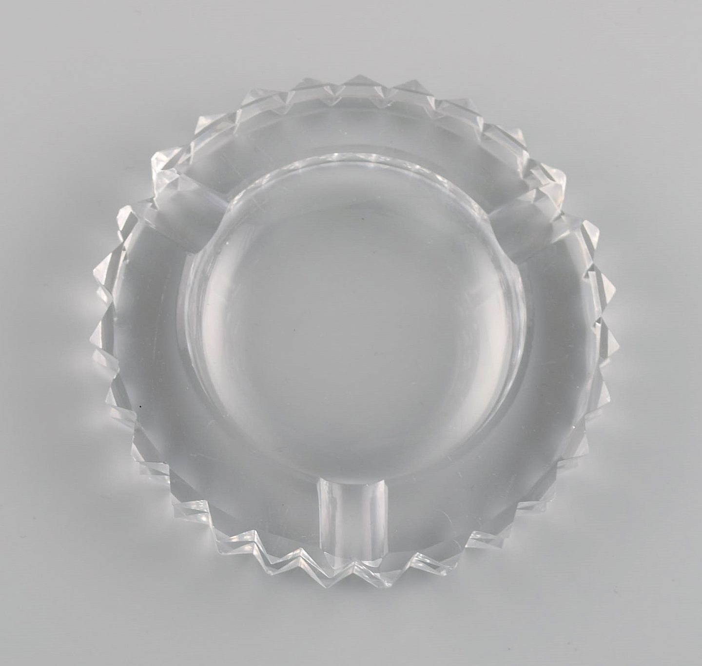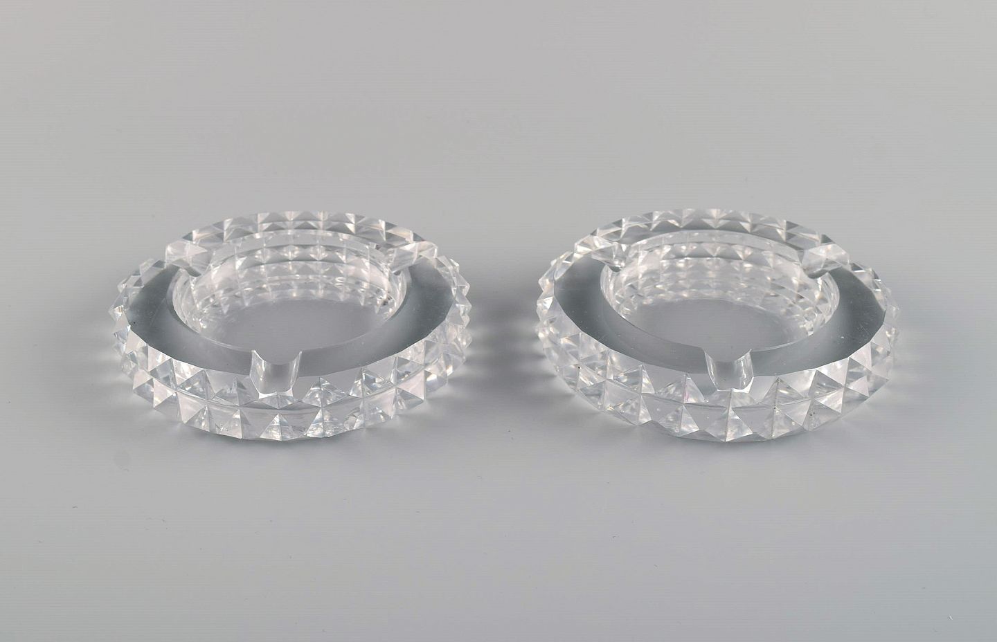 Saint-Louis, France. Two art deco ashtrays in clear art glass. 1930s / 40s. Measures: 12 x 2.5 cm. In very good condition with micro cuts. Stamped.