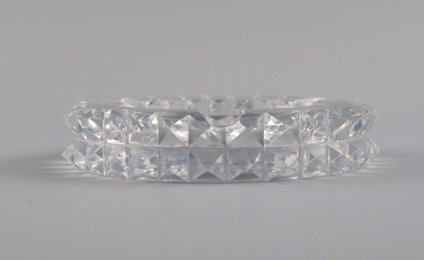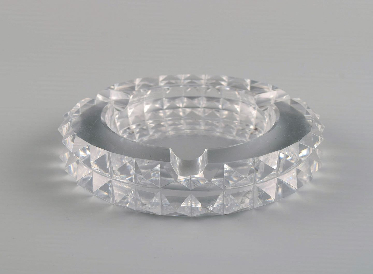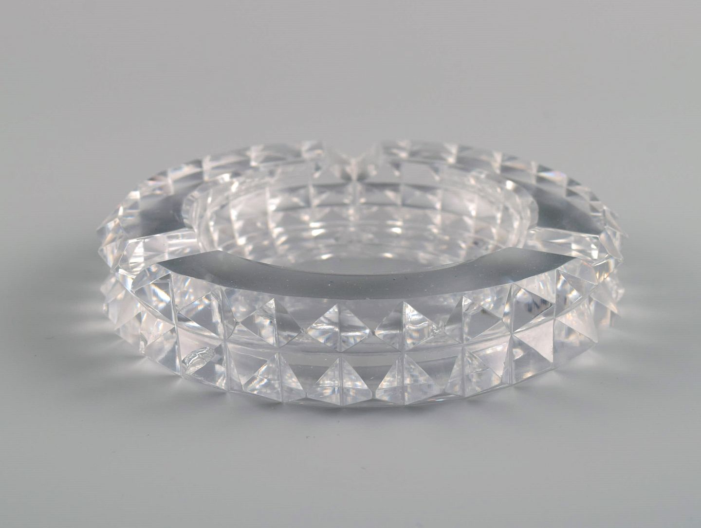 Saint-Louis, France. Two art deco ashtrays in clear art glass. 1930s / 40s. Measures: 12 x 2.5 cm. In very good condition with micro cuts. Stamped.