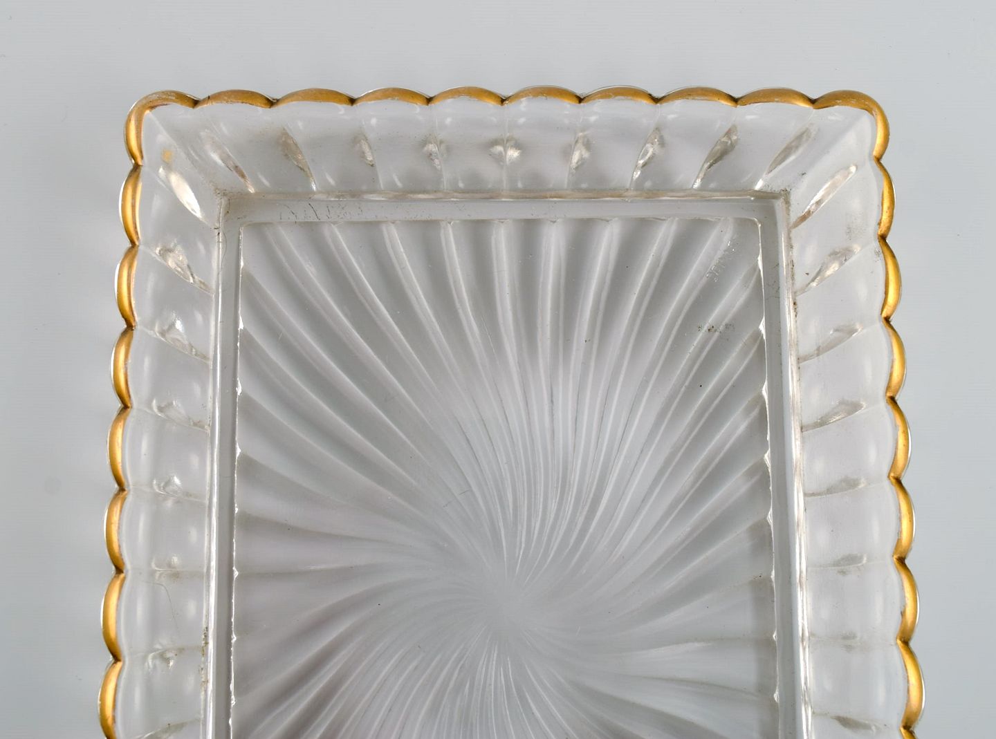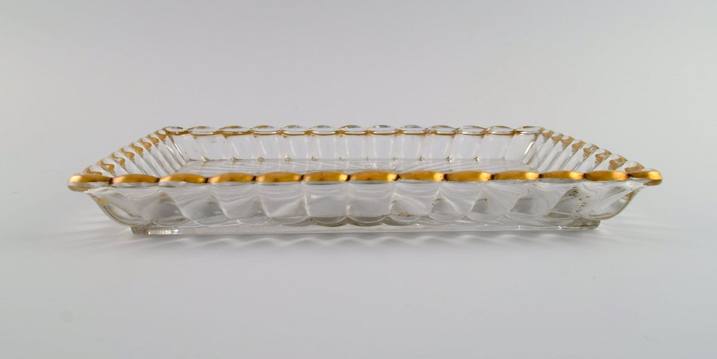 Baccarat, Frankrig. Art deco serveringsfad i klart kunstglas med guldkant. 1930/40'erne. Måler: 25 x 18,5 x 3 cm. I flot stand. Stemplet.